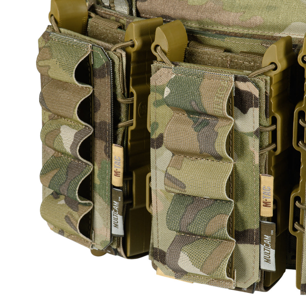 The ammunition retention panel is crafted from a combination of Hypalon and elastic webbing. This pairing ensures that each shell is held firmly in place during movement, yet remains easy to extract quickly when a reload is required. For enhanced structural integrity and ease of use, the holder is reinforced with Tegris, an innovative thermoplastic composite.