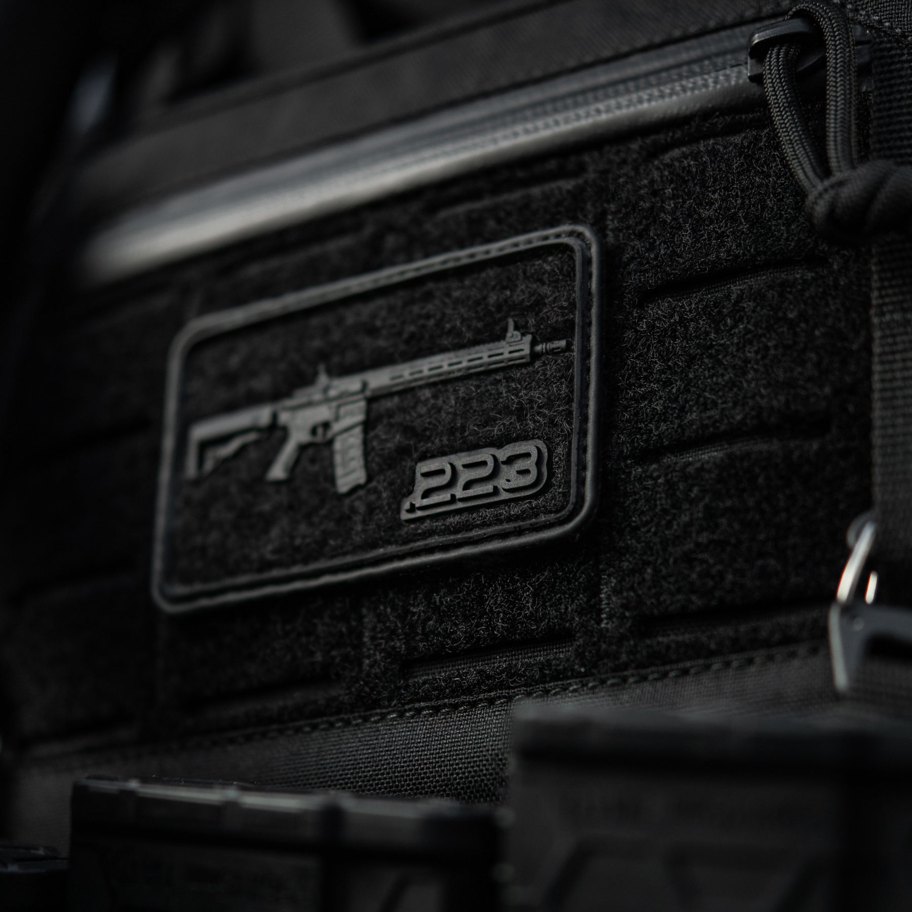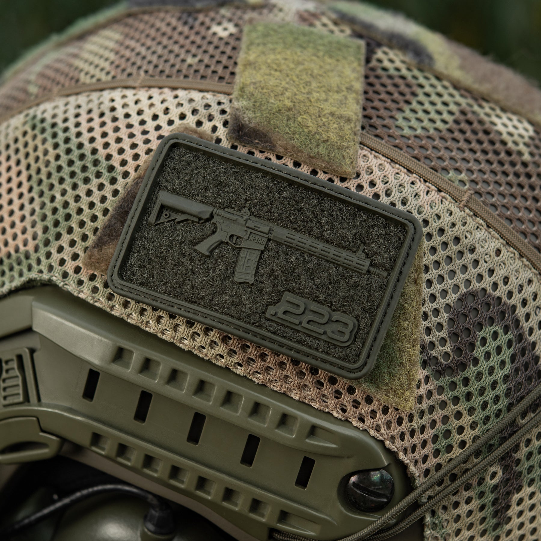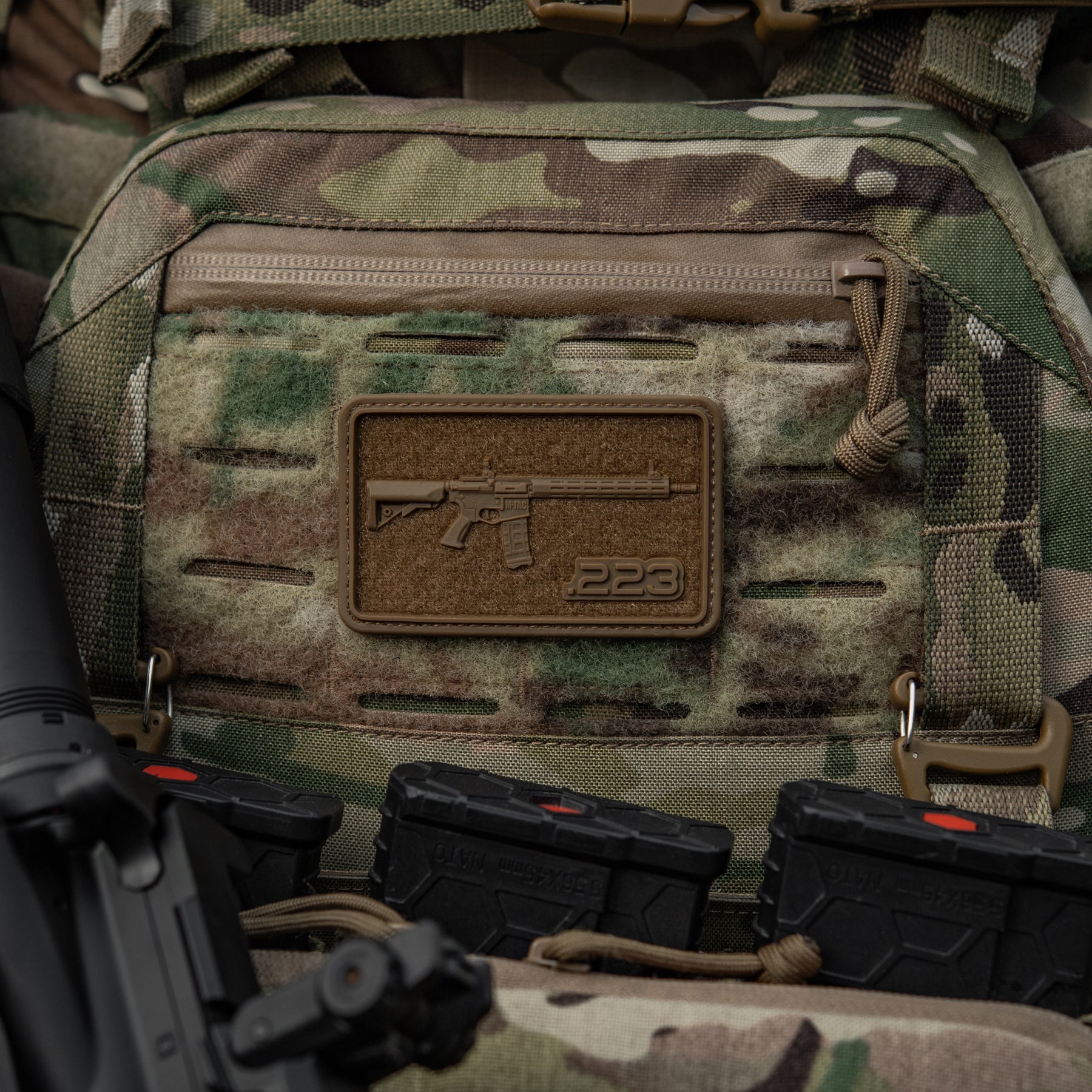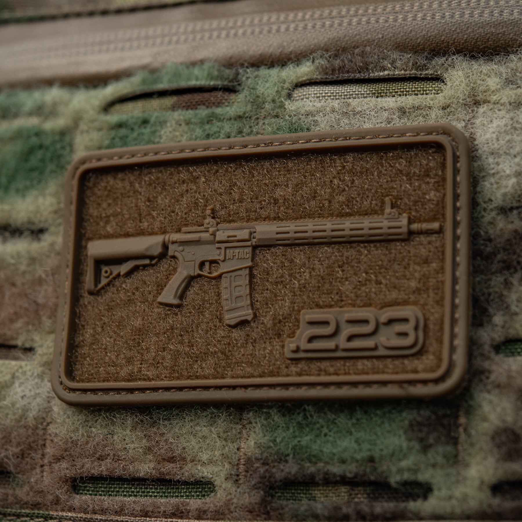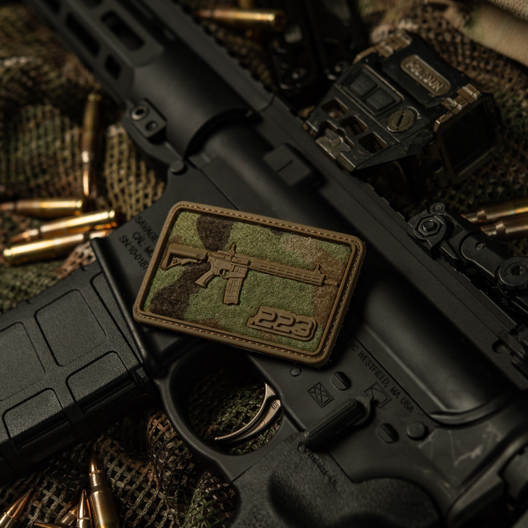The patch also features the marking of the .223 Remington cartridge, developed in 1957 by Remington Arms and Fairchild Aircraft for the U.S. Army. The .223 Remington is one of the most popular commercial cartridges and is considered the civilian version of the military 5.56×45 mm NATO round.