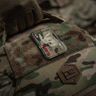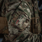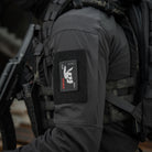 The patch attaches to clothing, backpacks, bags, or tactical gear using a Velcro panel.