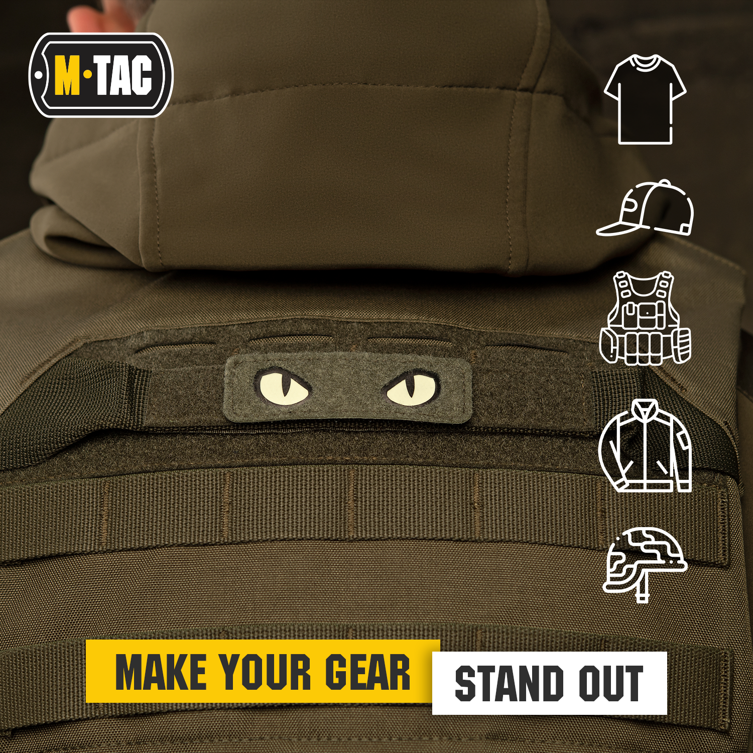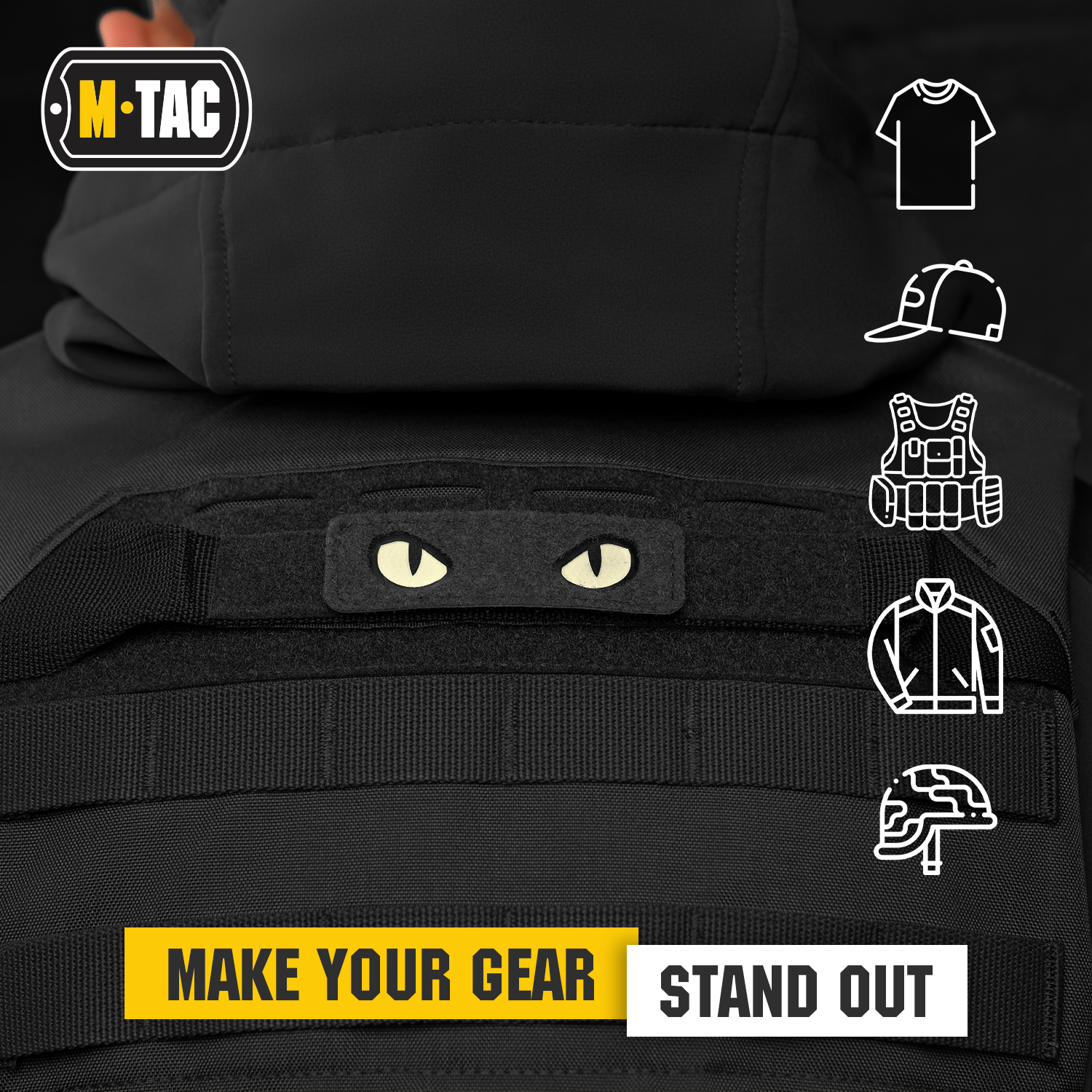 The M-Tac Cat Eyes Patch is an original morale patch that will personalize your gear. The patch depicts the cat's eyes, which are made using Laser-Cut technology. Also due to the light-accumulating elements, they glow in the dark and attract attention. This model is made with hook fastener and is attached to clothes, bags, backpacks, or other equipment with loop panel. The Cat Eyes patch will be a bright and original addition to your look.