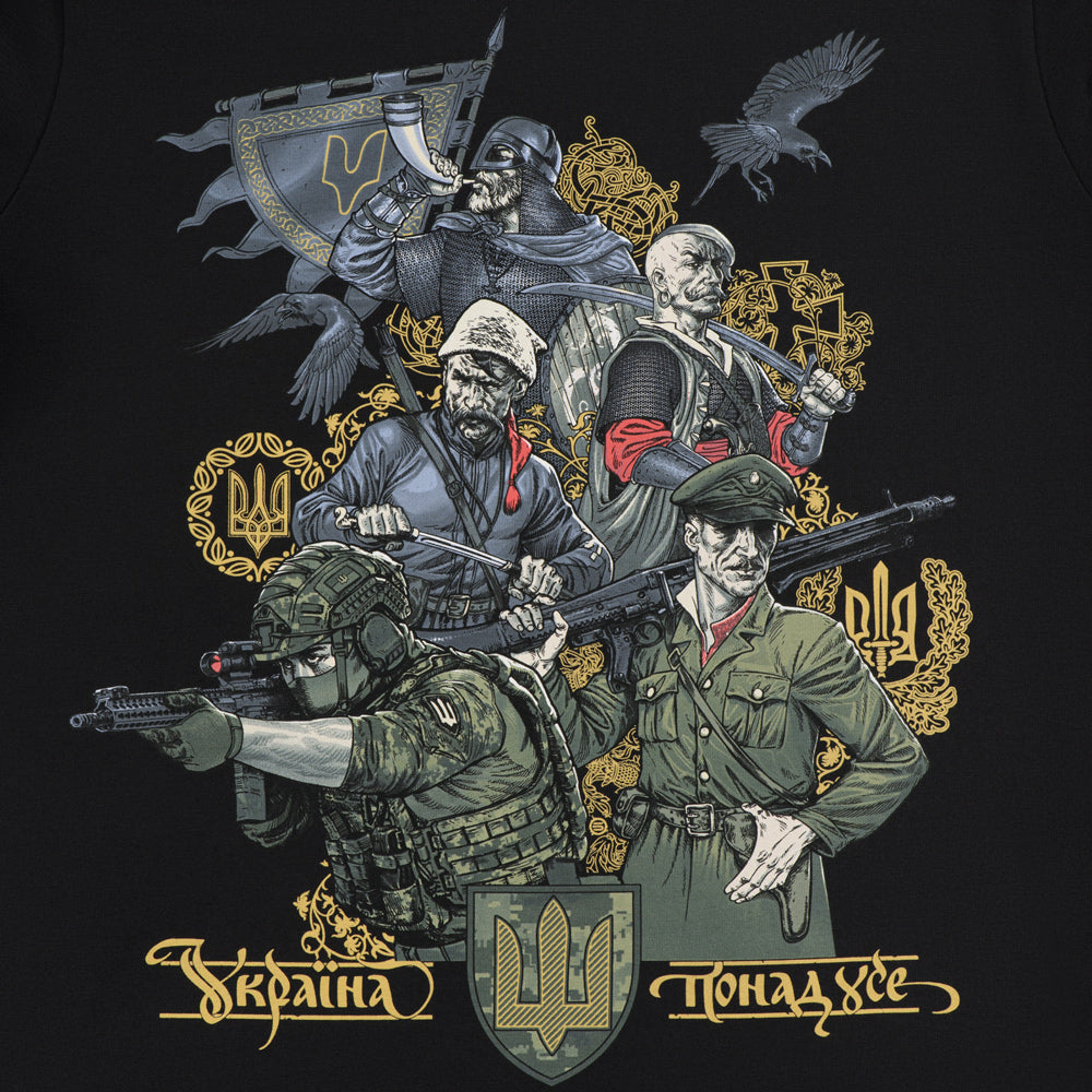 The M-Tac “Generations” T-Shirt pays tribute to the valor and sacrifice of Ukrainian warriors throughout different eras of the struggle for independence.