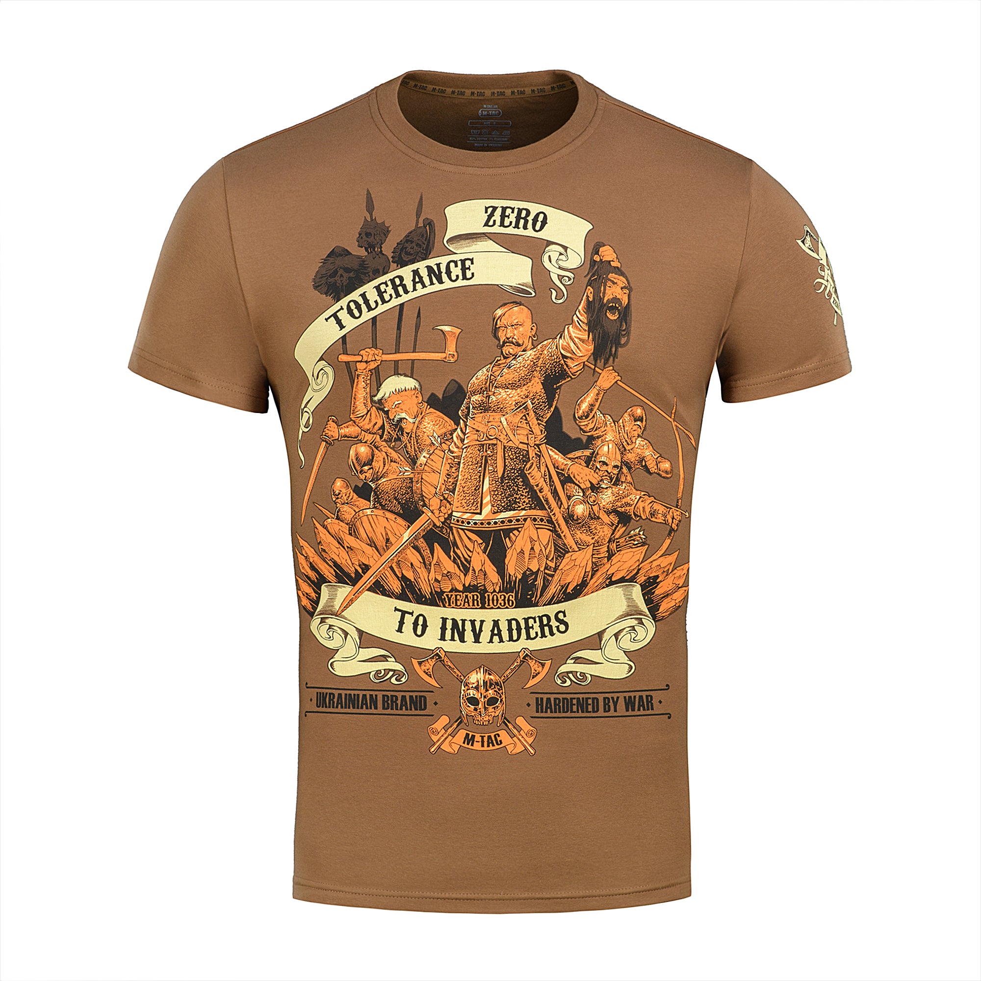 M-Tac ZERO TOLERANCE TO INVADERS T-Shirt is made from a high-quality cotton and elastane blend. This combination ensures long-lasting durability, allowing the shirt to withstand numerous wash cycles without losing its shape.
