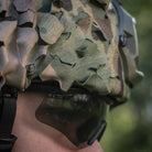 The cover is constructed from durable, high-quality Cordura 500D, a material known for guaranteeing a long service life and high abrasion resistance. The exterior of the cover features a unique wavy cutout pattern utilizing Laser Cut technology. This design effectively breaks up the distinct spherical shape of the helmet, significantly improving concealment.