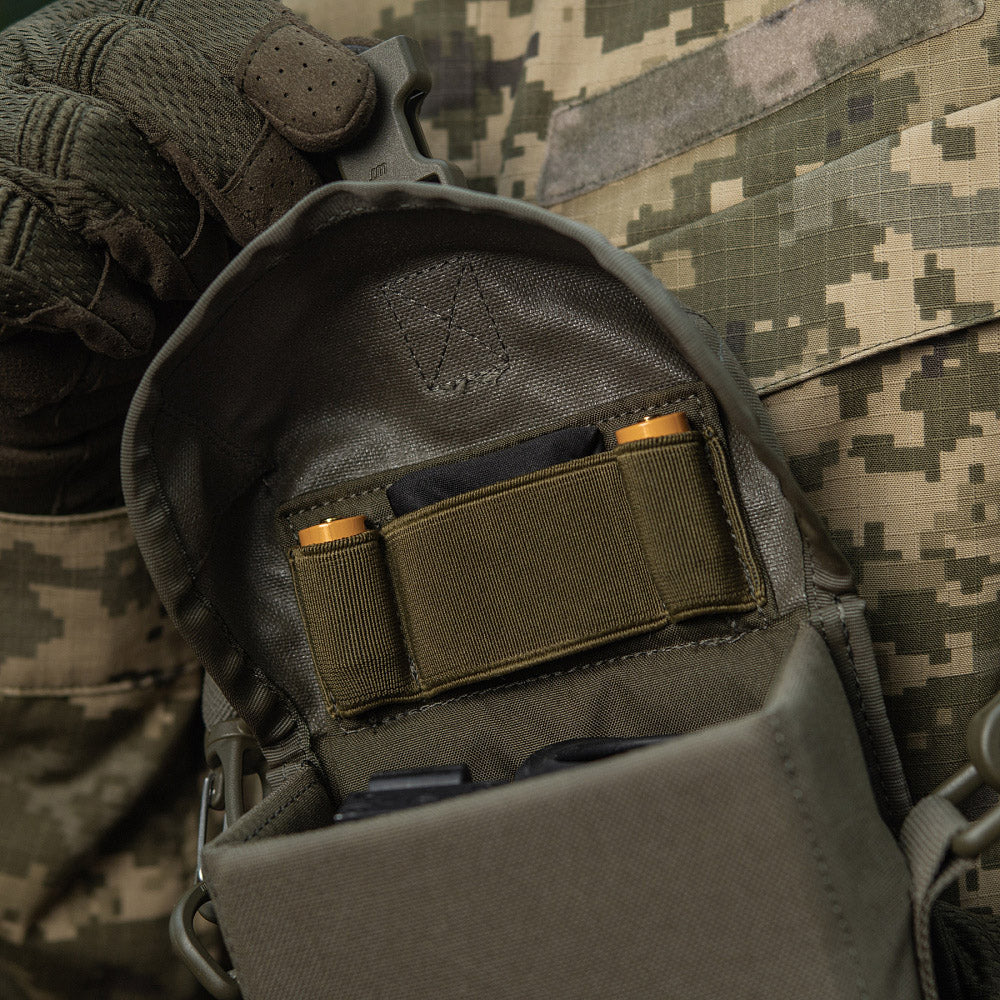 Made from Cordura 1000D, the pouch offers exceptional resistance to abrasion and heavy loads. The front, sides, and bottom are reinforced with inserts made of Tegris — a high-tech, extremely lightweight thermoplastic composite from Milliken® (USA), capable of withstanding significant impacts and stress. The inner protective layer includes foam polypropylene, lined with fabric to cushion and protect the device.