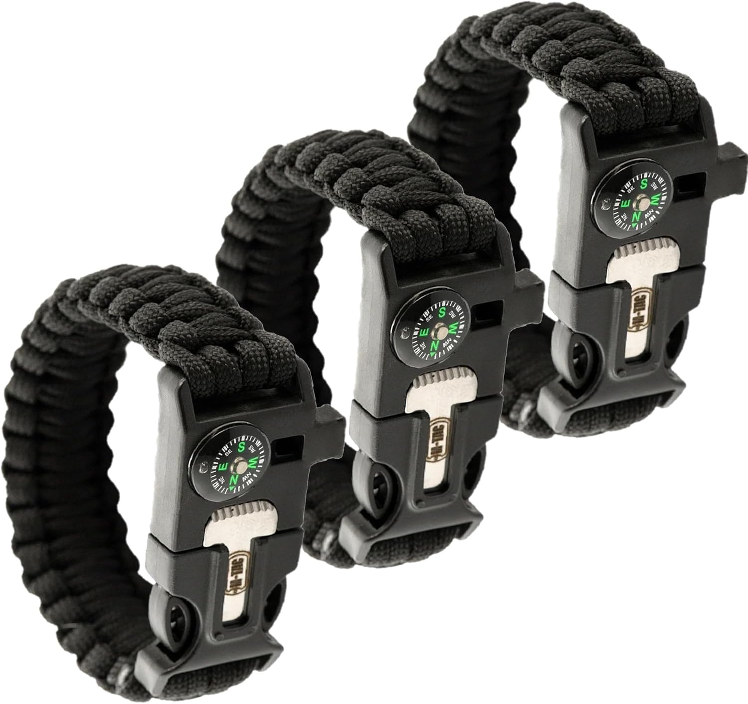 M-Tac Survival Paracord Bracelet with Compass Whistle (Set of 3)