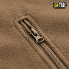 The M-TAC Soft Shell Jacket with detachable lining is made of an interlayer polyurethane membrane that protects from bad weather. Inside, it has a thin fleece. In this model, the manufacturer has added detachable fleece lining, which is attached with a zipper (can be worn as a separate item of clothing). The softshell products have several outstanding properties: their low weight and the combination of two layers of clothing in one. The softshell combines an outer layer (for protection from wind and wet weather) and an insulating inner layer. The top fabric is not only moisture-deflecting but also dirt-deflecting as well. Besides, the soft and streamlined material makes it more comfortable to wear. The front zipper is made by YKK. The zipper has high quality and performs its function without any problems. Due to the presence of a number of pockets, it has increased functionality. Available two shoulder pockets, two inside pockets, two hand pockets, horizontal back pocket, forearm pocket. Axillary ventilation zippers improve thermoregulation. Elastic cord at the waist and adjustable wrist cuffs allow you to fit the jacket more comfortably on the body. And the compactly folded hood located at the back of the collar will always protect you from rain or snow. Side loop panels on the sleeves allows to wear various moral patches.