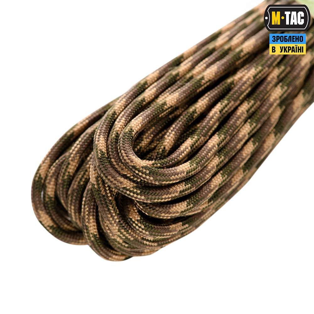 The M-Tac Paracord Survival is a durable nylon cord featuring a tightly woven outer sheath and an inner core made of multiple intertwined strands, providing excellent strength with minimal weight.
