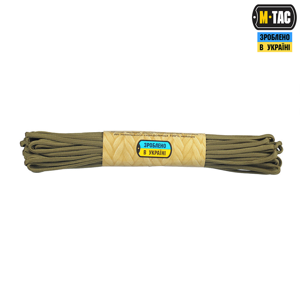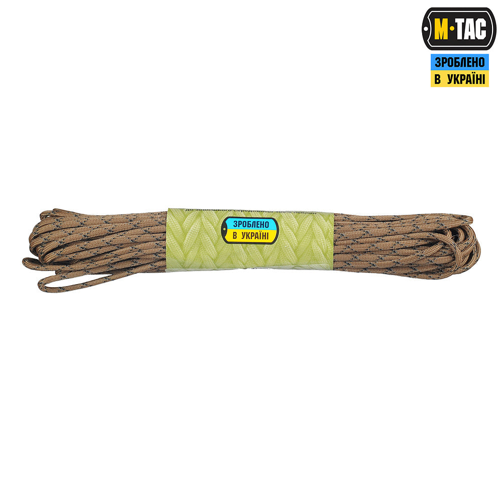 The M-Tac Survival Paracord is a durable nylon cord featuring a tightly woven outer sheath and an inner core made of multiple intertwined strands, providing excellent strength with minimal weight.