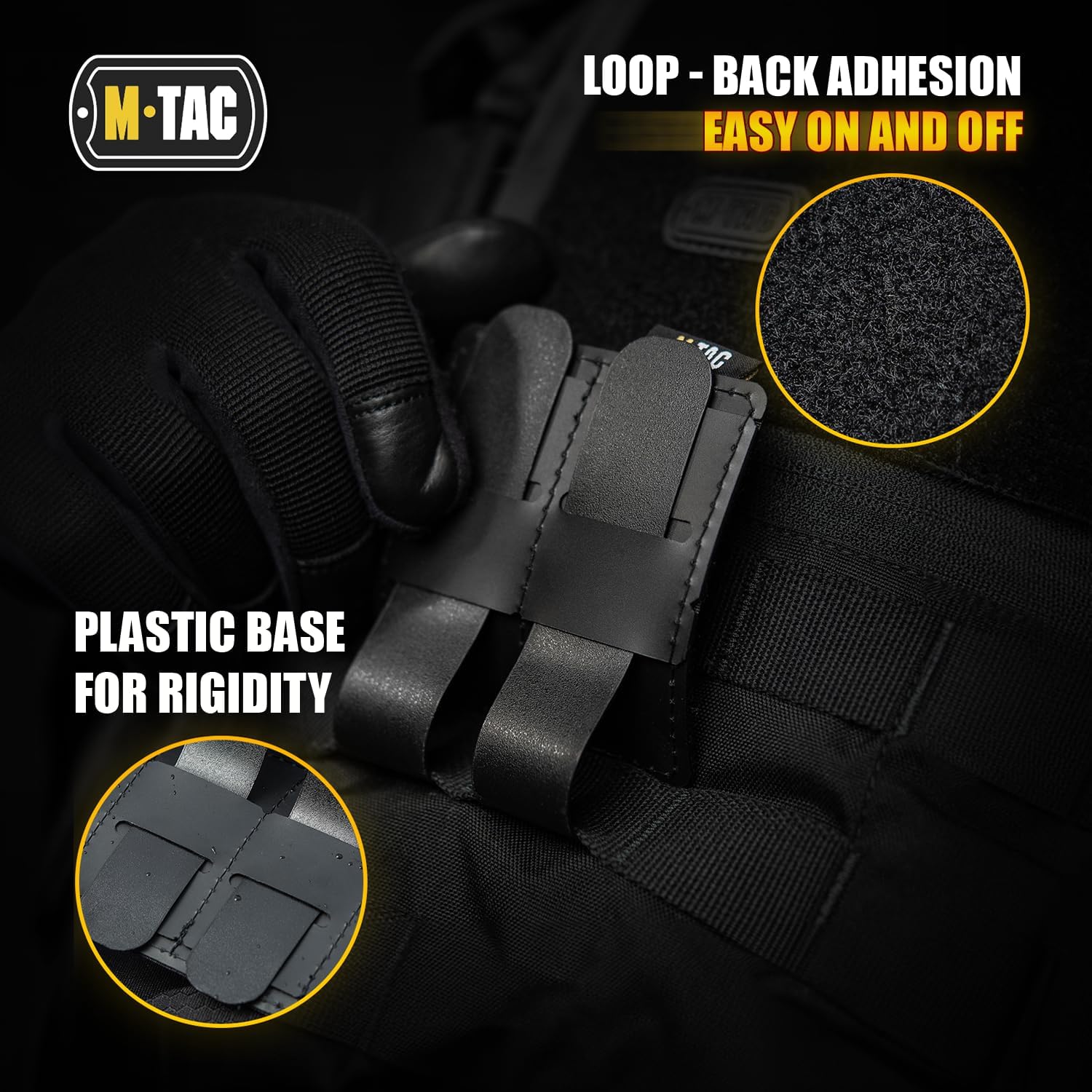 If you are looking for a roomy high quality loop patch panel for a tactical backpack you have just found the one! Our M-Tac loop Tactical Military Patch Holder Display Board is the perfect choice ! The loop molle panels are supplied with 3 plastic molle mounts on the back side of the morale patch board to be compatible with molle straps which secure inside of the panel without adding bulk. Patches stick to the loop molle panel surface very well, you won't lose your patches.