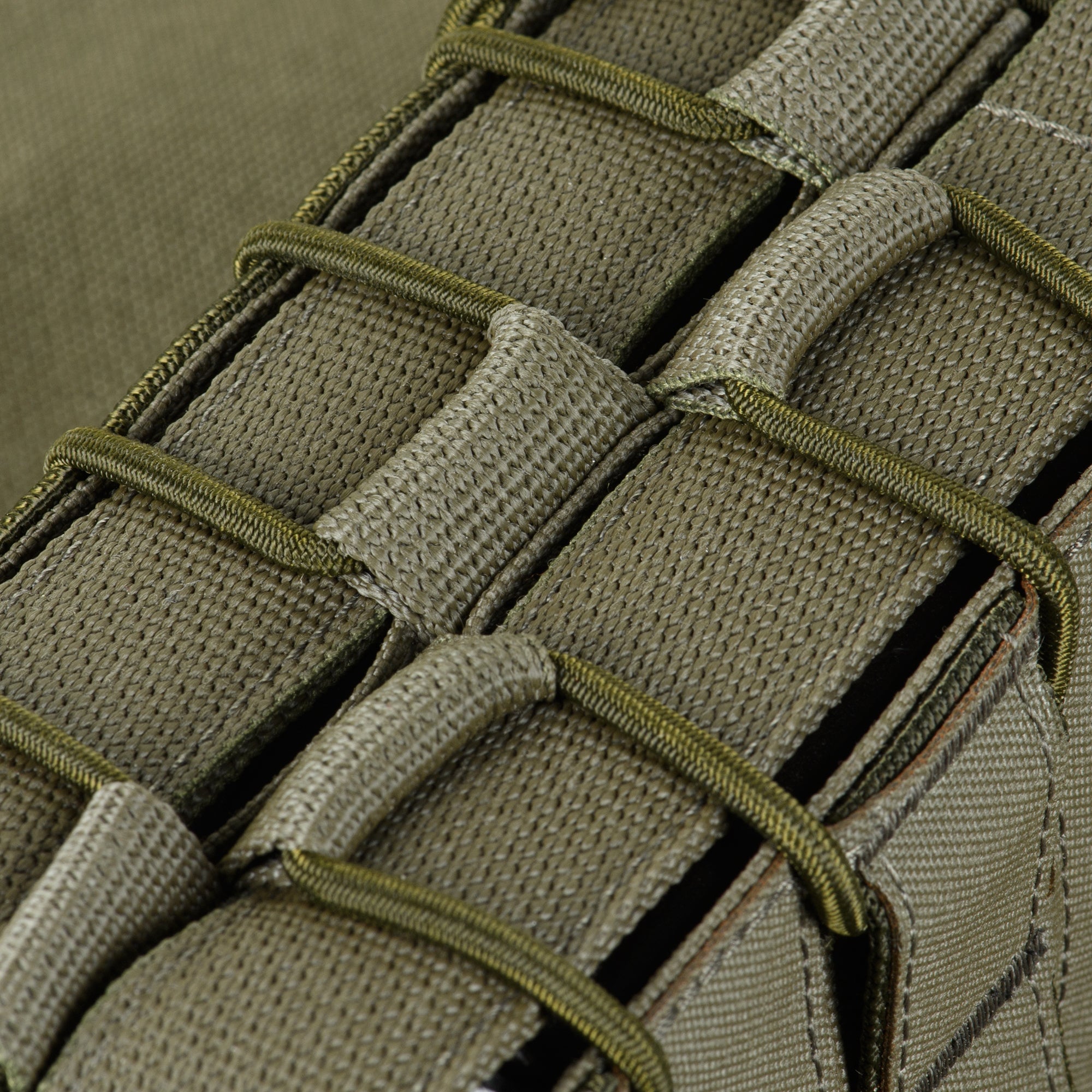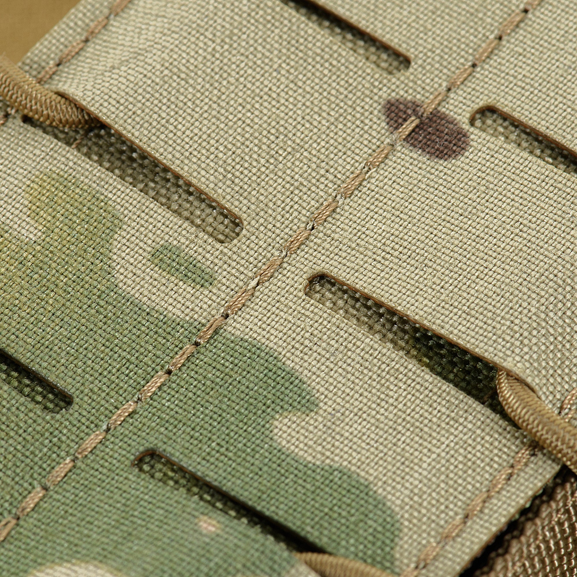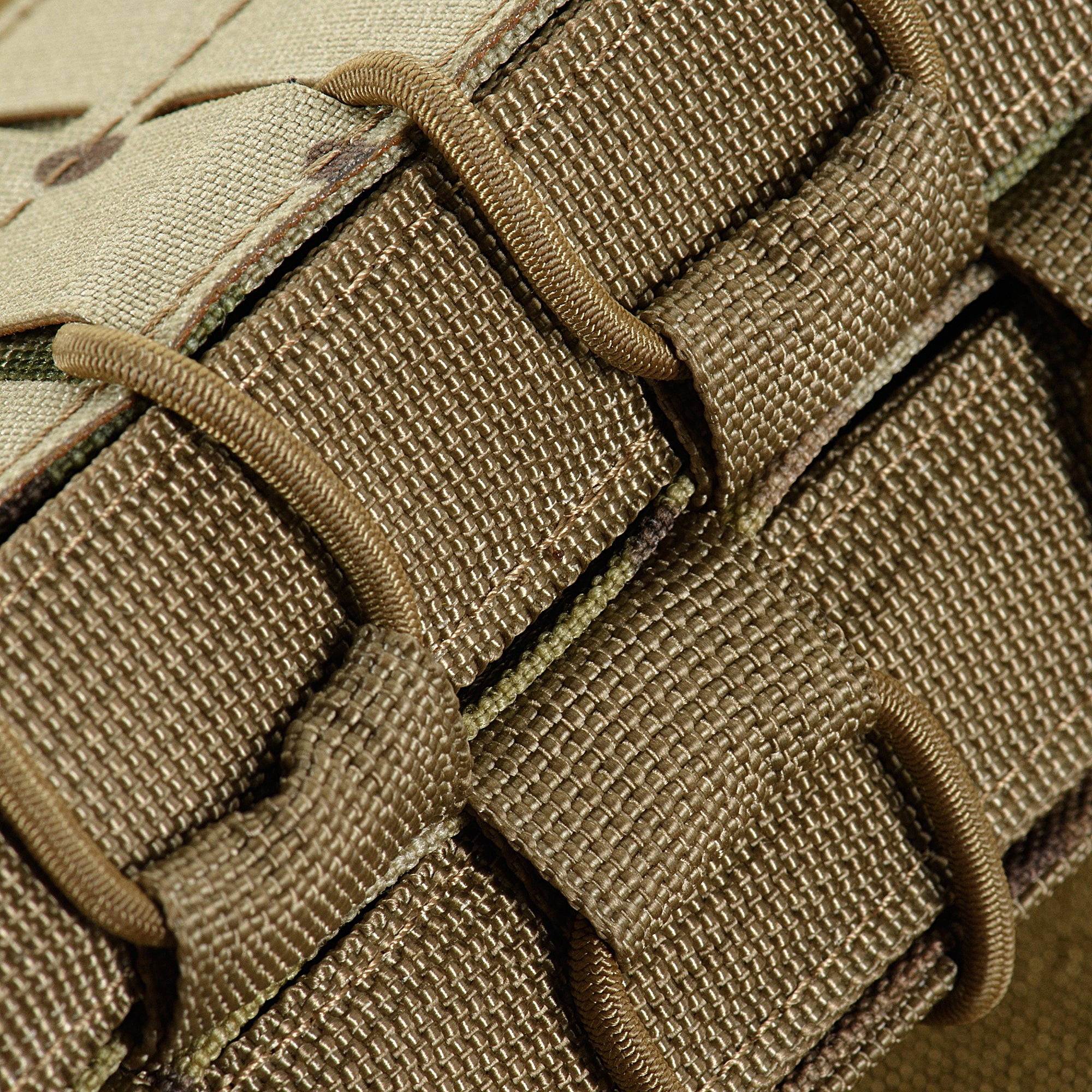 The pouch is designed to hold two AR or AK-type magazines. Its thoughtful shape provides secure retention and prevents magazines from falling out during active movement. The front MOLLE interface, made with Laser Cut technology, enables attachment of additional gear. Nylon webbing on the side walls ensures smooth magazine extraction.