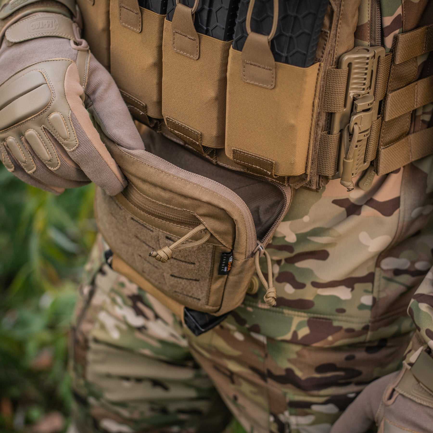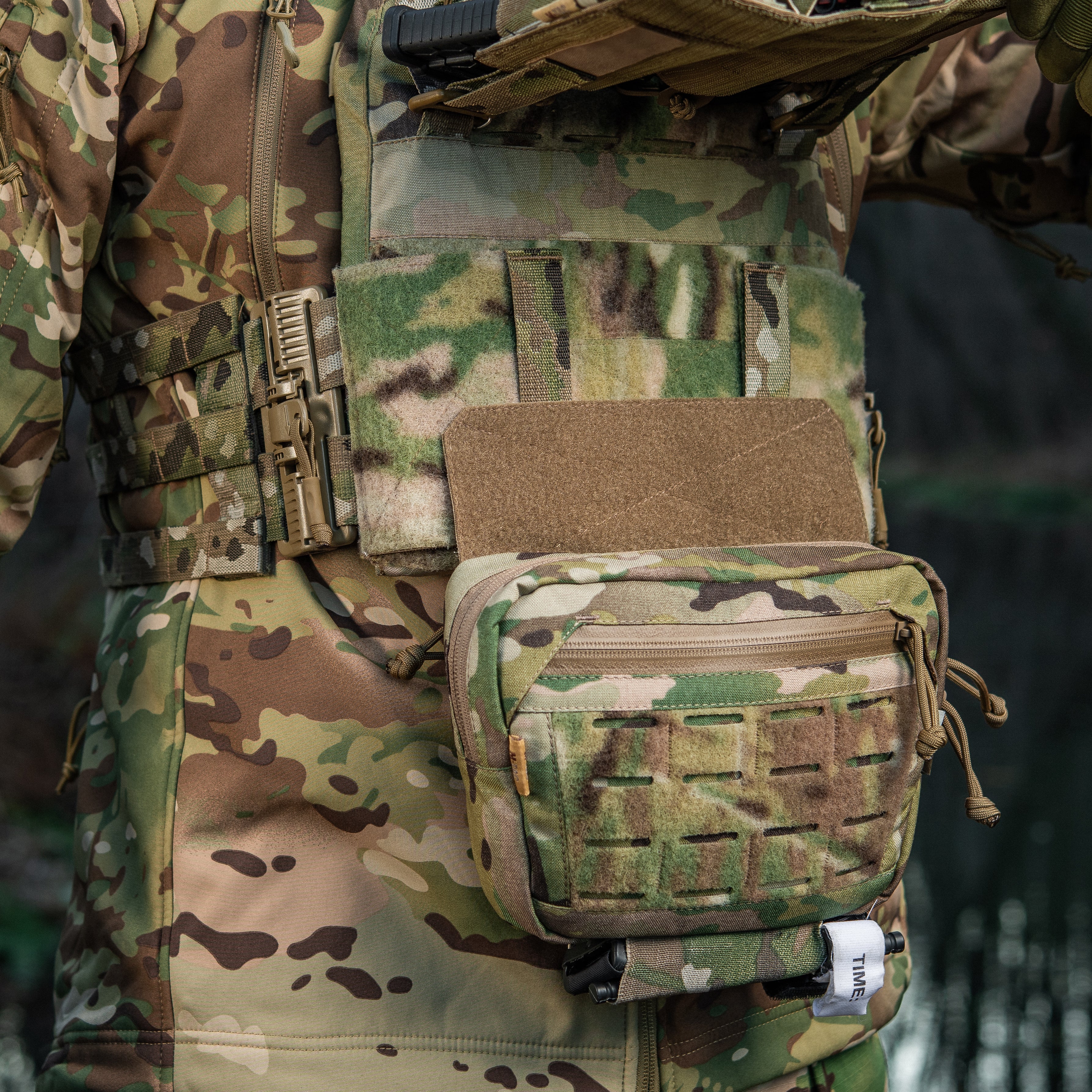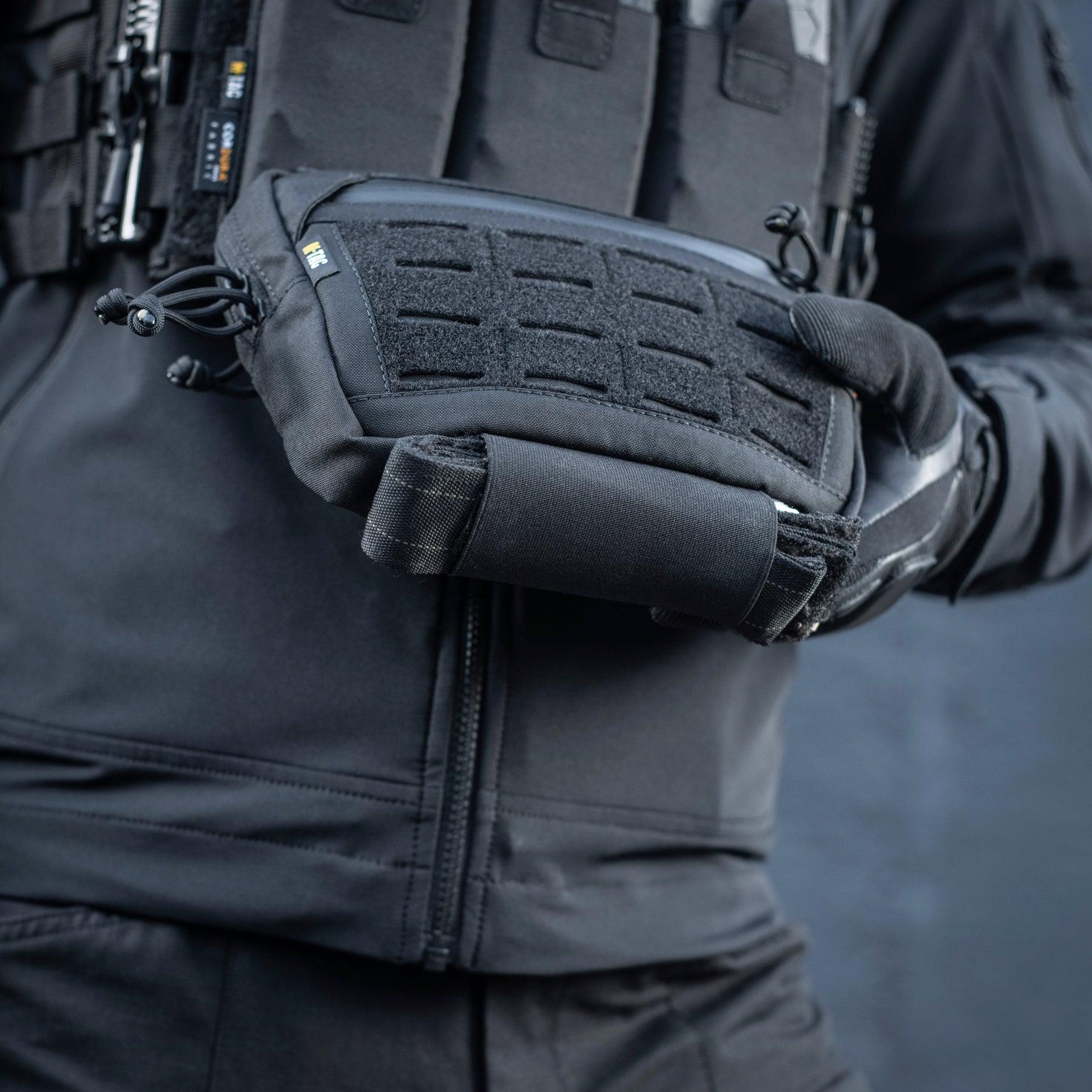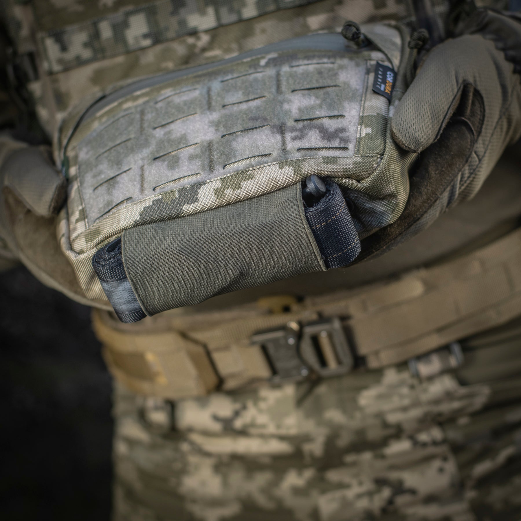 The Hanger Pouch includes three compartments for storing essential items. On the front, there’s a LaserCut loop panel for attaching patches or additional gear. The rear compartment can also accommodate an M-Tac ballistic insert - not included. Additionally, an elastic holder for a tourniquet is integrated into the bottom of the bag.