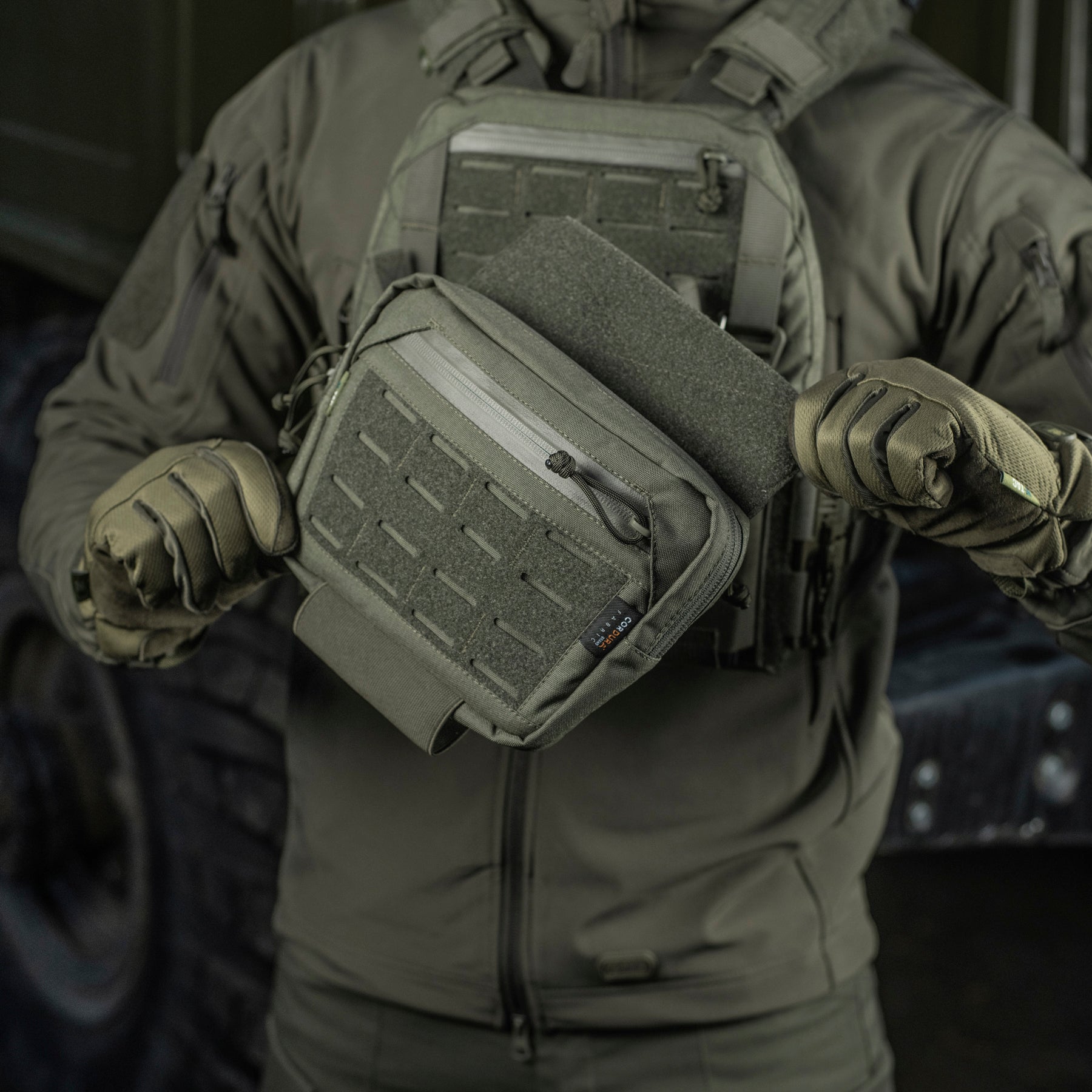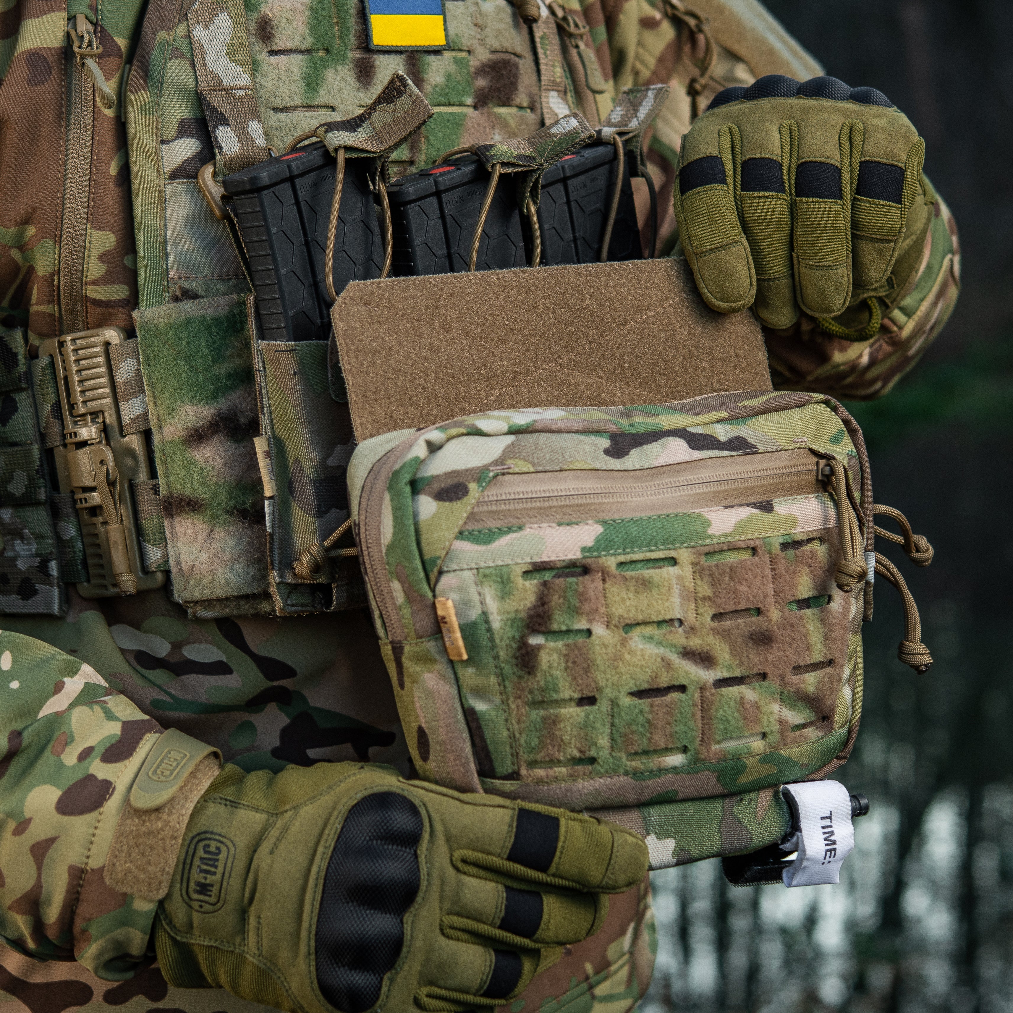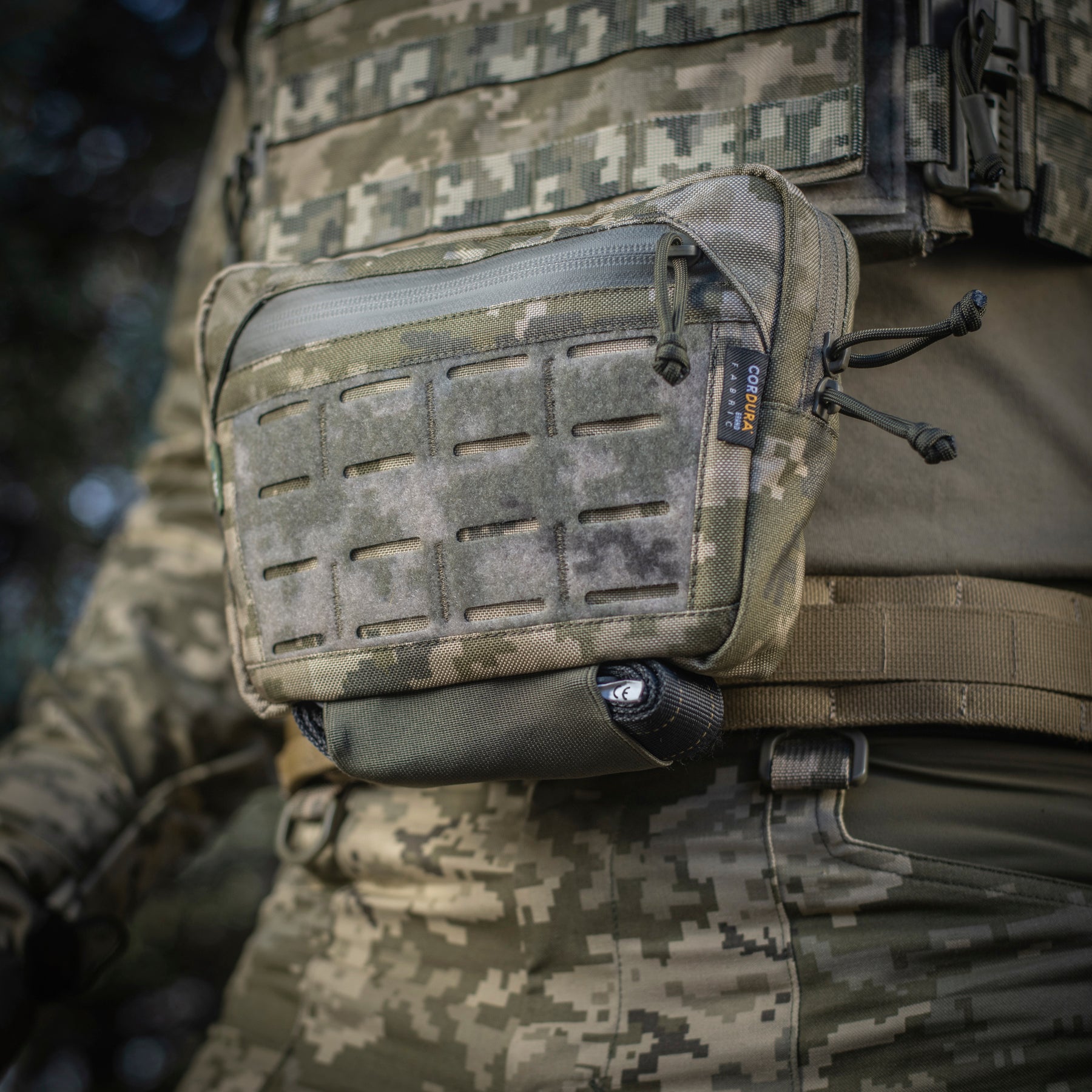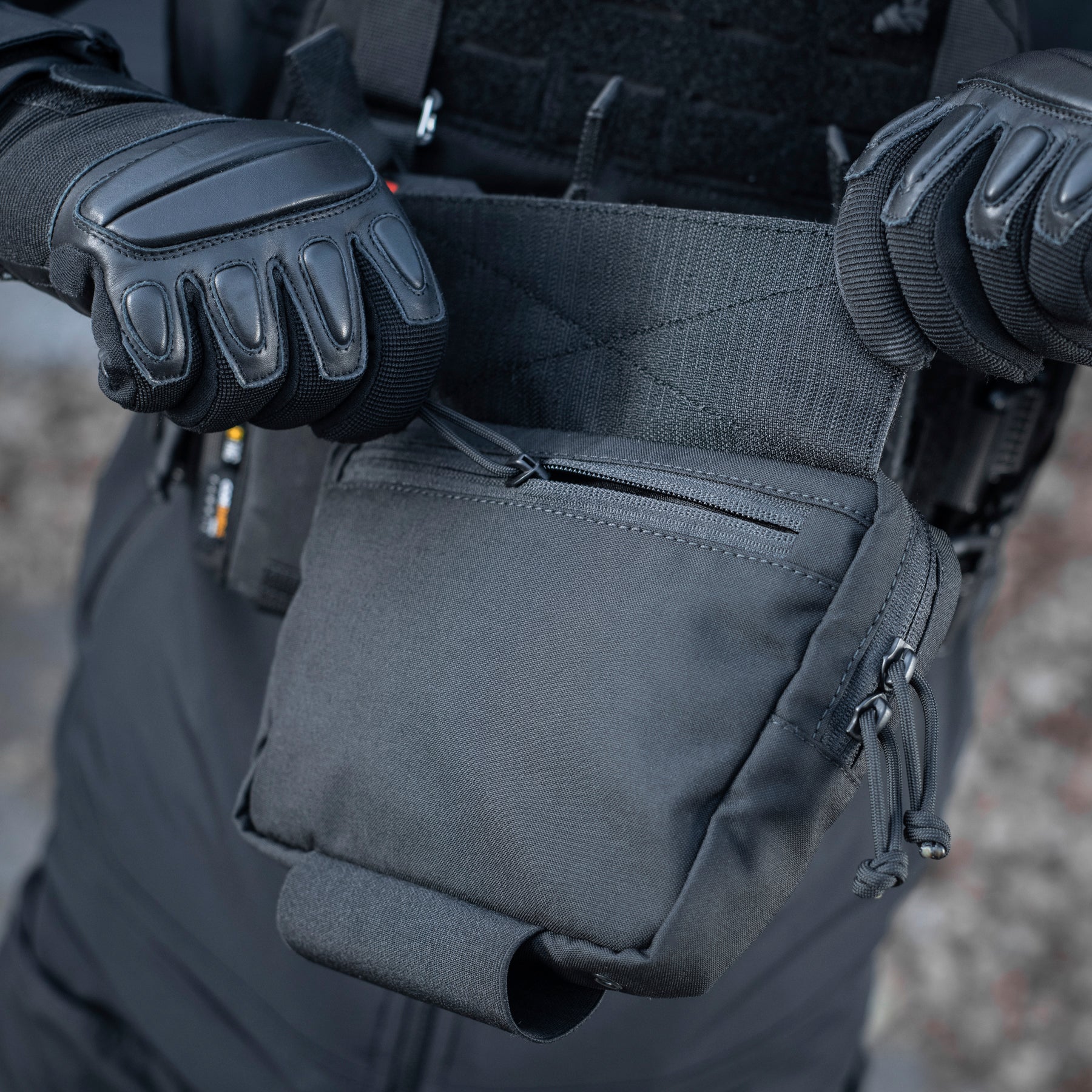 The Hanger Pouch includes three compartments for storing essential items. On the front, there’s a LaserCut loop panel for attaching patches or additional gear. The rear compartment can also accommodate an M-Tac ballistic insert - not included. Additionally, an elastic holder for a tourniquet is integrated into the bottom of the bag.