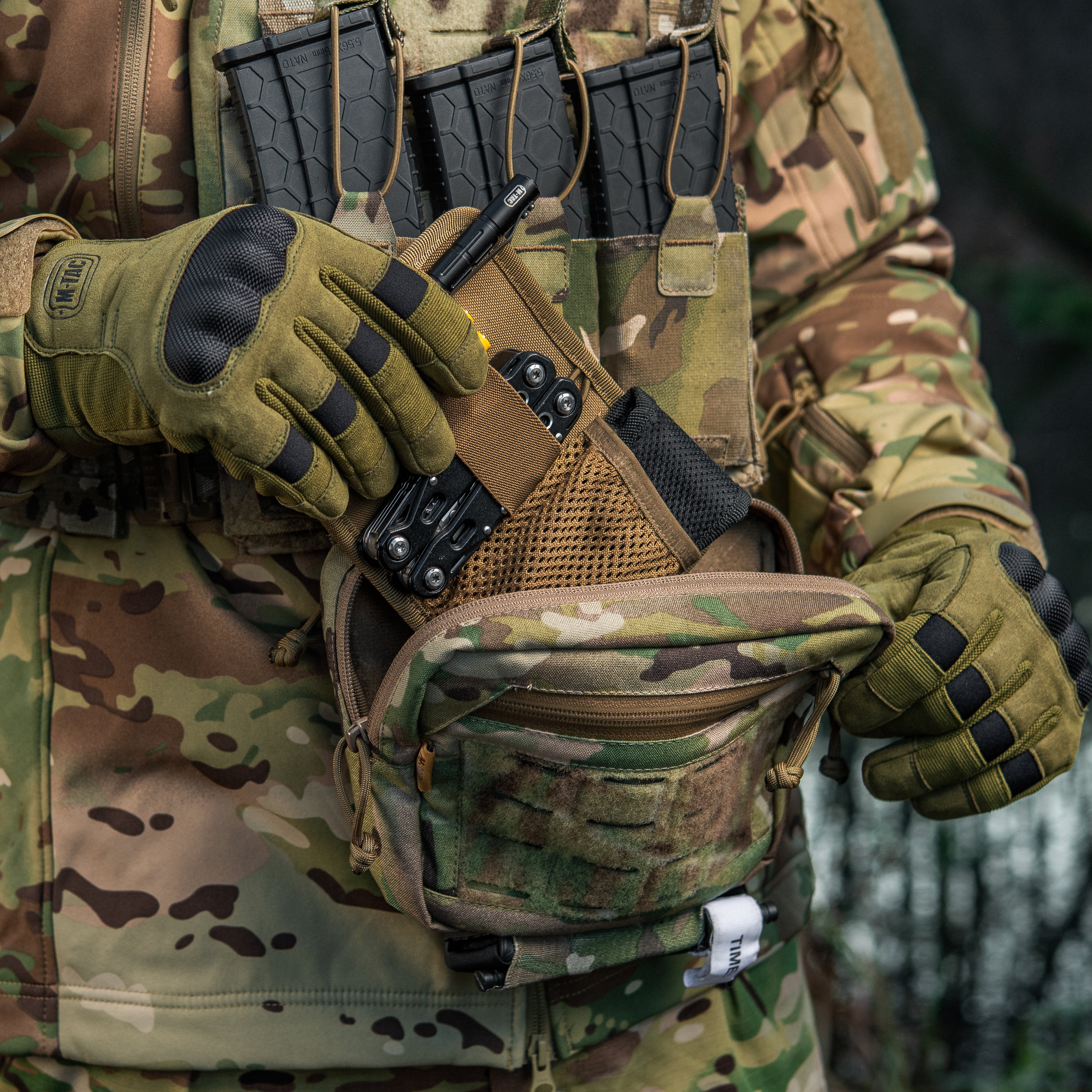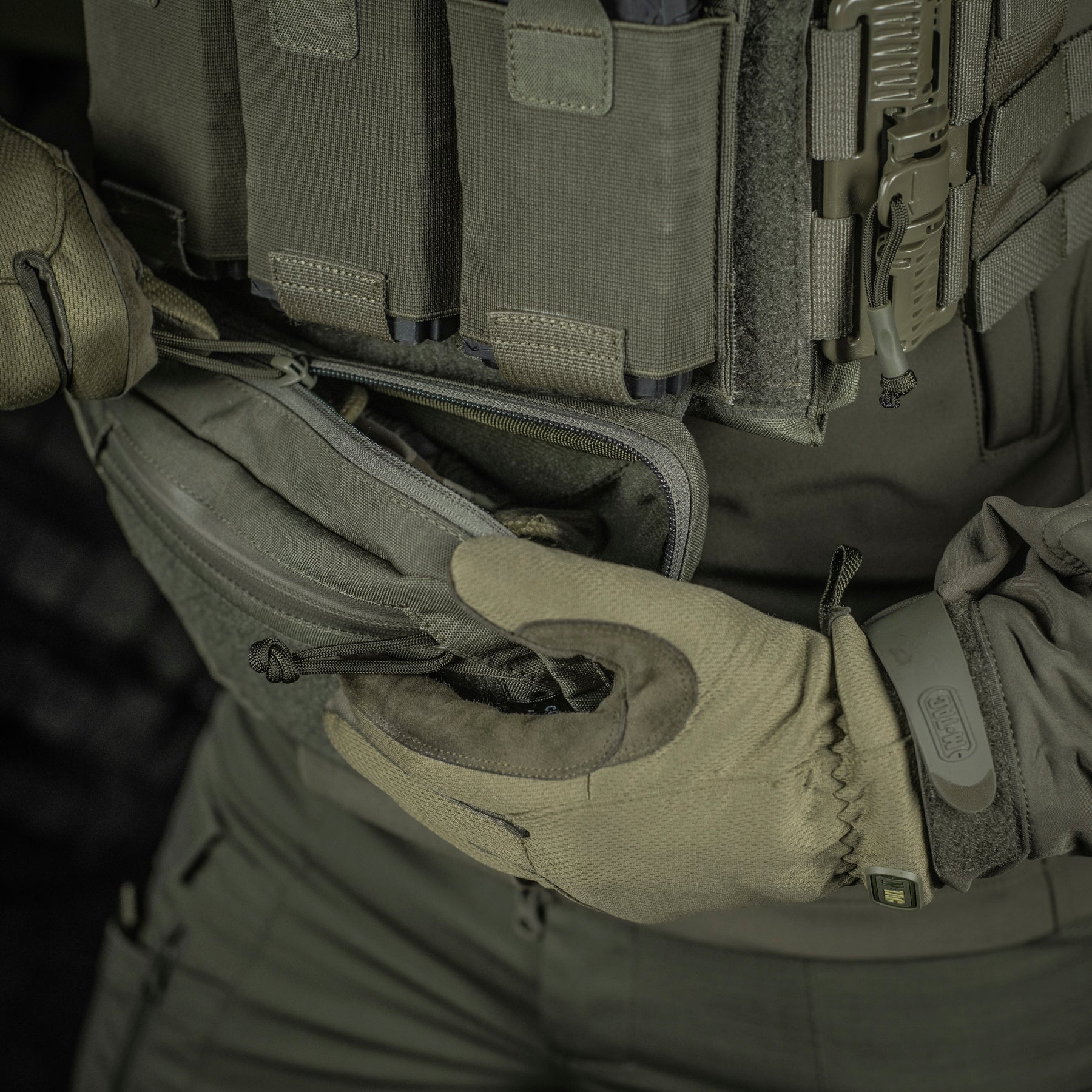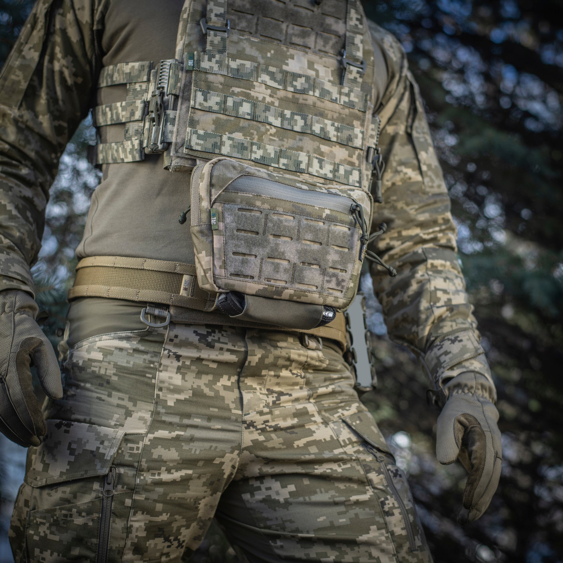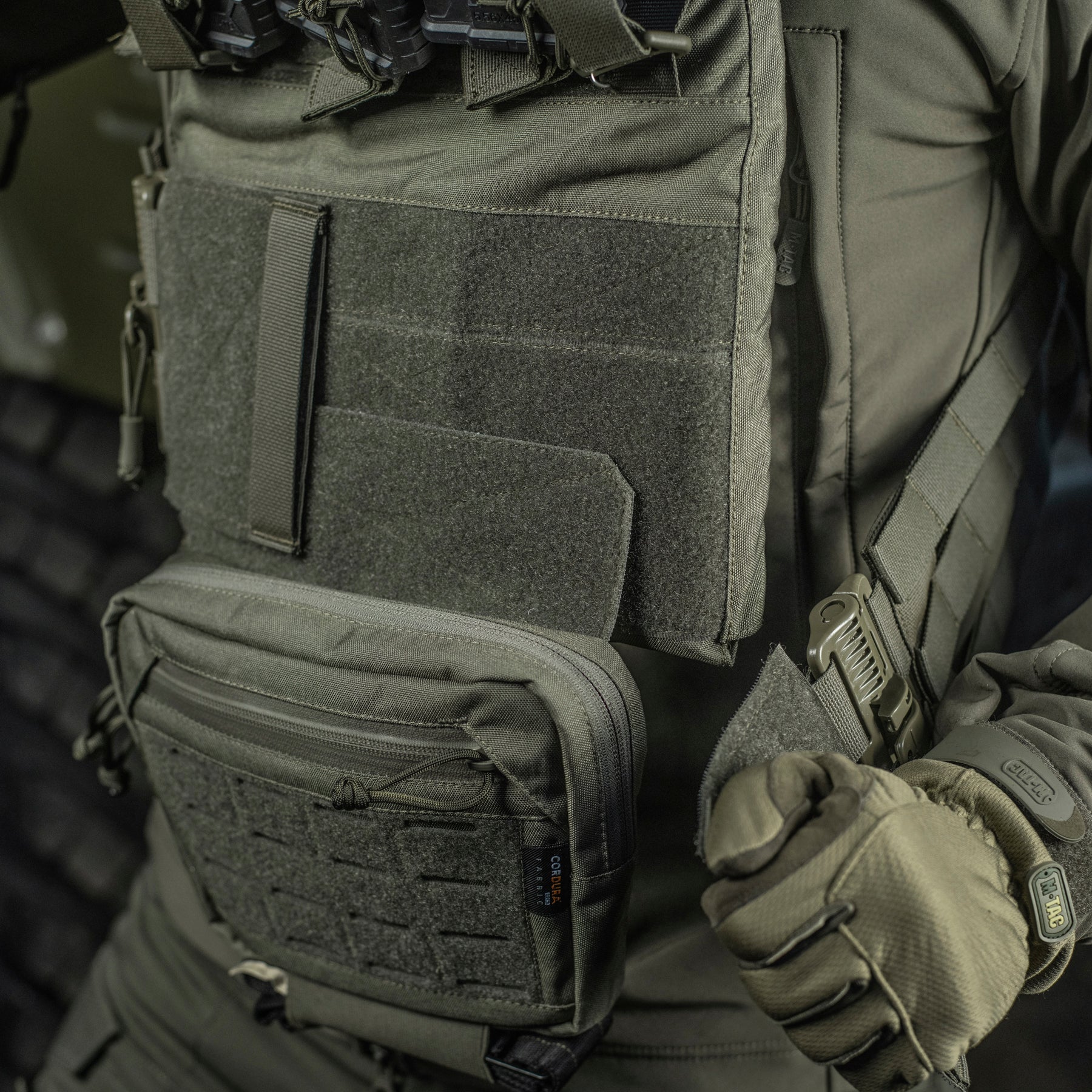 The Hanger Pouch includes three compartments for storing essential items. On the front, there’s a LaserCut loop panel for attaching patches or additional gear. The rear compartment can also accommodate an M-Tac ballistic insert - not included. Additionally, an elastic holder for a tourniquet is integrated into the bottom of the bag.