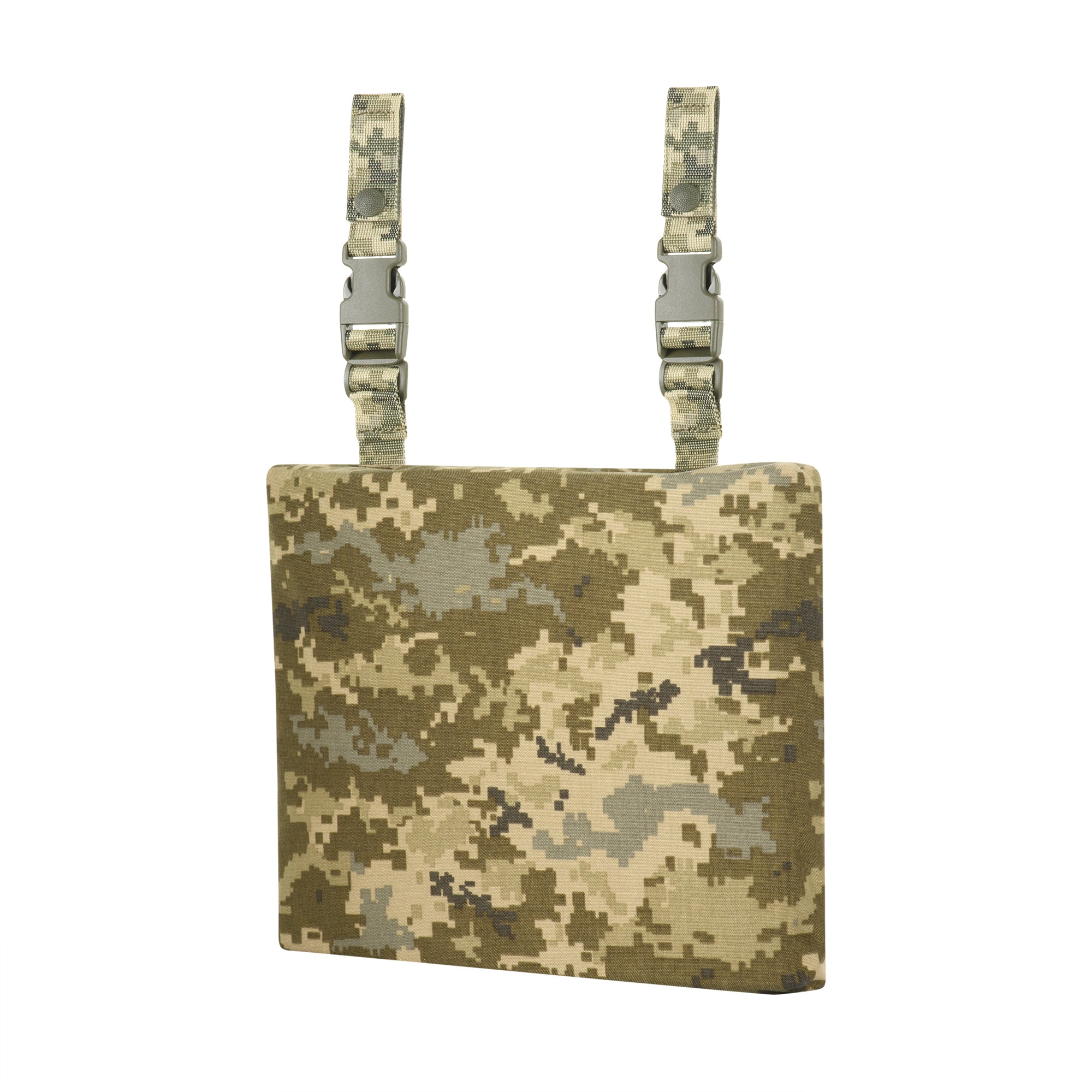 It attaches via straps and snaps to the M-TAC WAR BELT ARMOR or any other MOLLE-compatible gear. Quick-release buckles allow you to easily fasten the mat to your belt and remove it quickly when needed. The height of the mat can be adjusted to your body size.