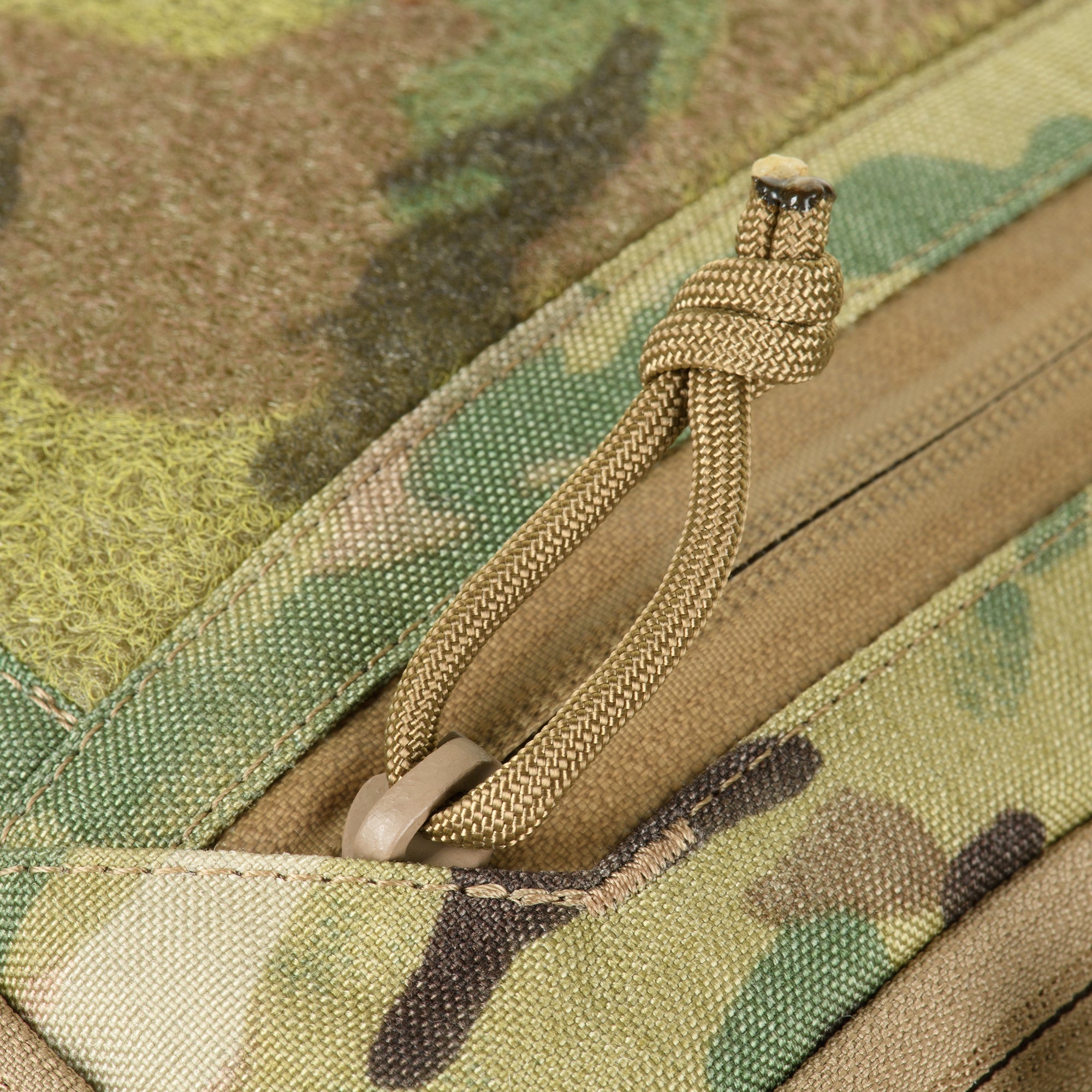 Made from Cordura 500D, it provides excellent resistance to abrasion and heavy loads. YKK® zippers ensure durability and reliable performance in all conditions. A full-length Velcro mounting strap allows attaching the bag directly to the Velcro panel under a plate carrier flap, increasing overall functionality.