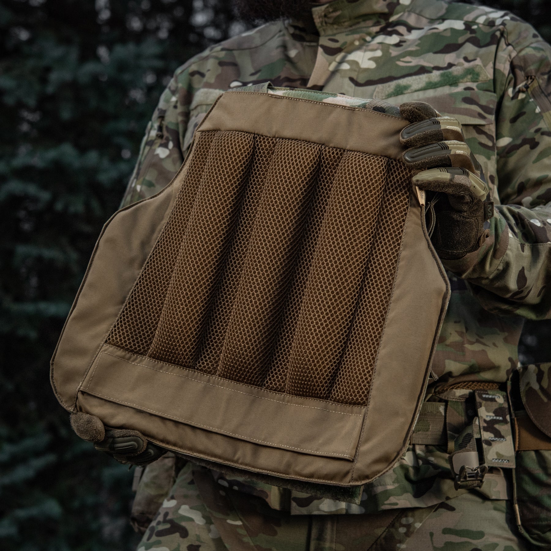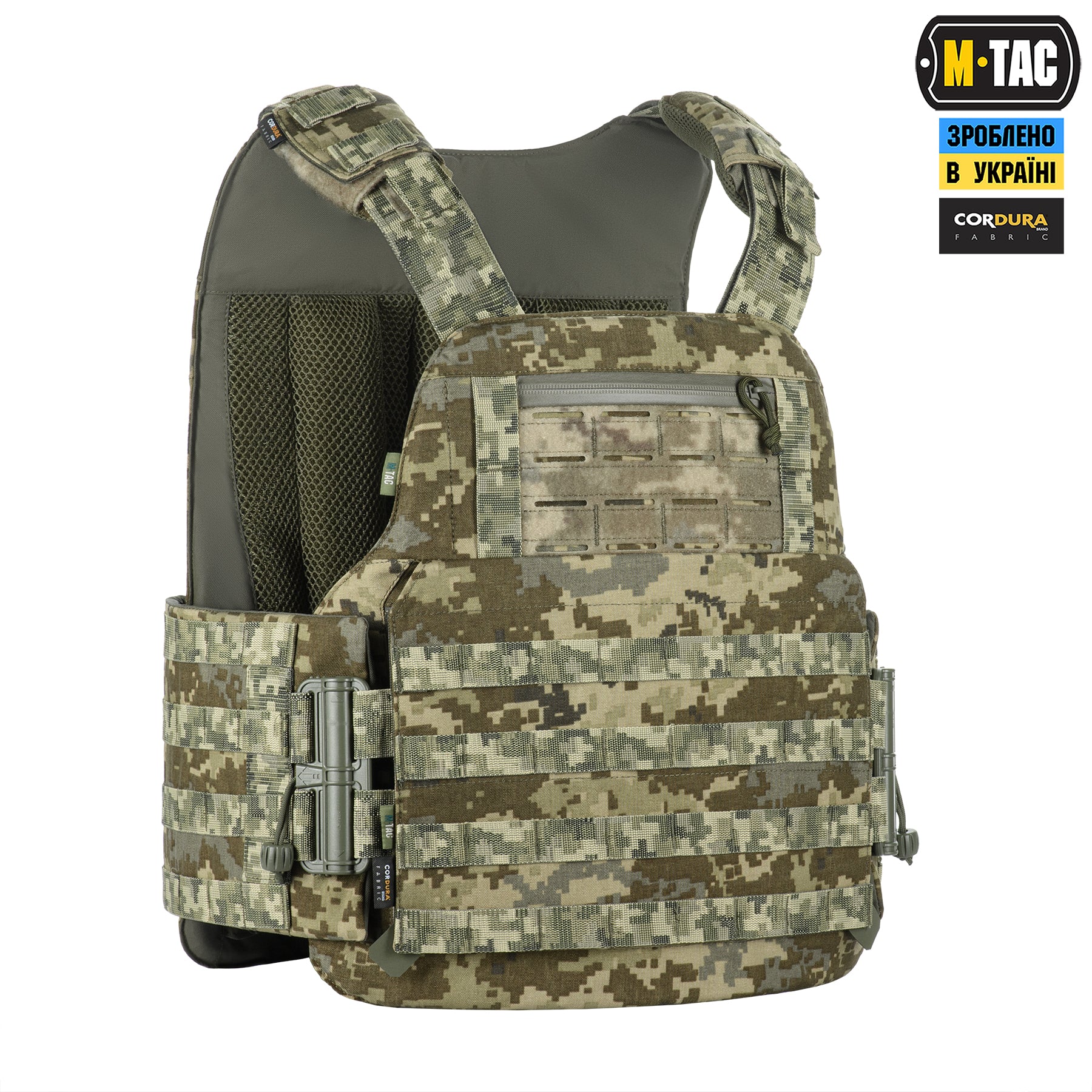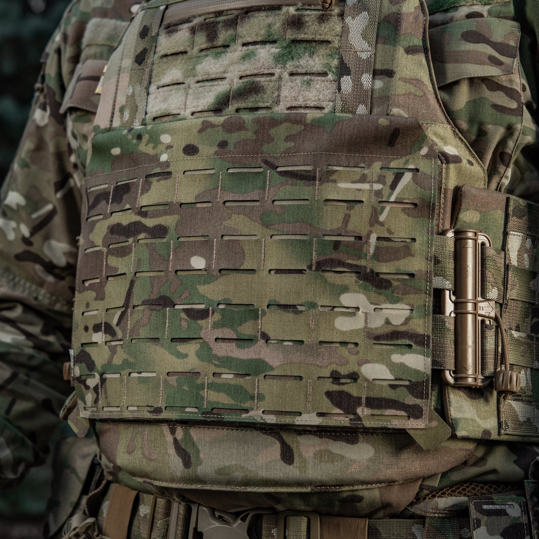 The special shape of the plate carrier, combined with the use of soft ballistic plates, provides maximum anti-fragmentation protection. In this generation, the cover is equipped with a non-removable front MOLLE panel made using laser-cut technology, providing a convenient platform for pouches, holsters, medical kits, organizers, and other equipment.
