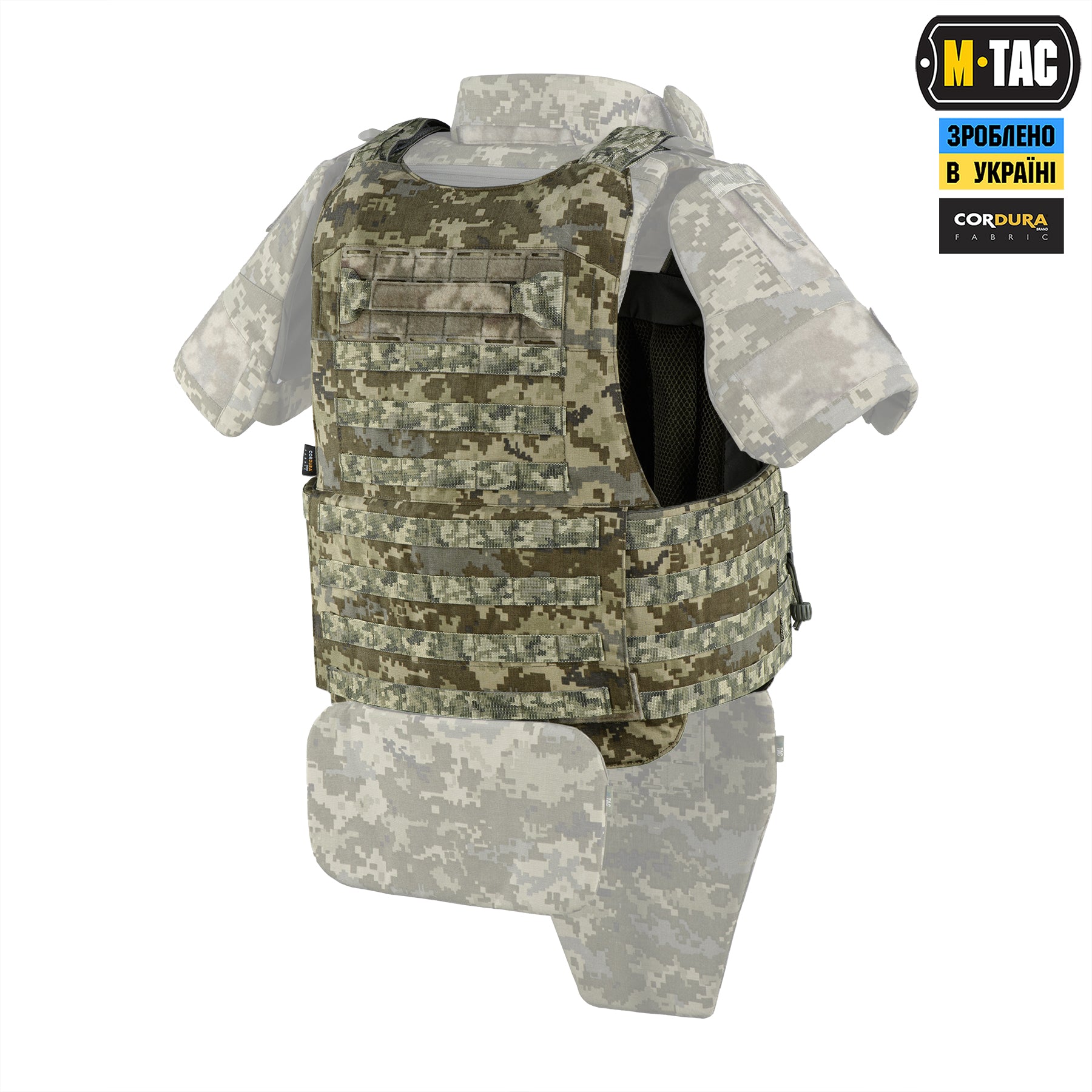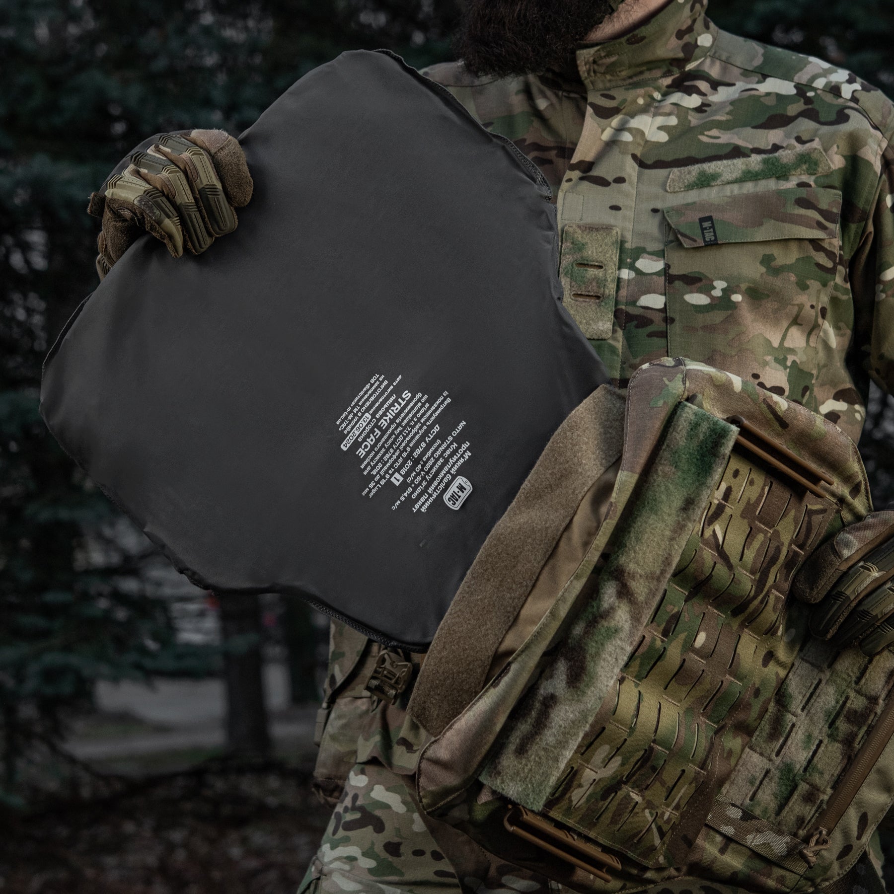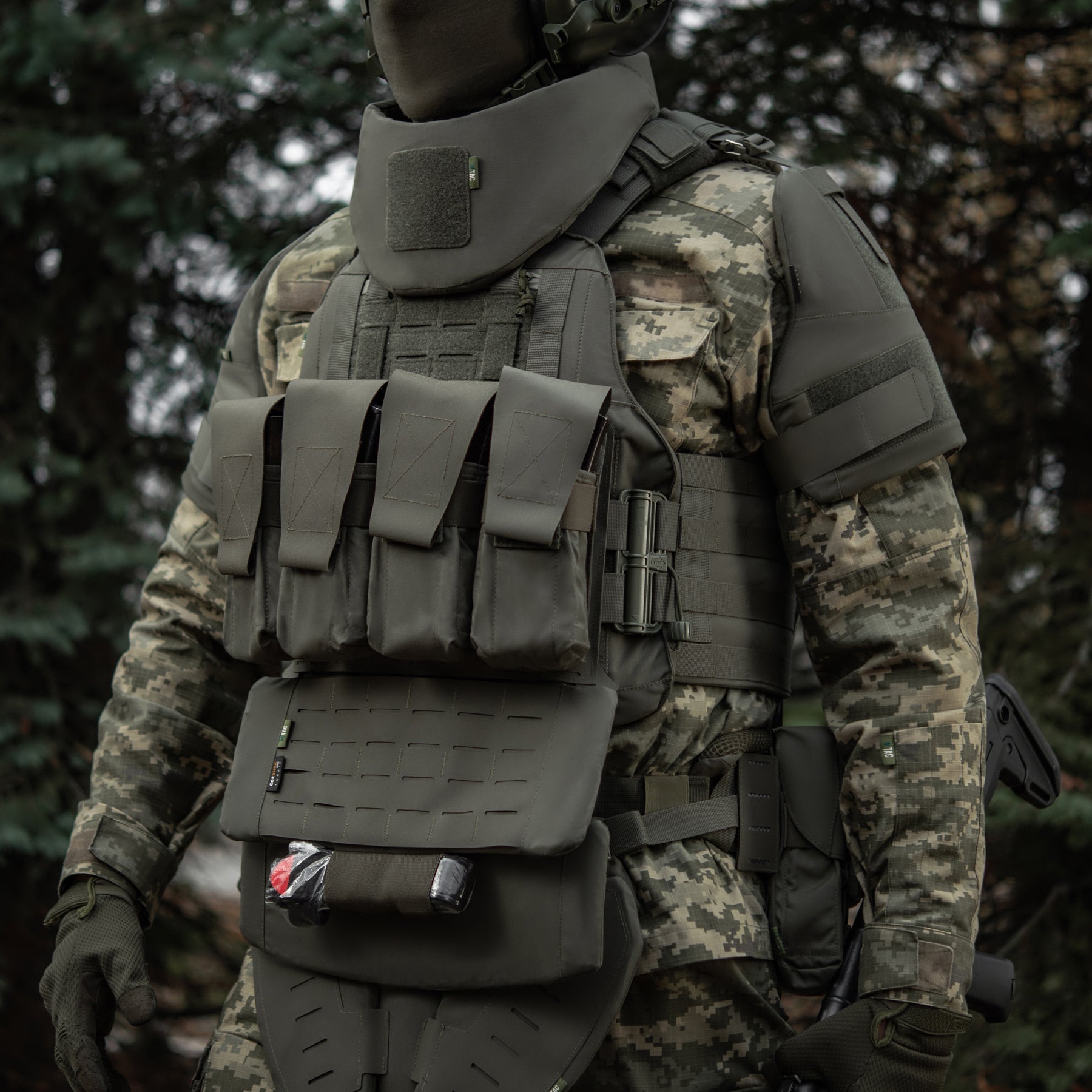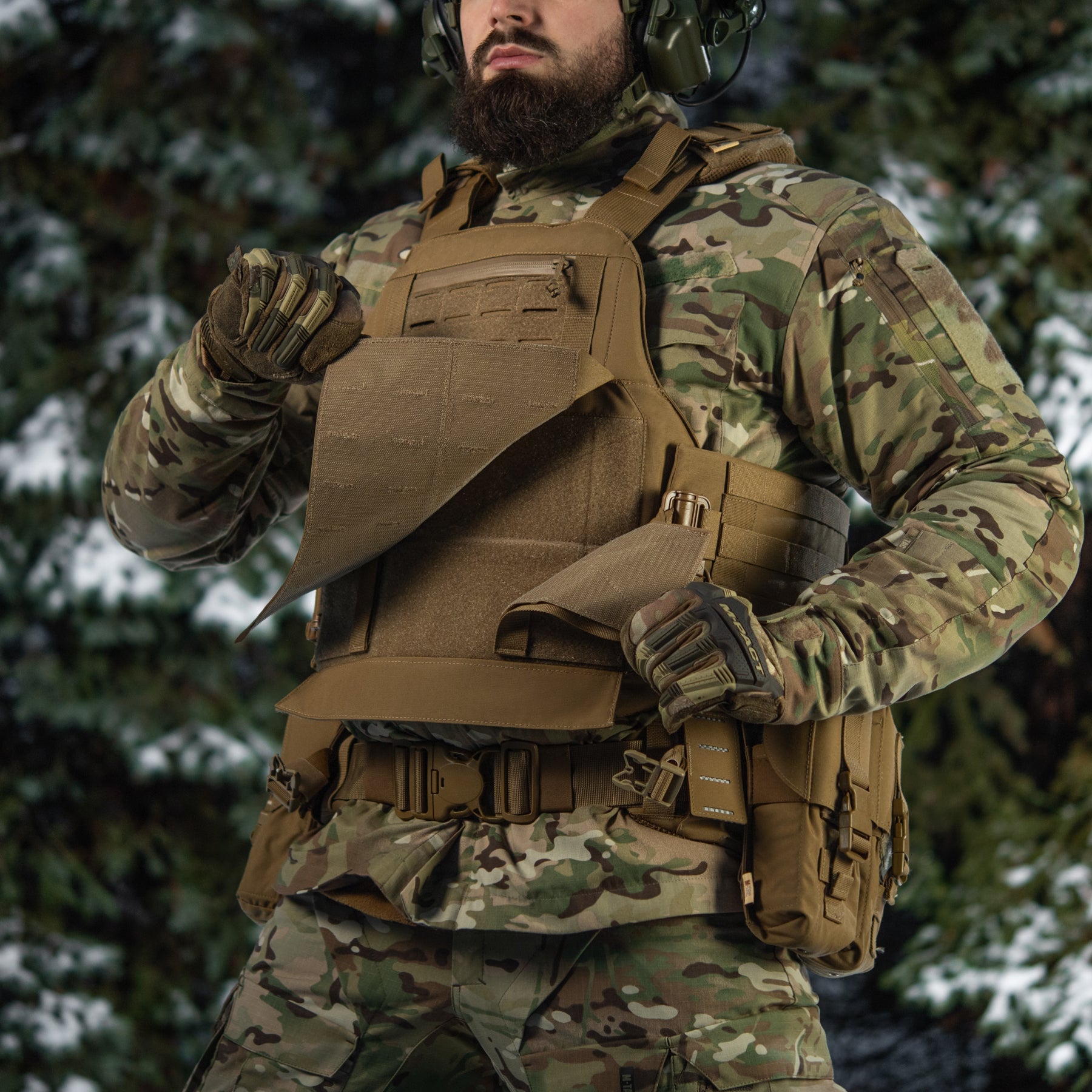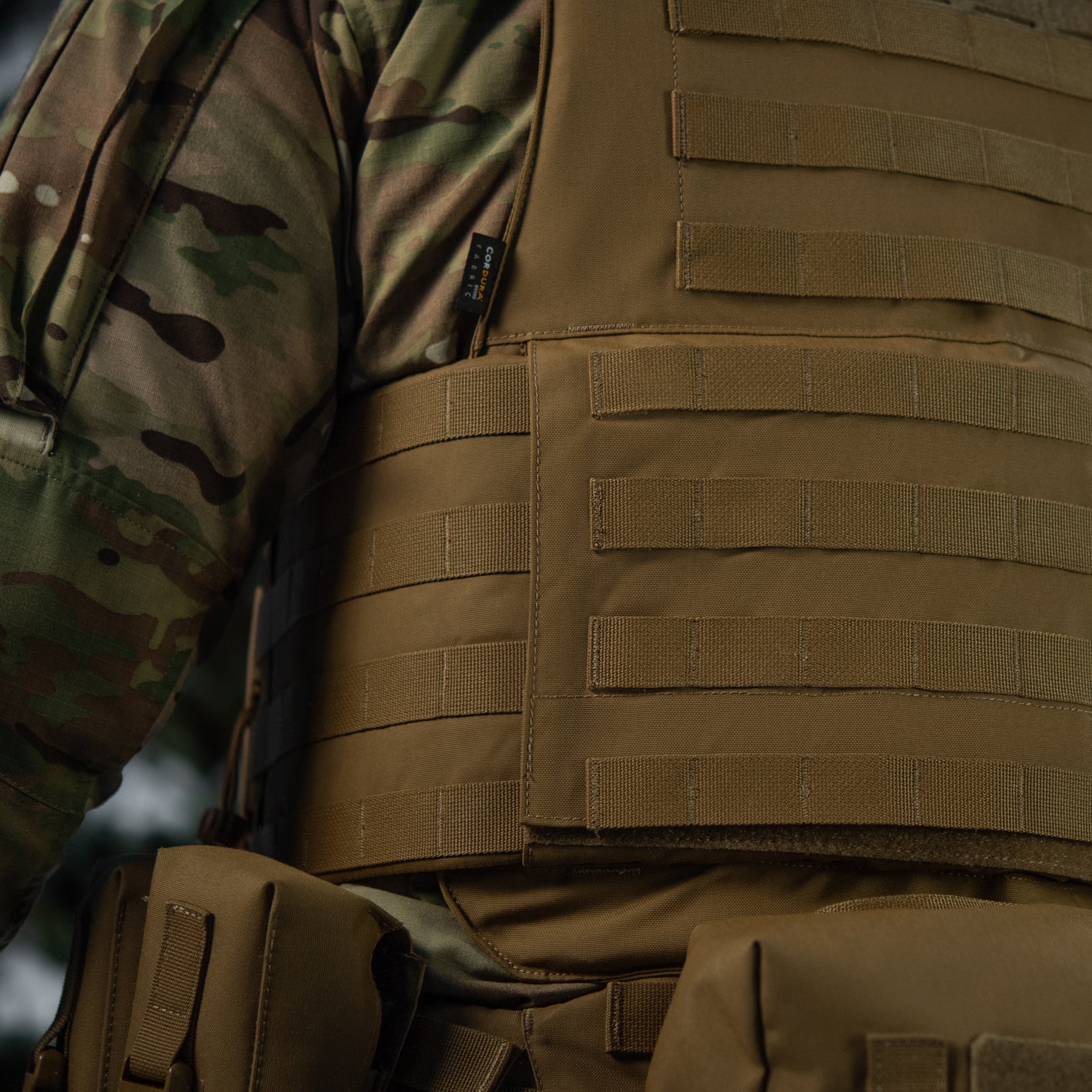 The cover can be supplemented with the M-Tac Soft Ballistic Package (Protection Class 1 for STURM Plate Carrier, sold separately), which consists of six elements: front, back, two cummerbund elements, and two shoulder strap elements.