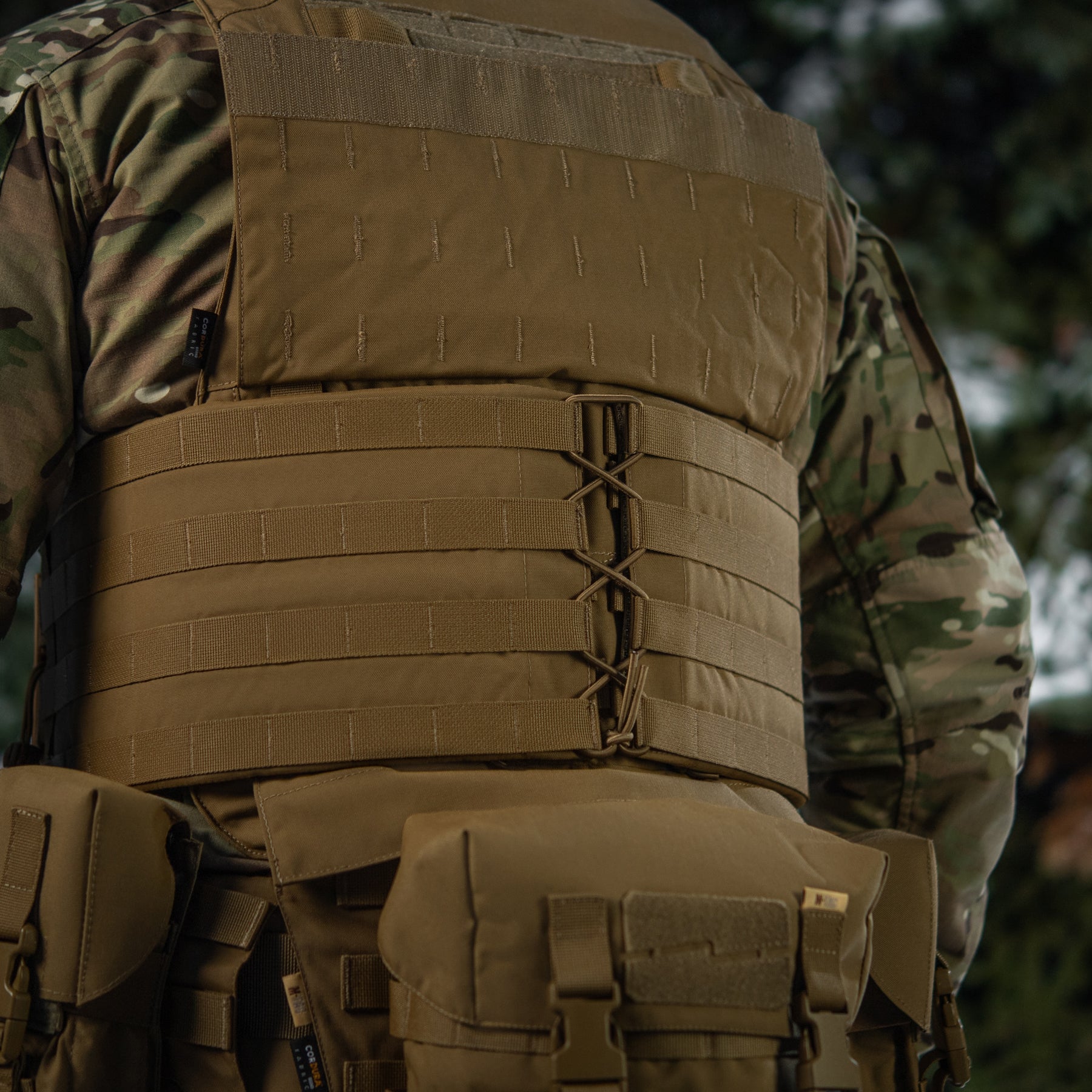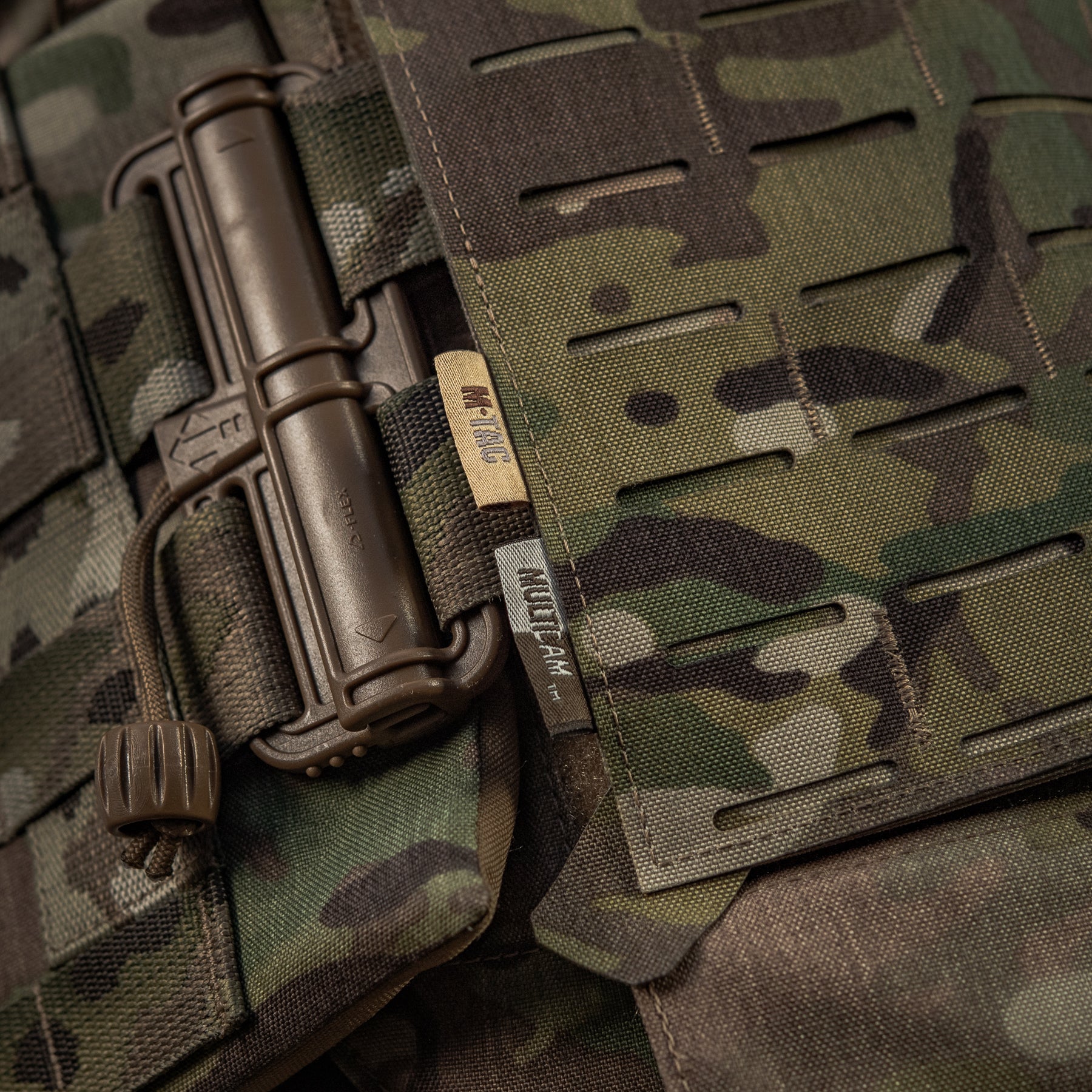 The plate carrier cover is constructed from high-quality Cordura 500D, an extremely durable fabric that is abrasion-resistant and capable of withstanding high loads. The extended cummerbund, featuring a 4-row MOLLE interface, allows for the attachment of additional gear, such as horizontal IFAKs (Individual First Aid Kits) or utility pouches.