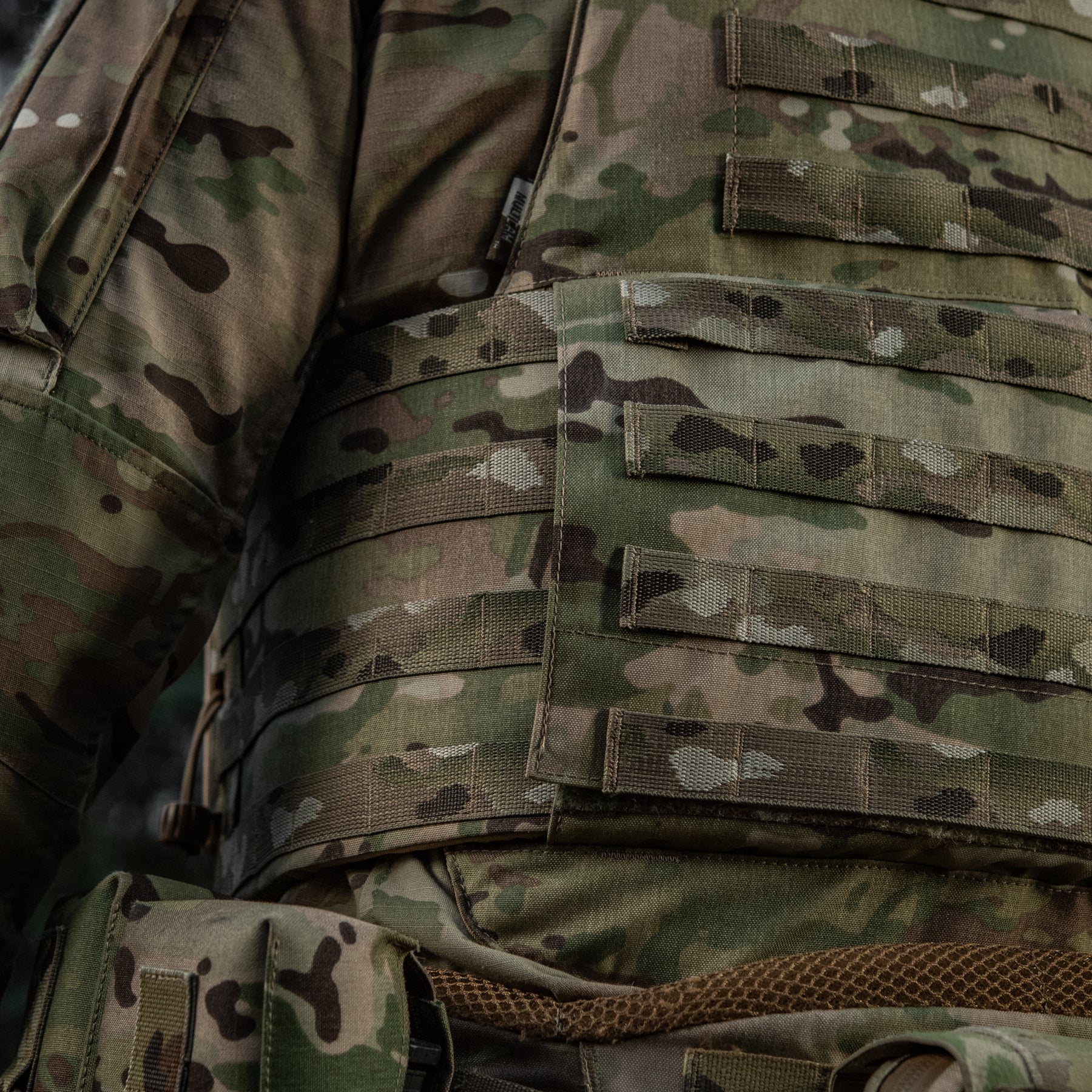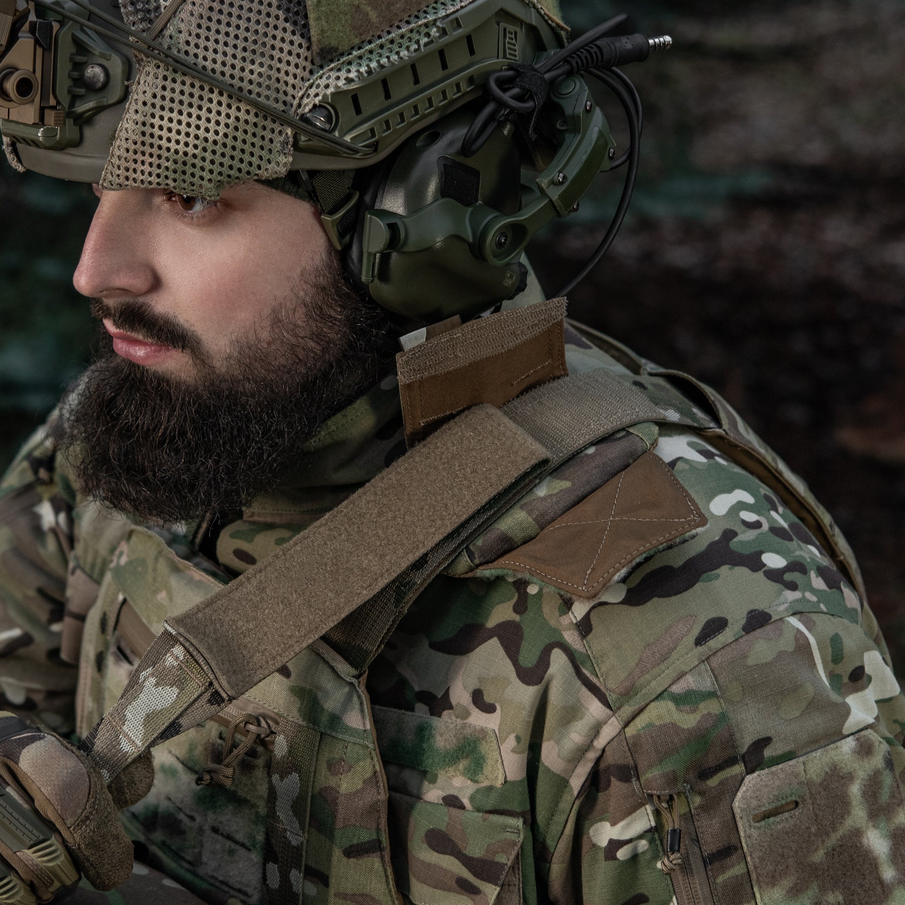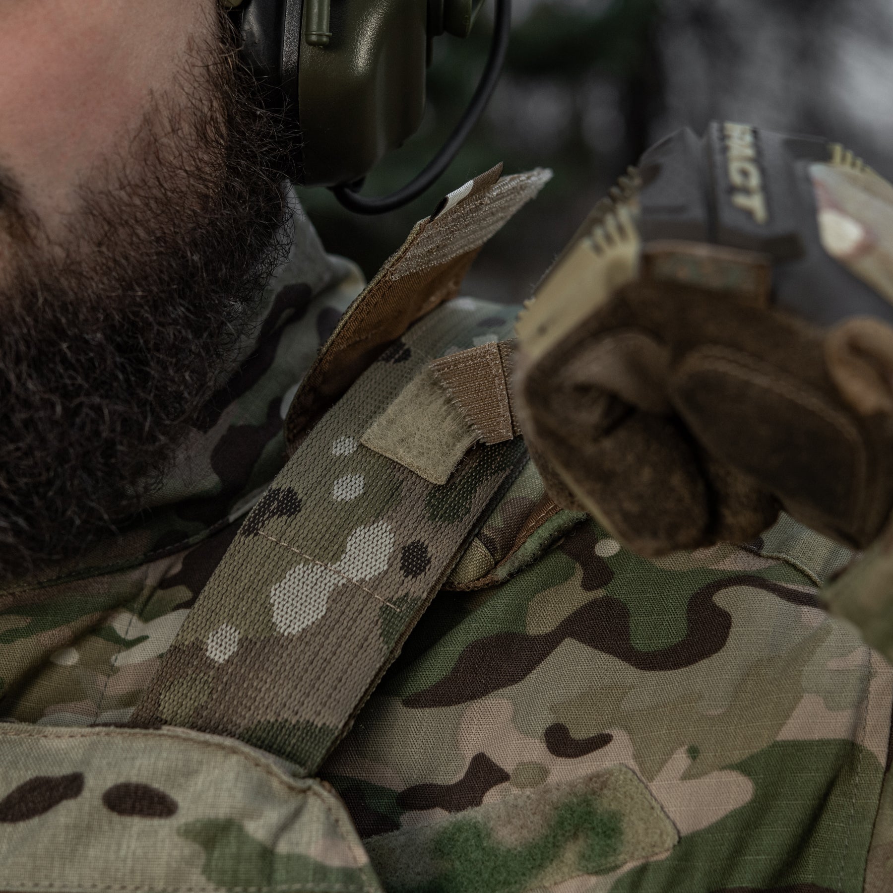 The rear panel features a classic MOLLE interface. In the upper part, the evacuation strap has been reinforced with special bar-tacks based on military recommendations. On the inner side, across the entire area of the chest and back sections, the brand's designers incorporated 3D mesh inserts and special damper pads to ensure excellent air circulation. The Sturm Gen.II cover can be used in its base configuration or supplemented with additional modules to increase the area of anti-fragmentation protection, forming a modern modular system of individual combat protection.