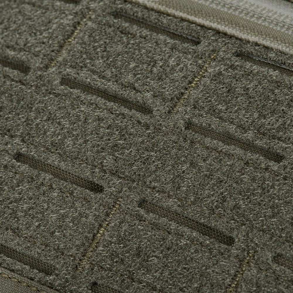 The lightweight rib-style cummerbund reduces overall weight and allows mounting additional MOLLE-compatible equipment. The back panel features a classic MOLLE interface and a reinforced evacuation handle.