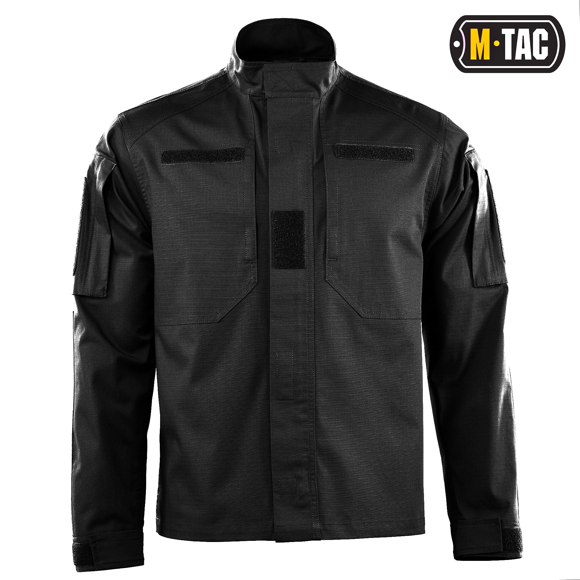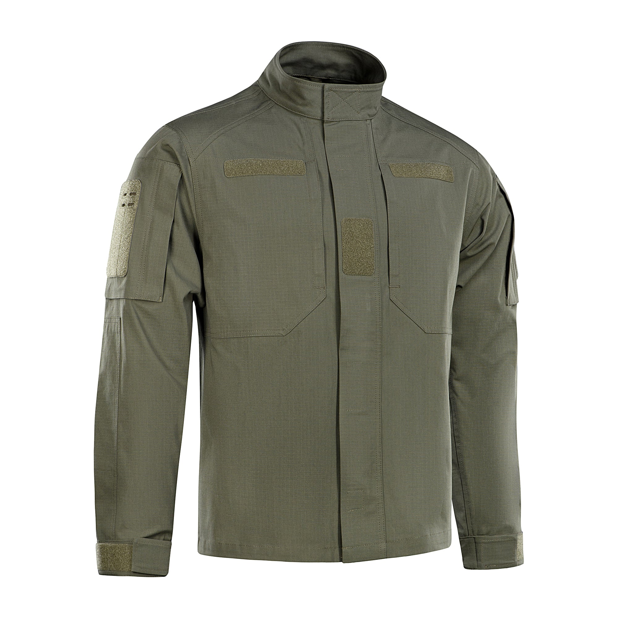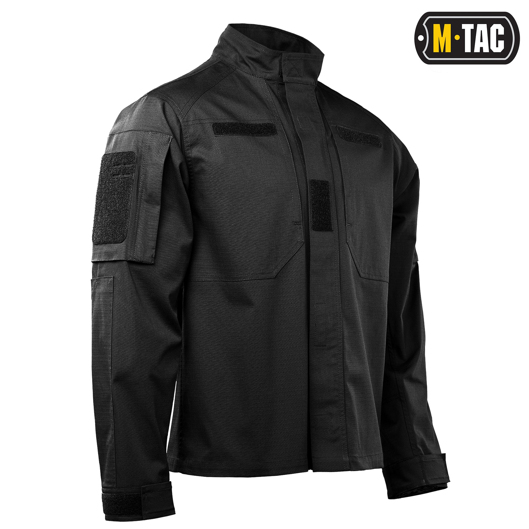 The M‑Tac Field Jacket Patrol Flex features a comfortable, slightly tailored fit. It is equipped with a stand-up collar secured with a loop closure, as well as a central front fastening in the form of a heavy-duty plastic separating zipper, covered by loop-secured storm flaps.