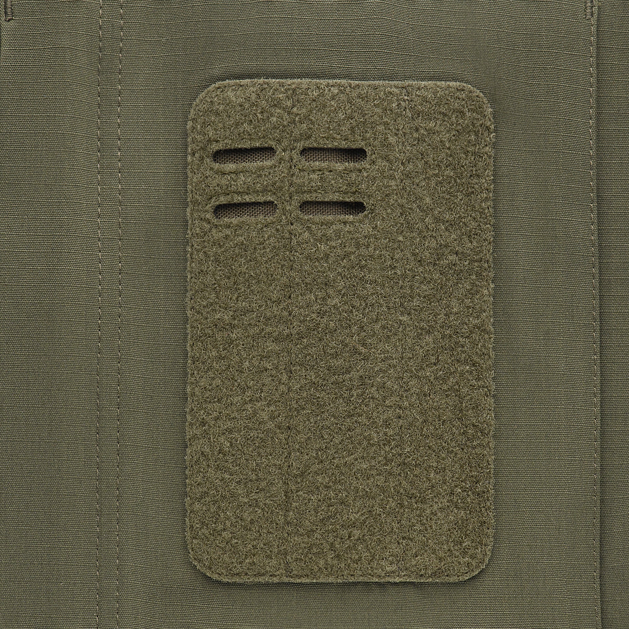 On the chest, there are two concealed loop pockets with vertical openings for easy access to contents, along with horizontal loop panels for attaching name tags and medical data patches. Embroidered eyelets under the arms improve ventilation. Each sleeve features one external pocket with a vertical zippered opening and a Multicam-colored loop panel, as well as service compartments for attaching pens or similarly sized gear.