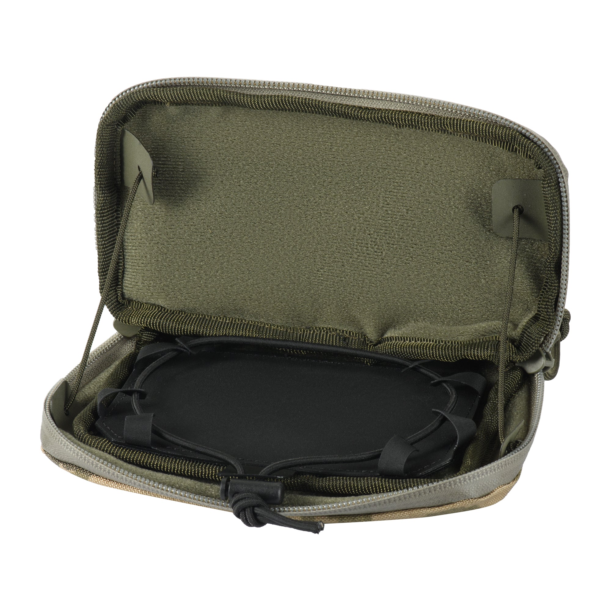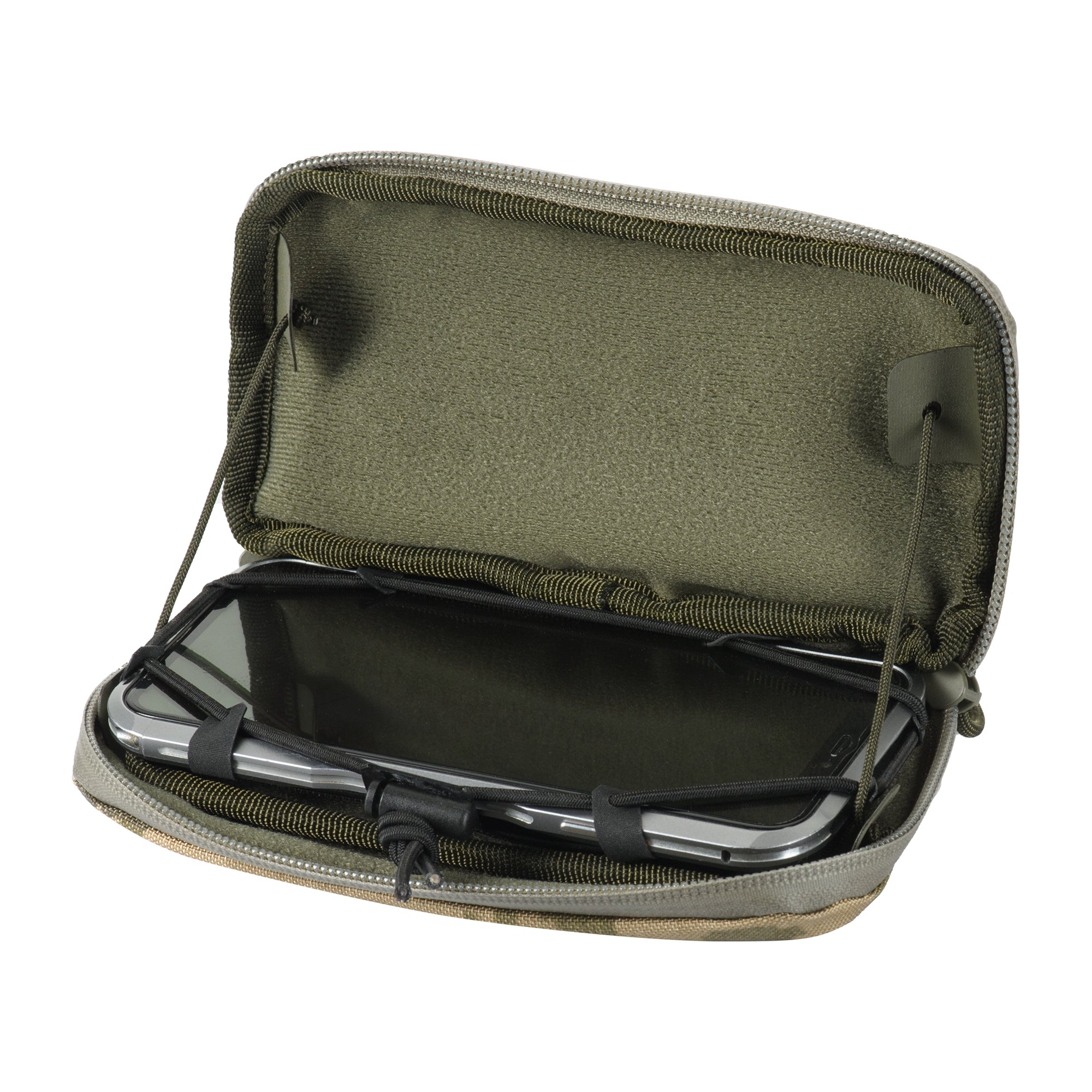 It is closed with a waterproof AquaGuard zipper, which protects the contents against moisture. Inside the organizer, brand designers have provided a special removable holder for securely fixing a mobile phone. The looppanel for badges or patches on the front.