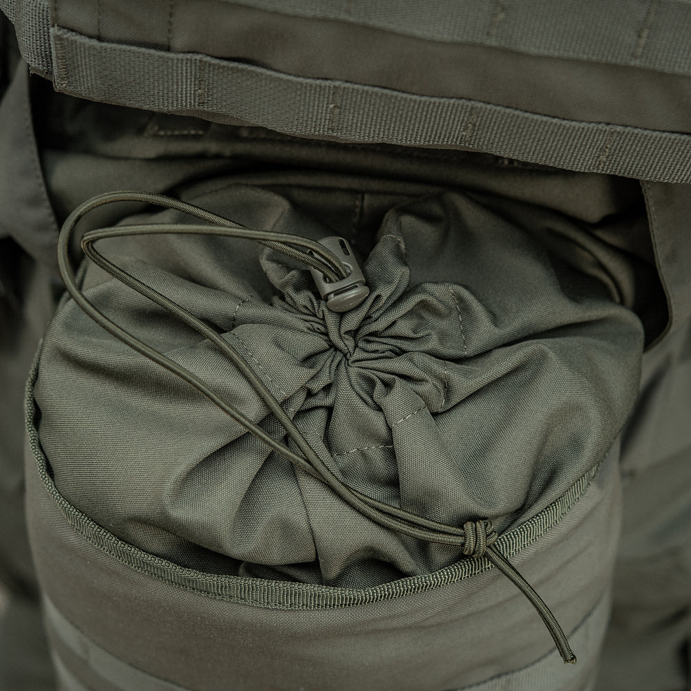 Made from Cordura 500D, it offers excellent resistance to abrasion and mechanical stress. The pouch features a spacious main compartment with an elastic drawstring closure and toggle, ensuring the contents stay secure. The top flap closes with adjustable Woojin® buckles, providing additional protection from accidental spillage.