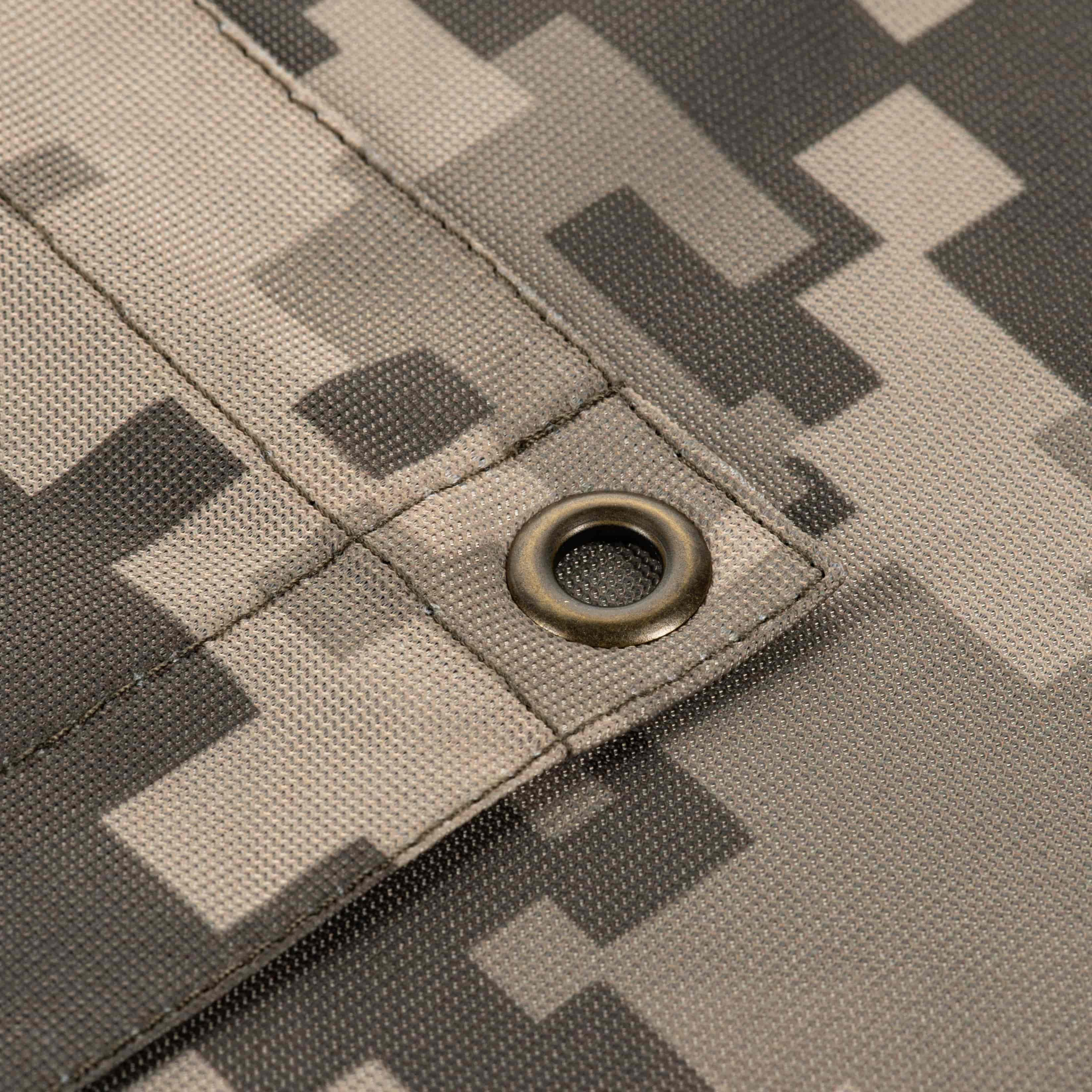 This item serves as a significant, symbolic element for display in a workspace, dugout/bunker, barracks, or home. It is made from durable, compactible flag mesh (100% Polyester, 130 g/m²), perfect for easy transport during missions. For secure mounting, it includes four reinforced grommets along the perimeter.