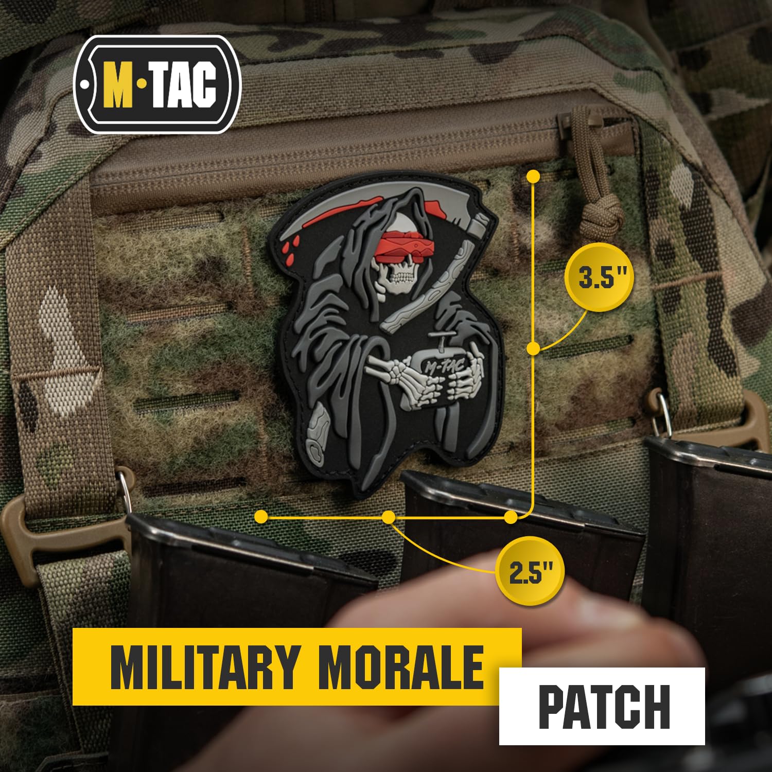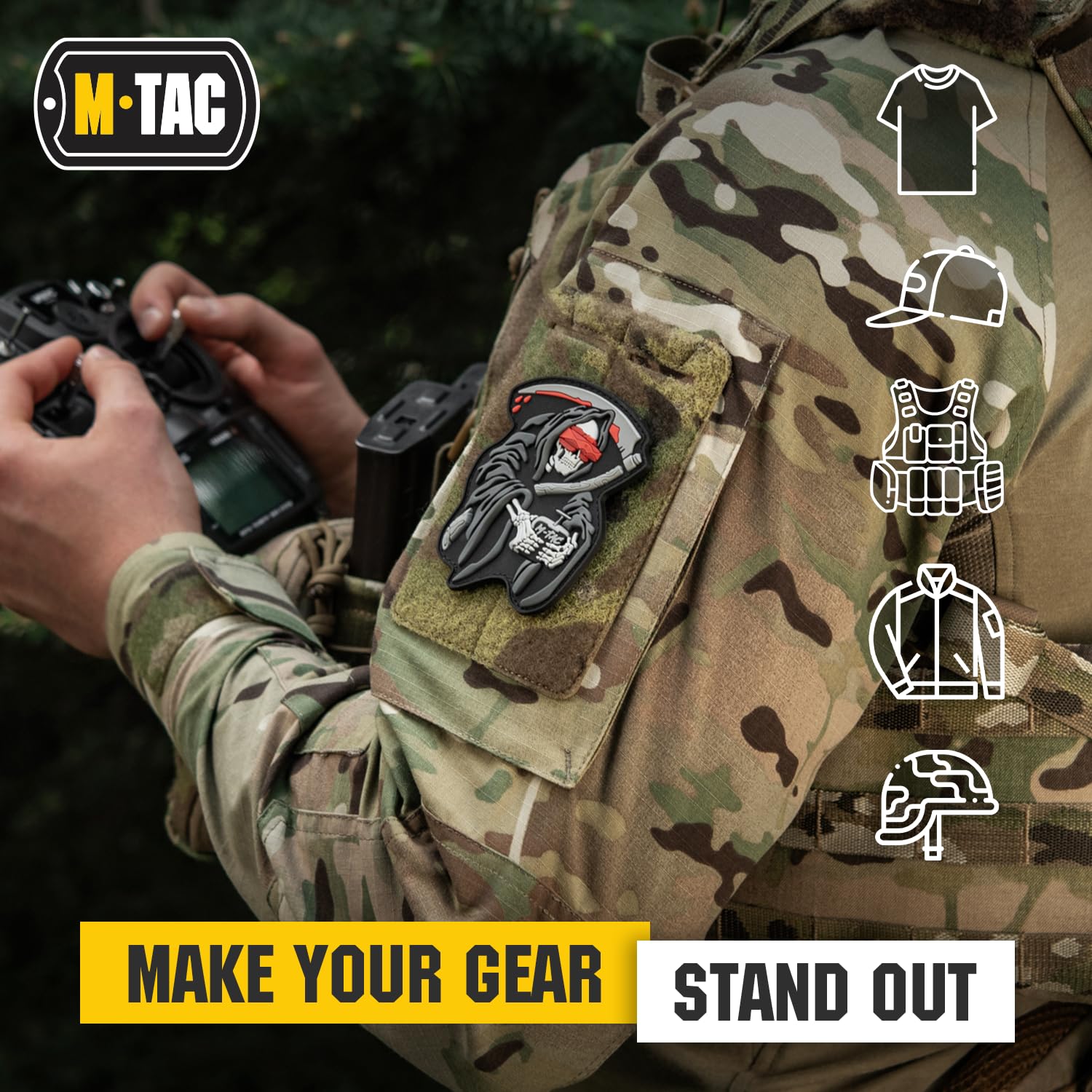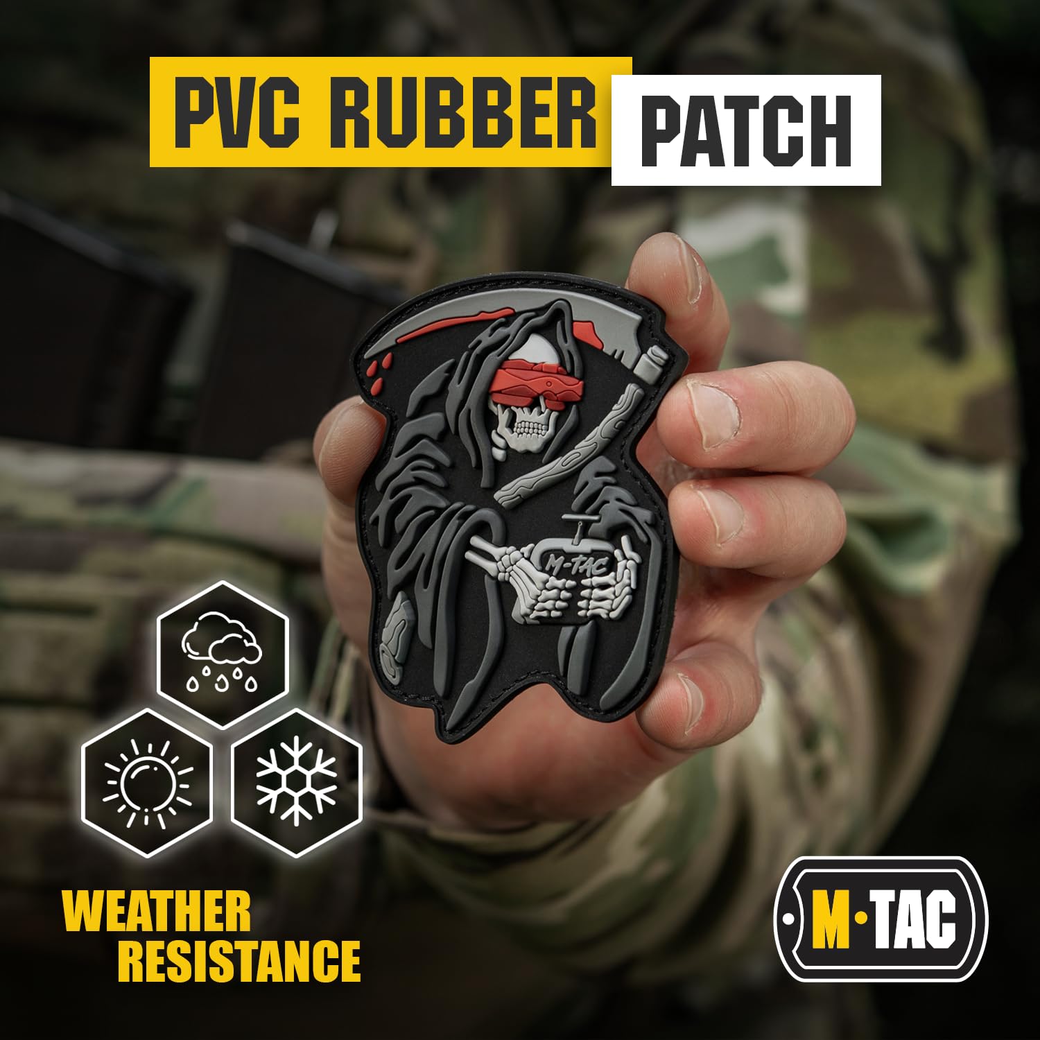 Introducing the M-Tac Morale Patch "FPV OPERATOR" – a uniquely designed patch dedicated to the skilled drone operators who masterfully orchestrate the enemy's encounters with fate. This striking patch features a detailed 3D depiction of the Grim Reaper, symbolizing the deadly efficiency of FPV (First Person View) drone operators. The Grim Reaper, tired of waiting, is a testament to the swift and precise actions of these modern-day warriors.