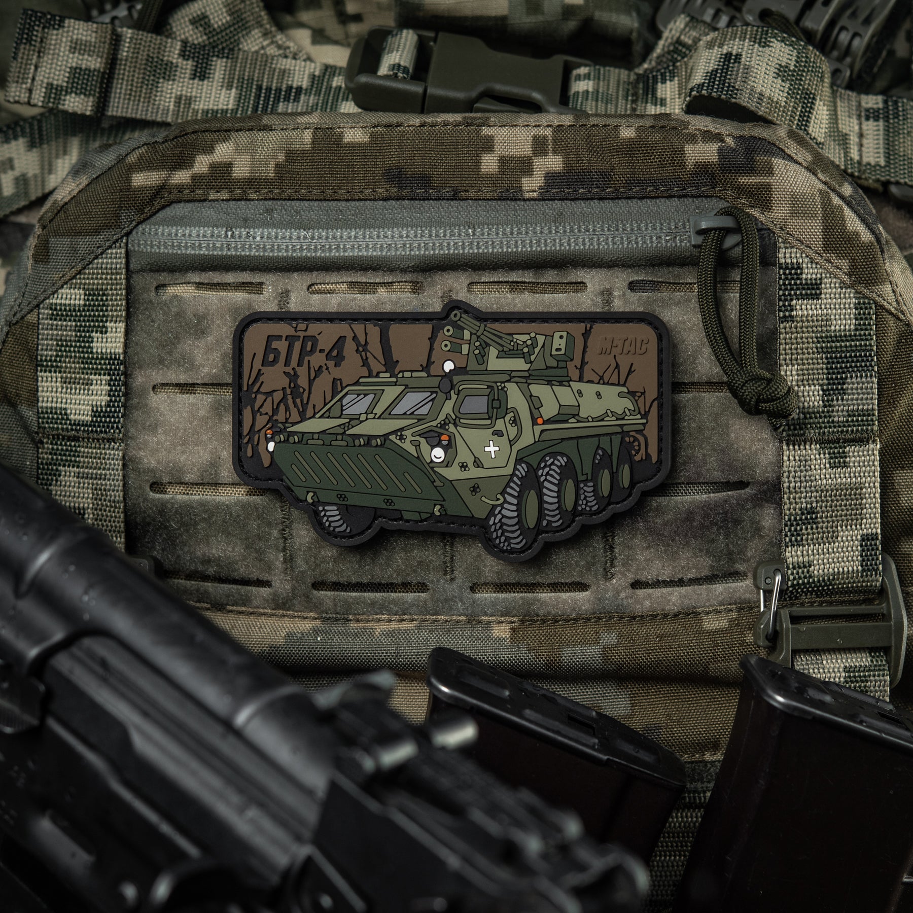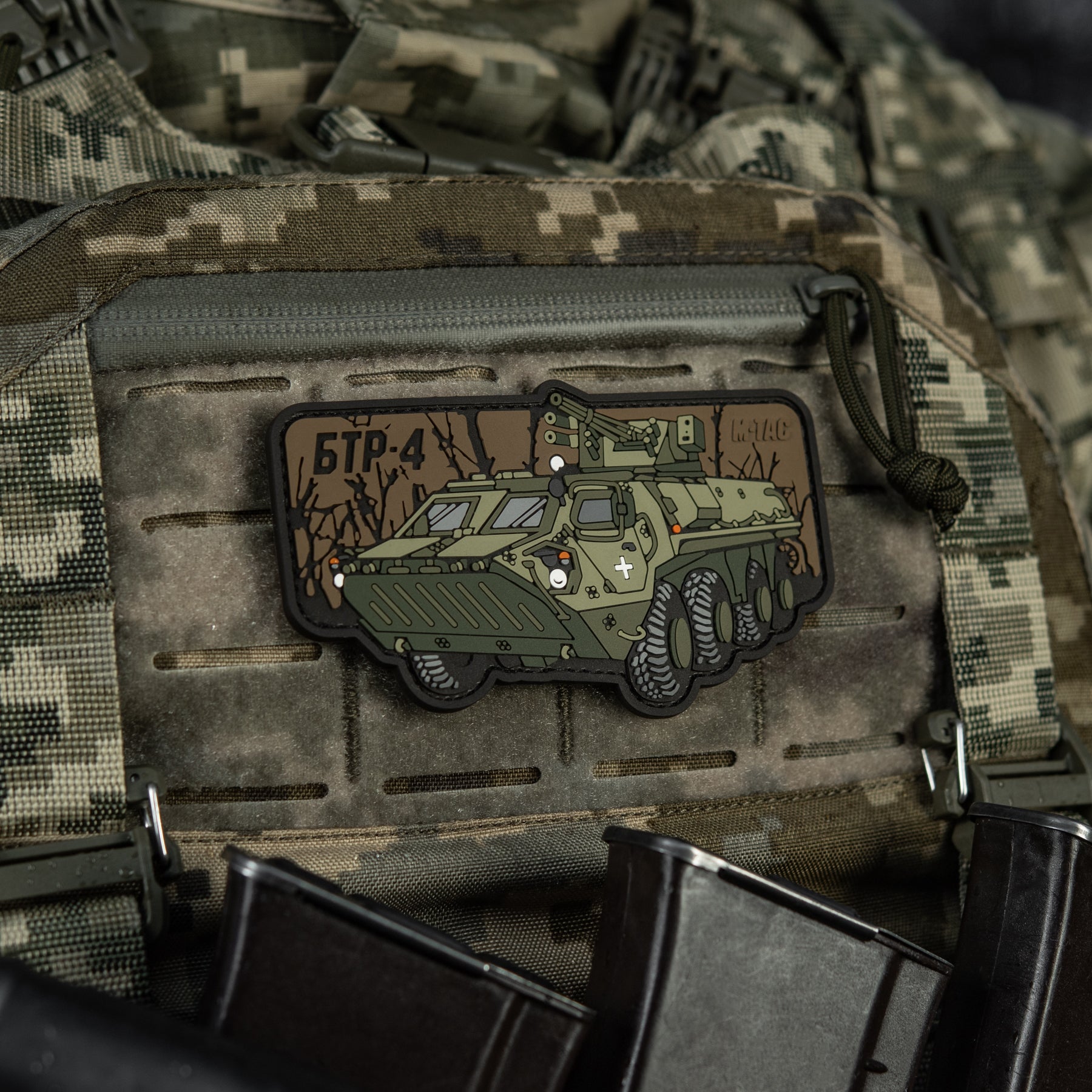 Continuing the series of patches dedicated to military equipment, M-Tac has released a new thematic patch featuring the legendary Ukrainian armored personnel carrier BTR-4 “Bucephalus.” This APC has repeatedly proven itself in fierce battles across the hottest frontline sectors.
