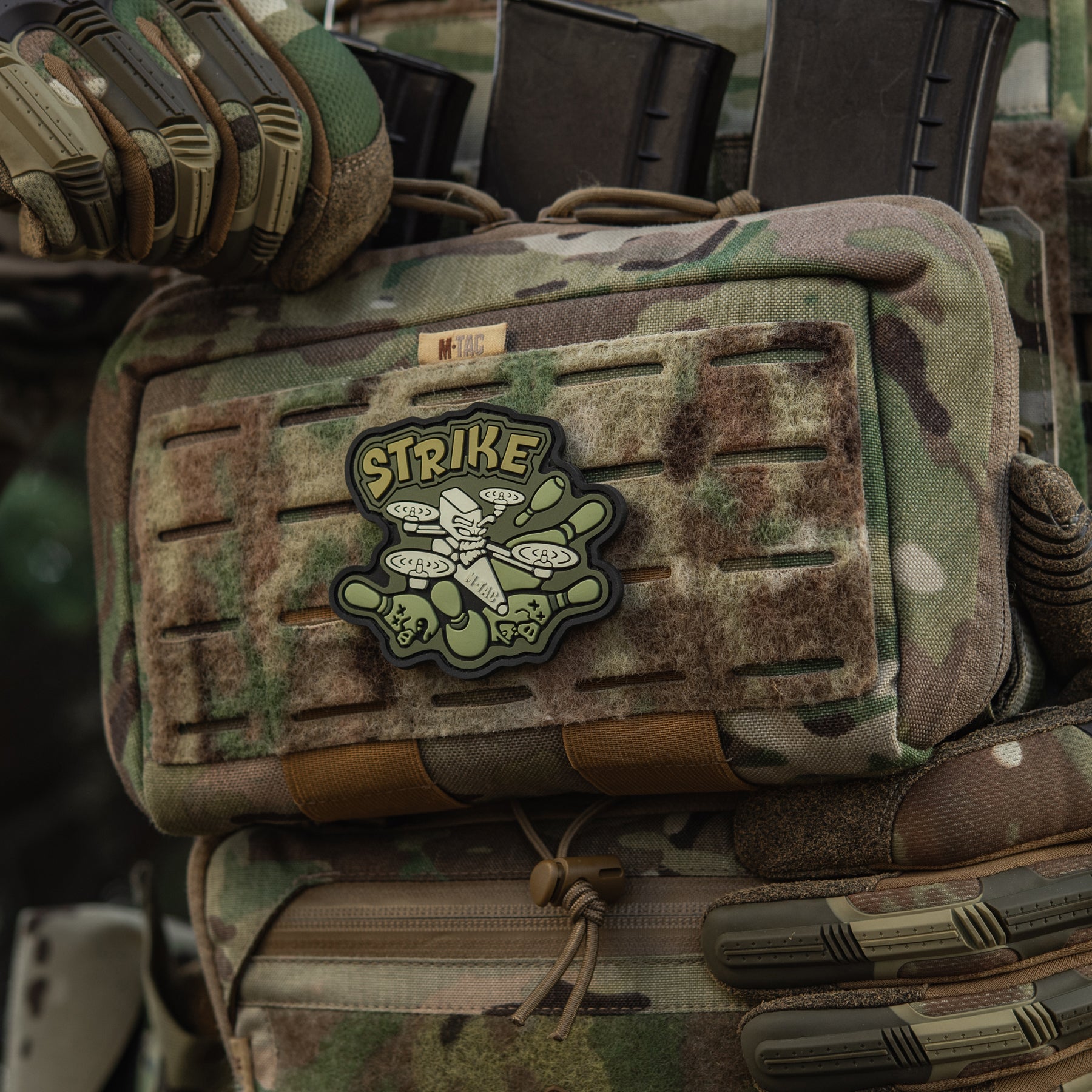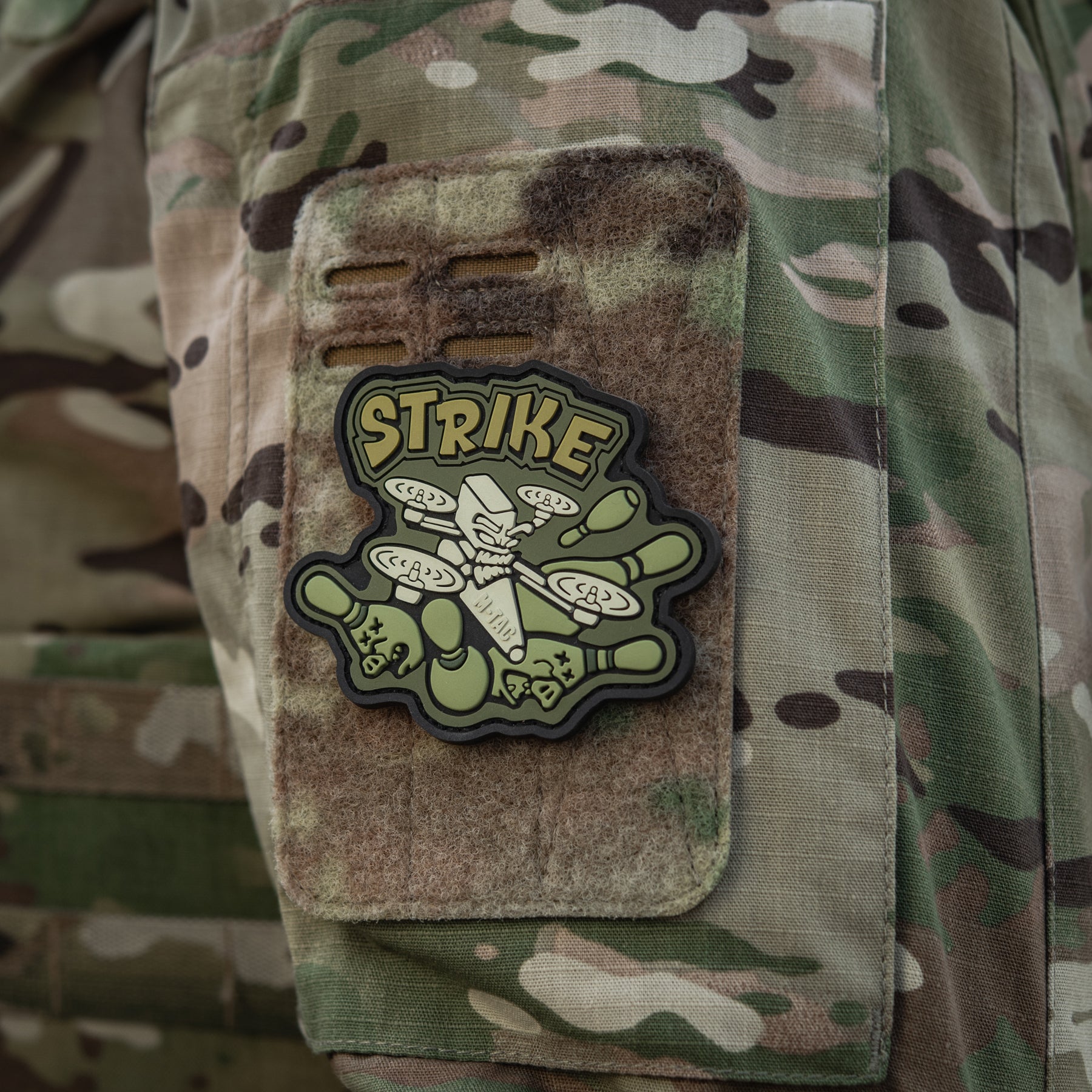 The M-Tac design team has released a new morale patch STRIKE (PVC) dedicated to strike drone operators — true masters of “pig-dog bowling.”