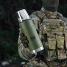 The M-Tac 34 Oz (1000ml) stainless thermos is a durable thermos that combines great performance with a modern stylish design. Double walls made of high-quality stainless steel guarantee excellent thermal insulation, so the contents will remain hot for quite a long time. Its design is highly durable and looks great, so this model will come in handy not only for tourist trips but also for everyday use. The thermos with a fairly wide neck. Suitable for hot and cold drinks.