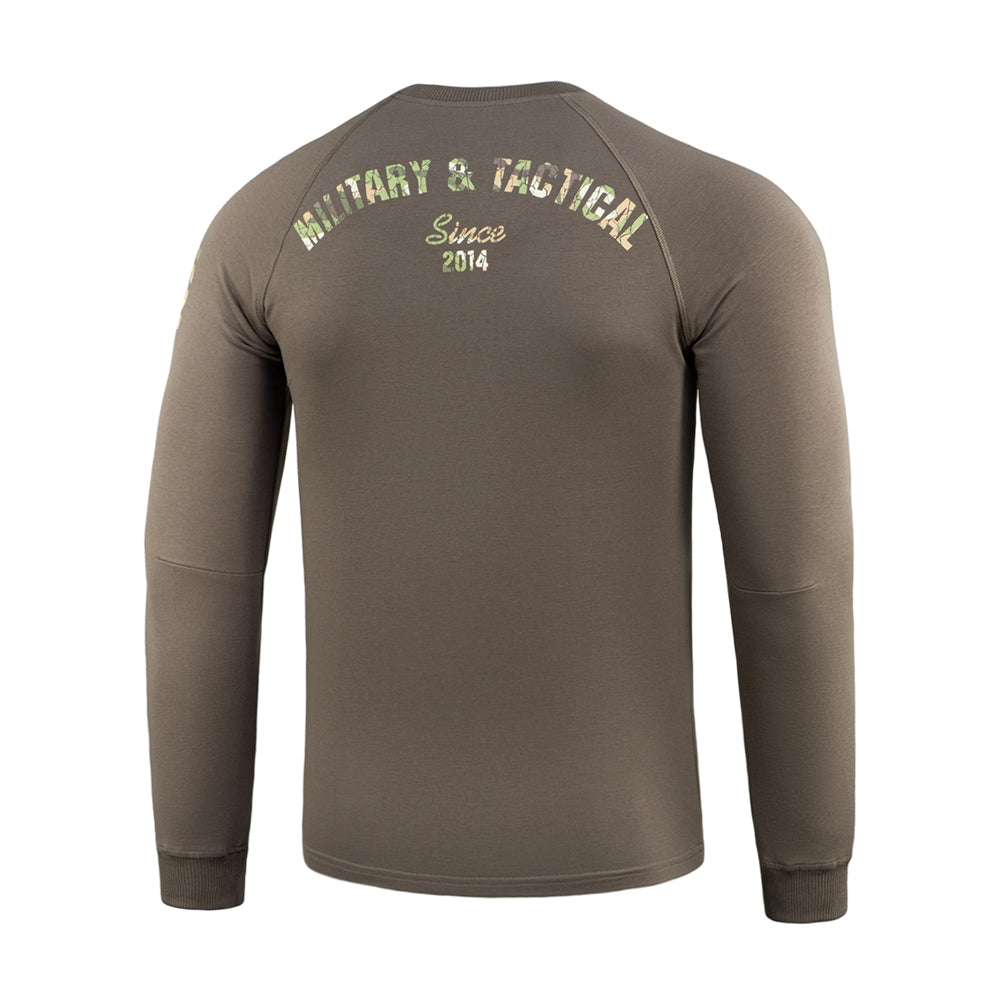 A key highlight of the model is the stylish camouflage M-Tac logo with a distressed effect. Next to it, along the raglan sleeve, is the brand’s main slogan: