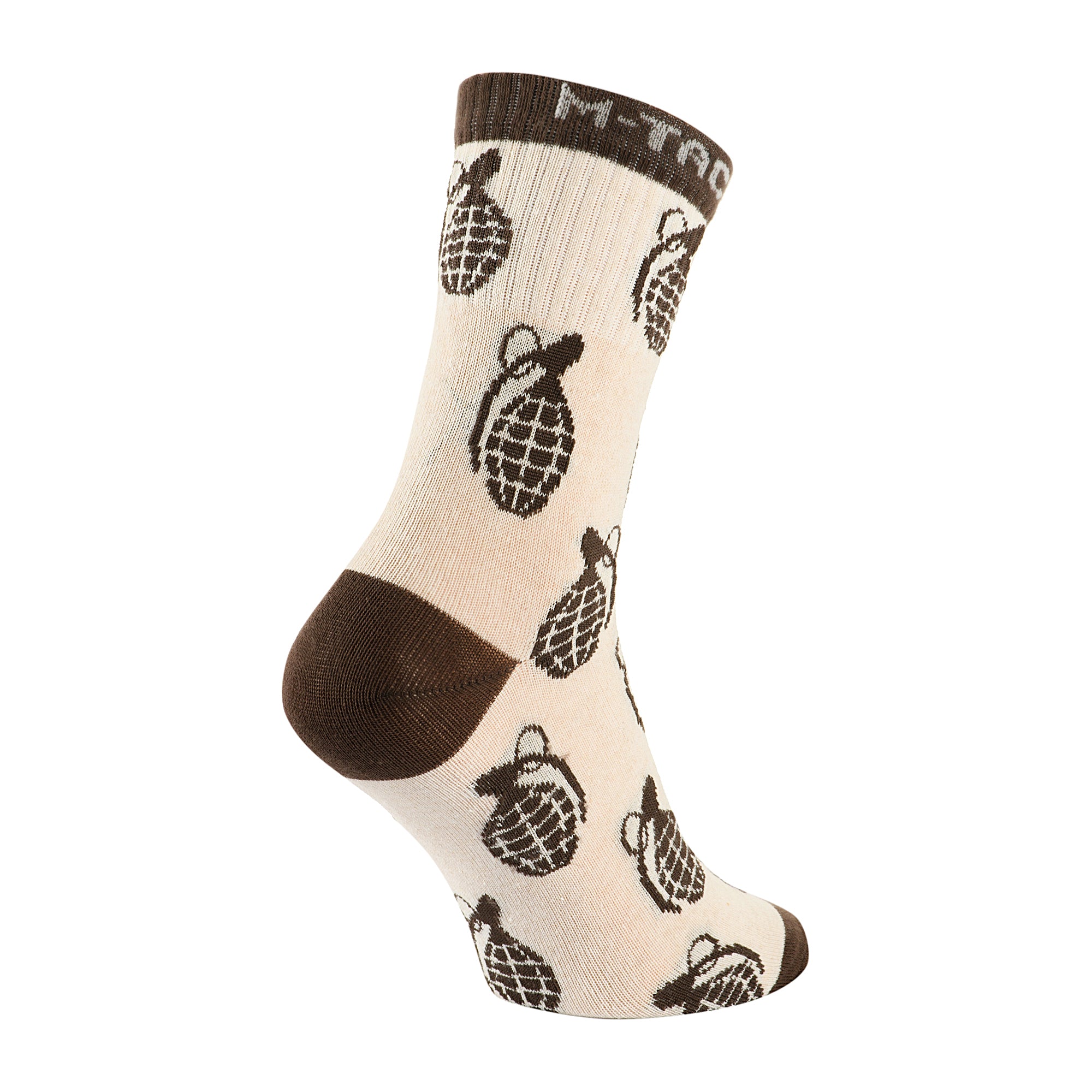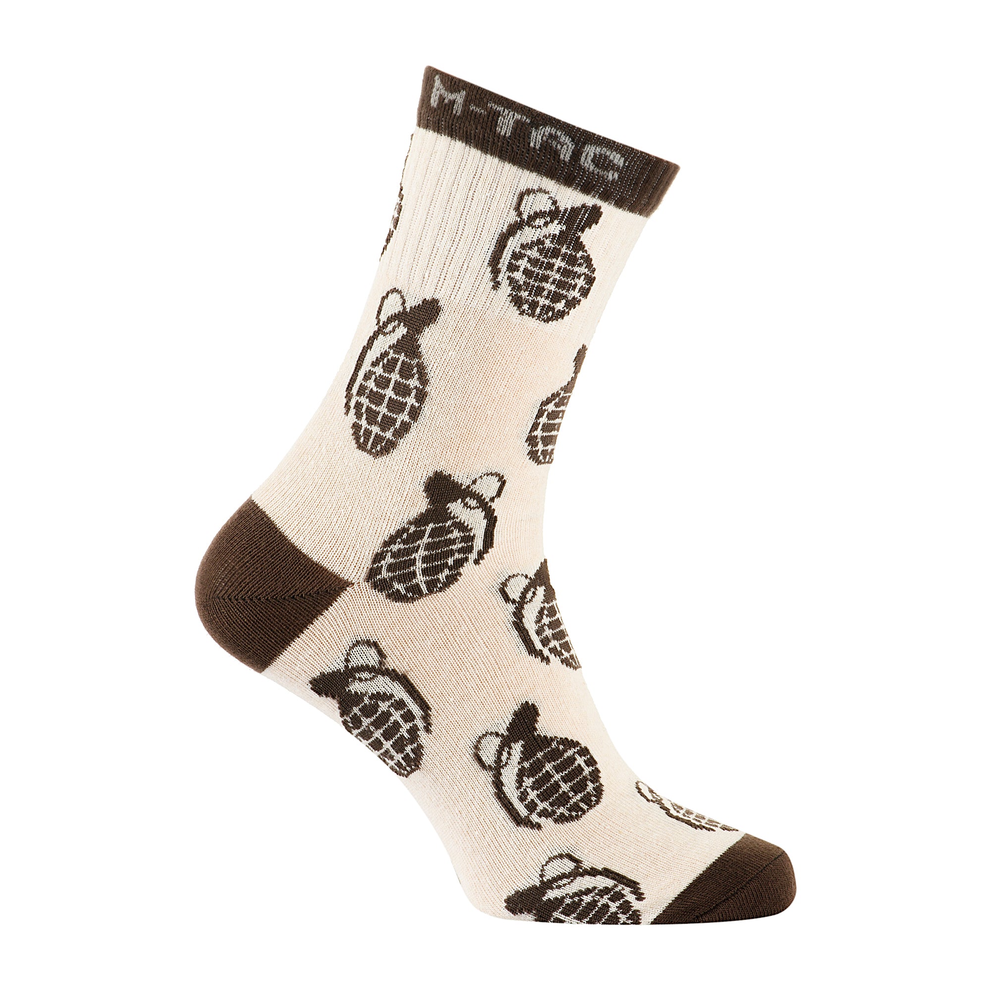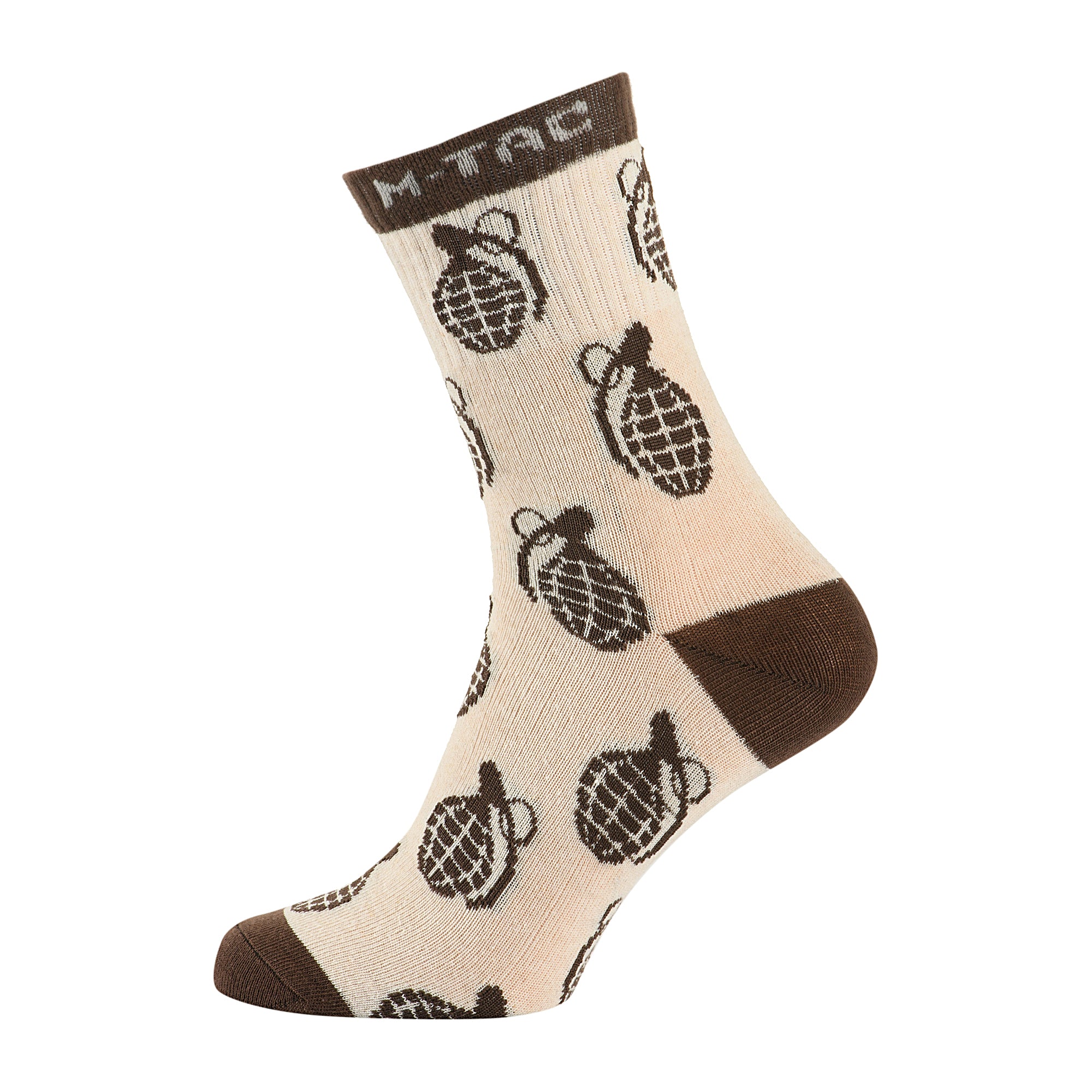 A dense elastic cuff securely fixes the socks on the leg, preventing twisting or slipping. The cuff features the M-Tac logo, while the grenade-themed pattern adds a distinctive and stylish look.