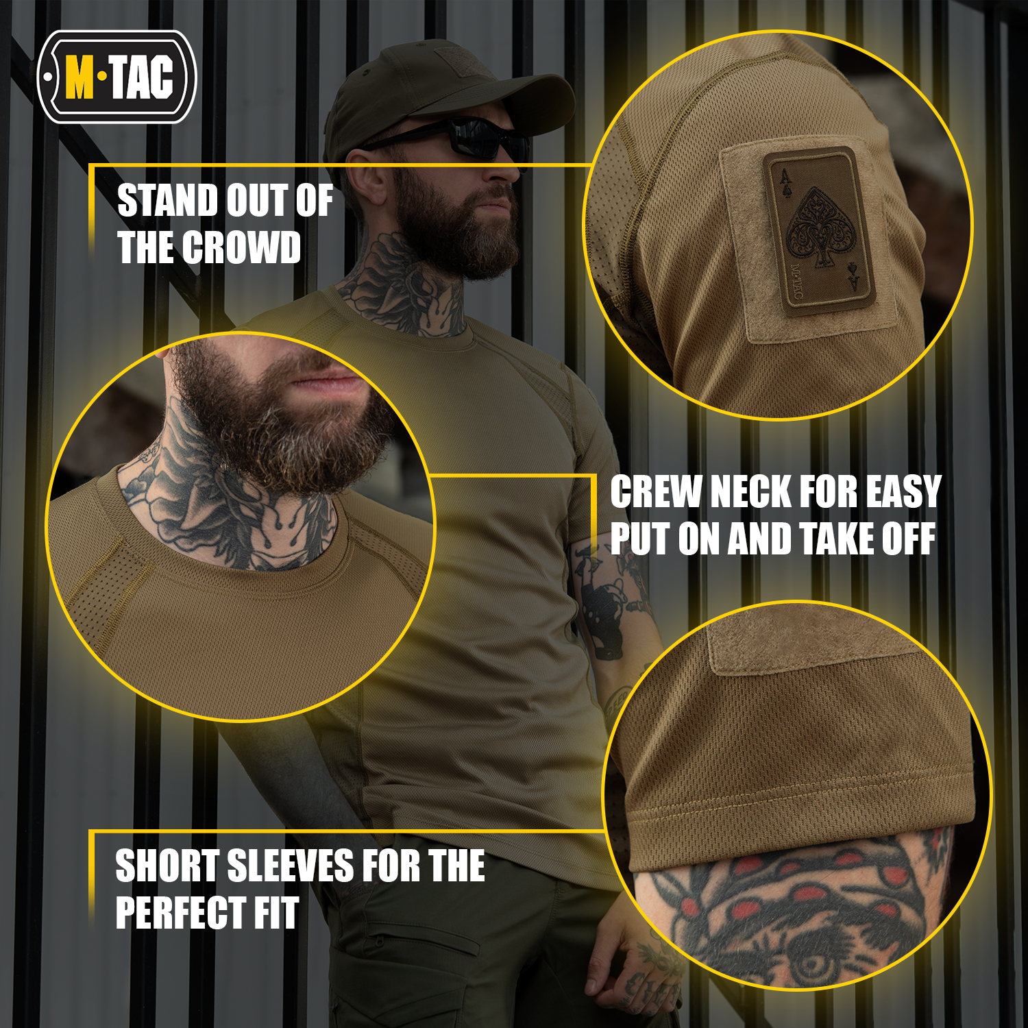 The sweat-wicking Athletic Tactical Gen.2 t-shirt is a great option for training, running, active recreation and everyday use. It is made of high-tech material that has sweat-wicking properties and provides optimal body thermoregulation. Special compression inserts are designed for better ventilation and moisture removal. The neck is made of elastic, which does not lose its shape even after repeated washing. The anatomical cut perfectly follows the contours of the torso and does not constrain movement. Flat seams do not rub and do not cause discomfort during active use. There are loop panels on the sleeves for attaching patches and IDs. The Athletic Tactical Gen.2 t-shirt works perfectly with both tactical and sports clothing.