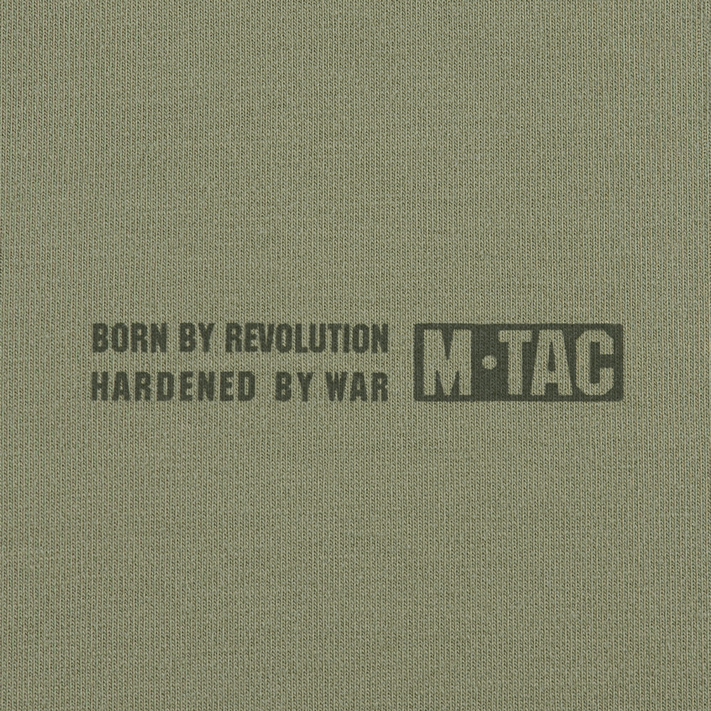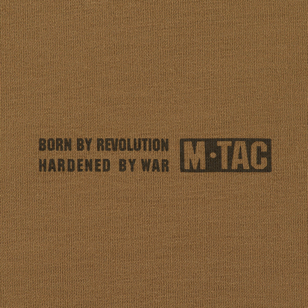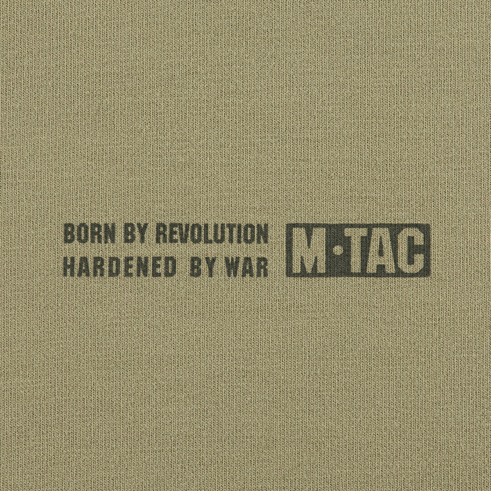 On the chest, the hoodie features the M-Tac logo along with the brand’s slogan: Born by Revolution – Hardened by War.