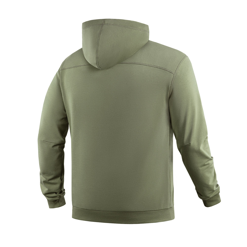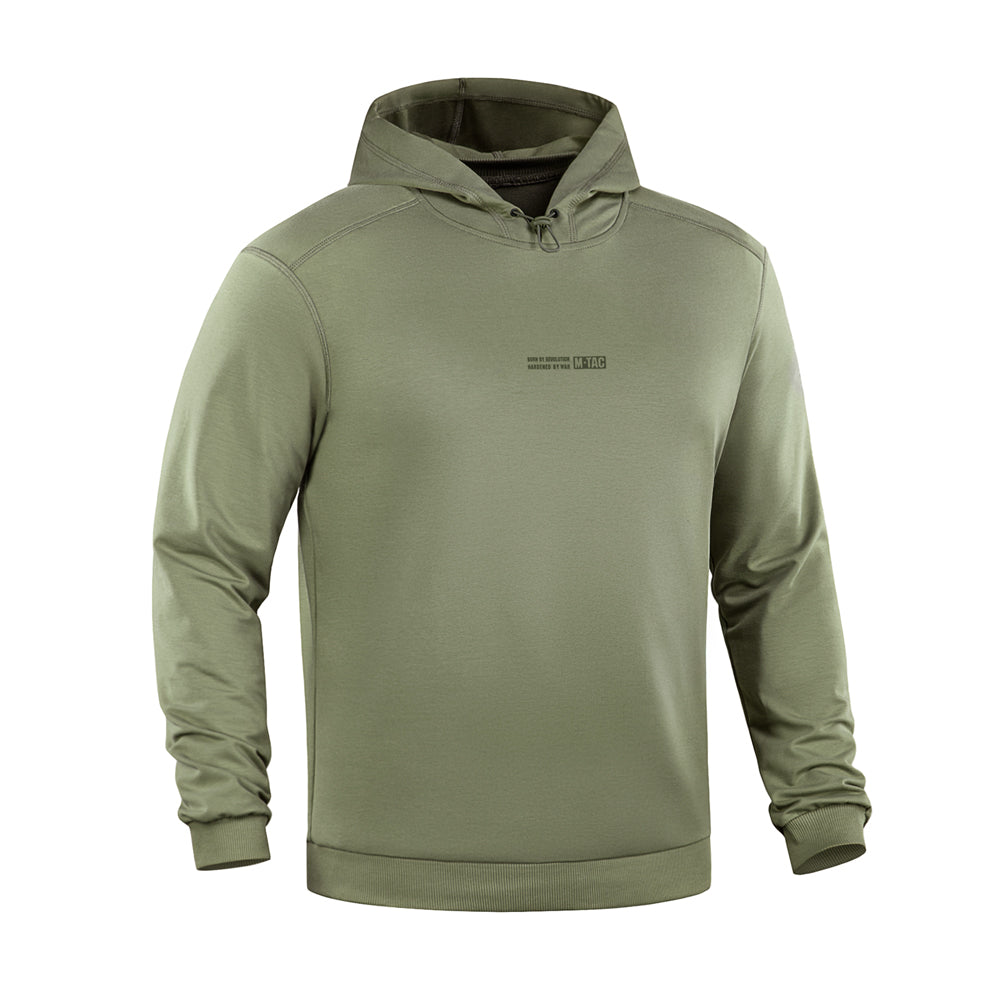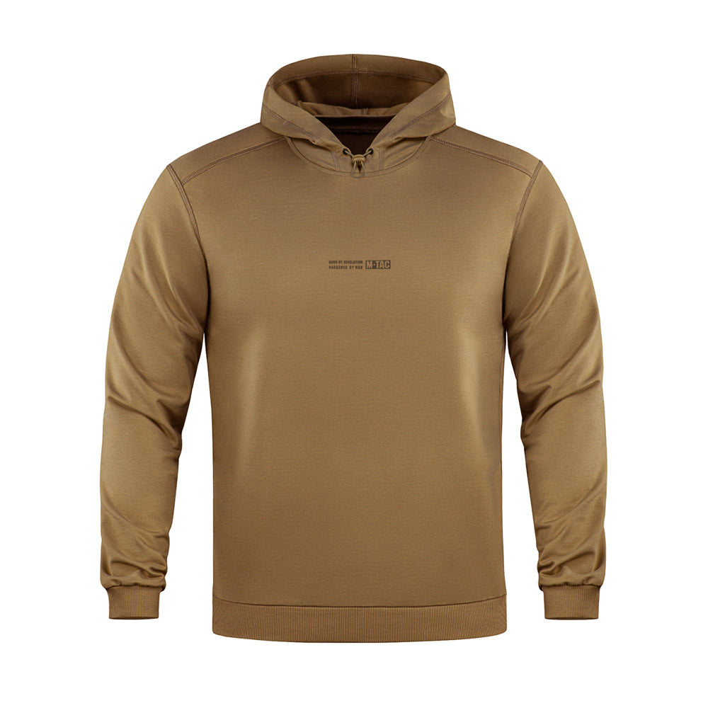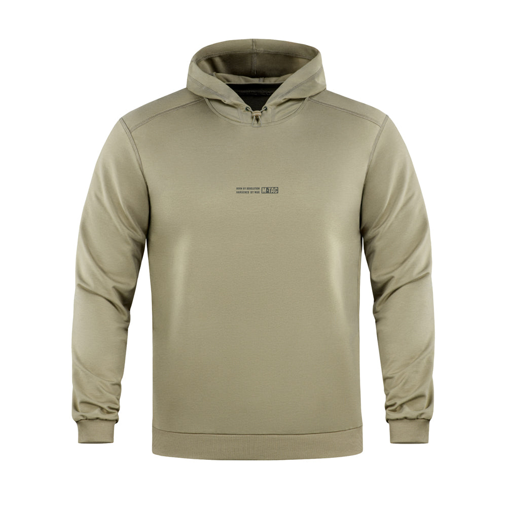 On the chest, the hoodie features the M-Tac logo along with the brand’s slogan: Born by Revolution – Hardened by War.