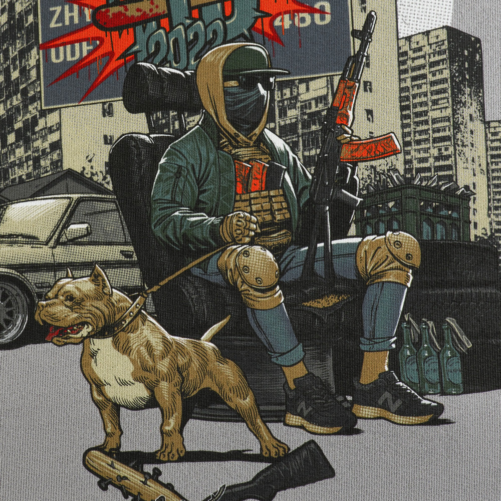 The print reflects familiar cityscapes — apartment blocks and streets that suddenly turned into frontlines. It symbolizes the thousands of volunteers who put ordinary life on hold, joined the Defense Forces, and continue to resist the occupier for the sake of their most valuable treasure — home.