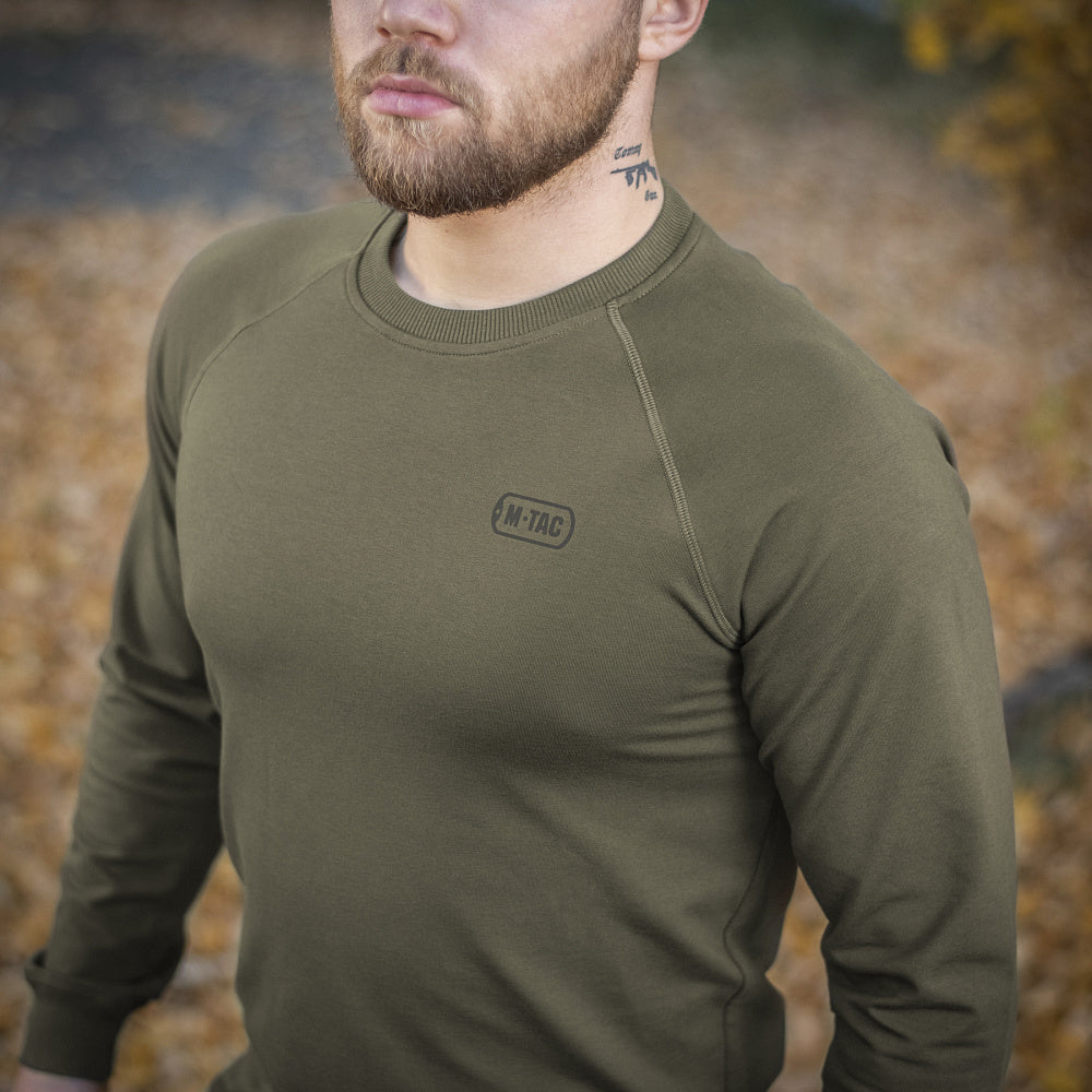 The M-Tac Athlete crewneck raglan. A piece of clothing, designed with practicality in mind. The straight cut doesn't restrict movement and is slim enough to be worn with multiple layers. The great thermal regulation and breathability make this sweater a perfect option for any season and weather. A base for any casual or tactical outfit. Will also be a great addition to a military uniform.