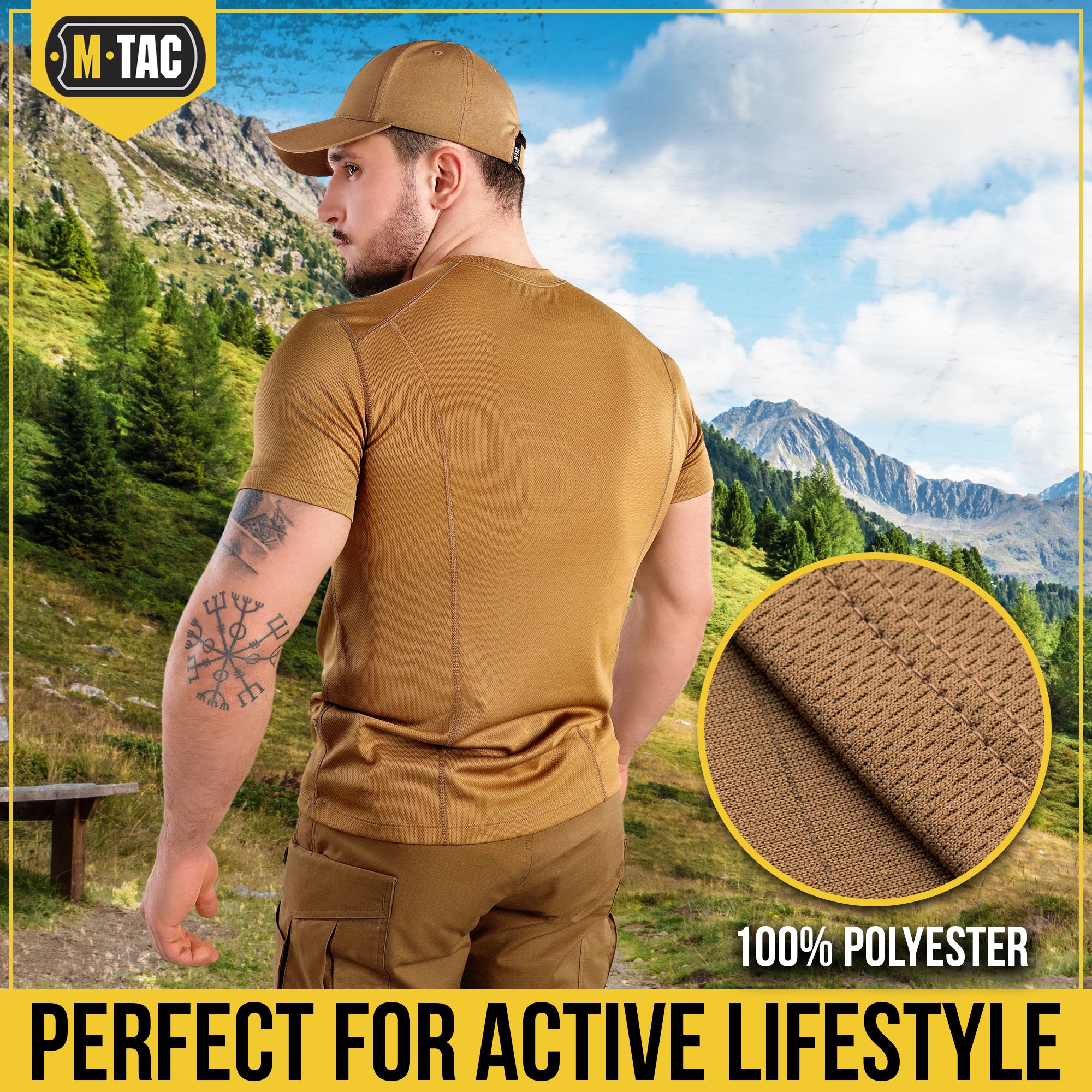 The M-Tac T-shirt Athletic is a short-sleeved thermal T-shirt for active sports. The T-shirt is made according to 3D technology with a binding to the anatomy of the body, which guarantees a special, comfortable freedom of movement. The elastic fabric (100% polyester) fits the body like a glove, while maintaining full freedom of action. Protects the body from muscle spasms, cramps, tension and fatigue. The entire area of the t-shirt is equipped with a built-in antistatic thread that promotes the distribution and flow of static charge from the surface of the fabric. The air permeability, hygroscopicity, hypoallergenicity of the fabric, its softness and lightness are ideal for everyday wear and in particular for people who lead an active lifestyle.