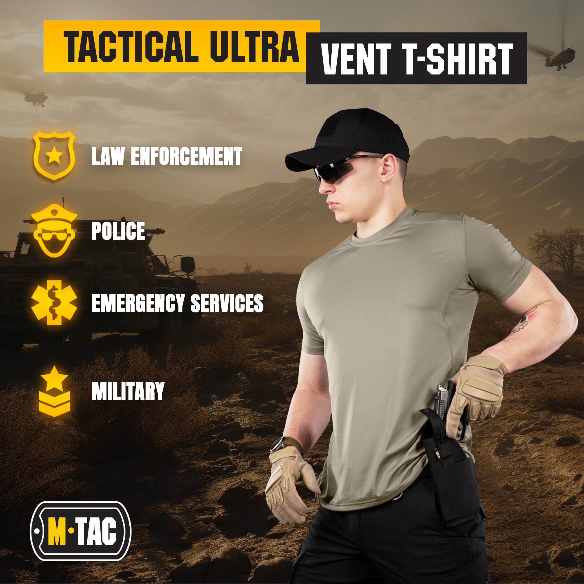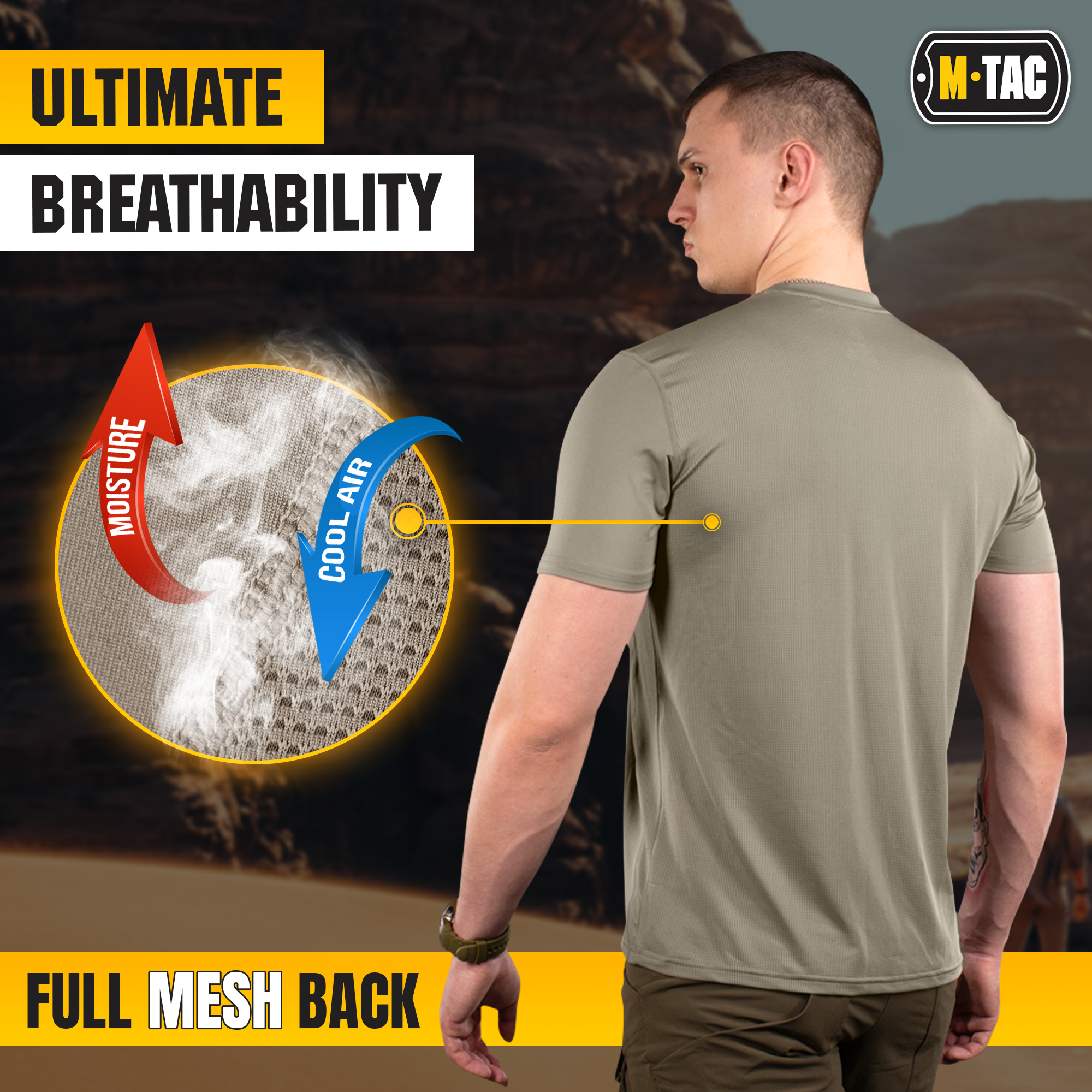 The M-Tac Ultra Vent Short Sleeve Thermal T- shirt is made from lightweight breathable fabric. It is designed to capture a thin layer of warm air (evaporation) and pass it over to the outer layer. It provides maximum comfort and freedom of movement. It is soft and comfortable, with lightweight and high breathability properties. The great addition to a casual outfit, military clothing, and uniform, uniform for police and other law enforcement officials.