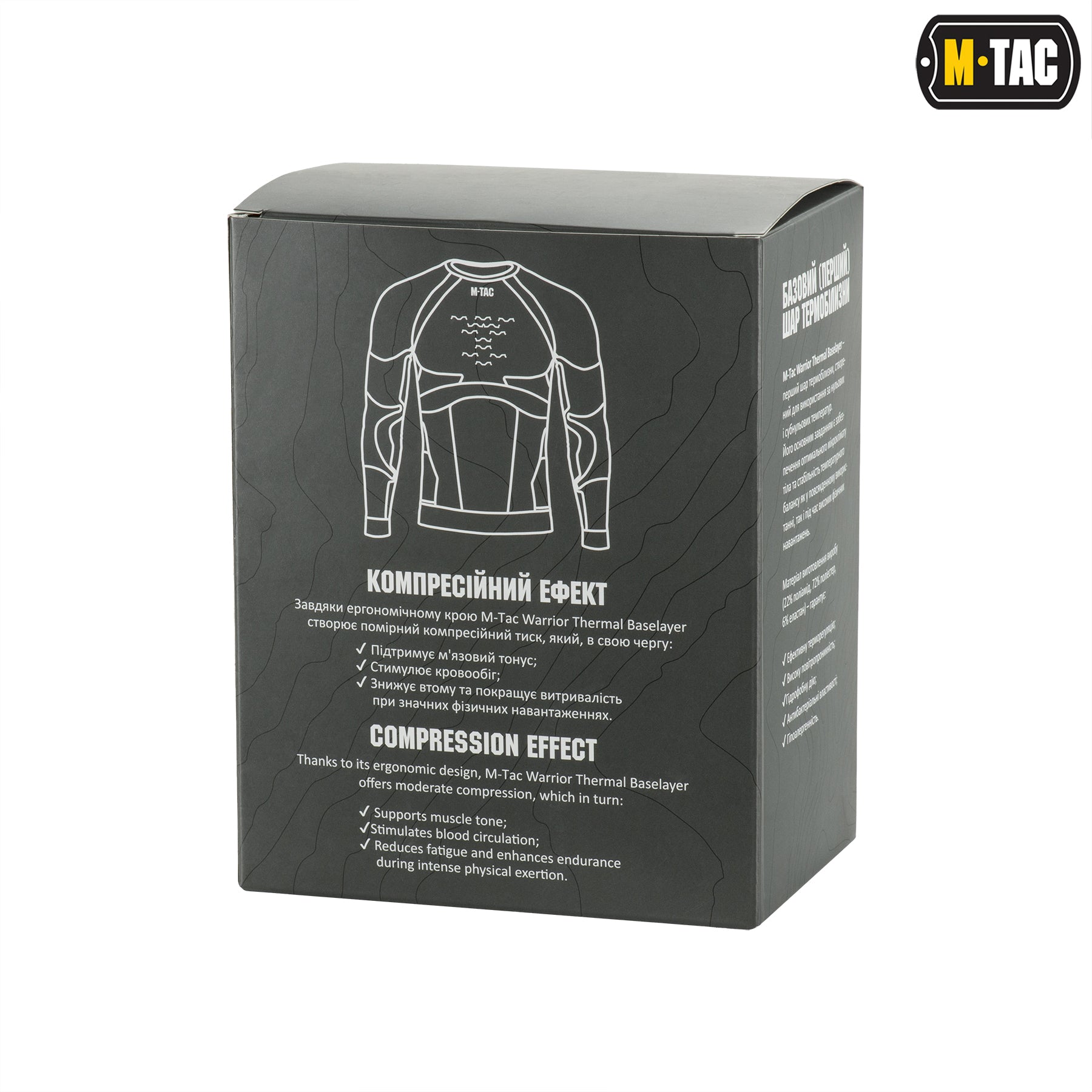 The M-Tac compression thermal shirt is made of high-quality material (72% polyester, 22% polyamide, 6% elastane), which provides: