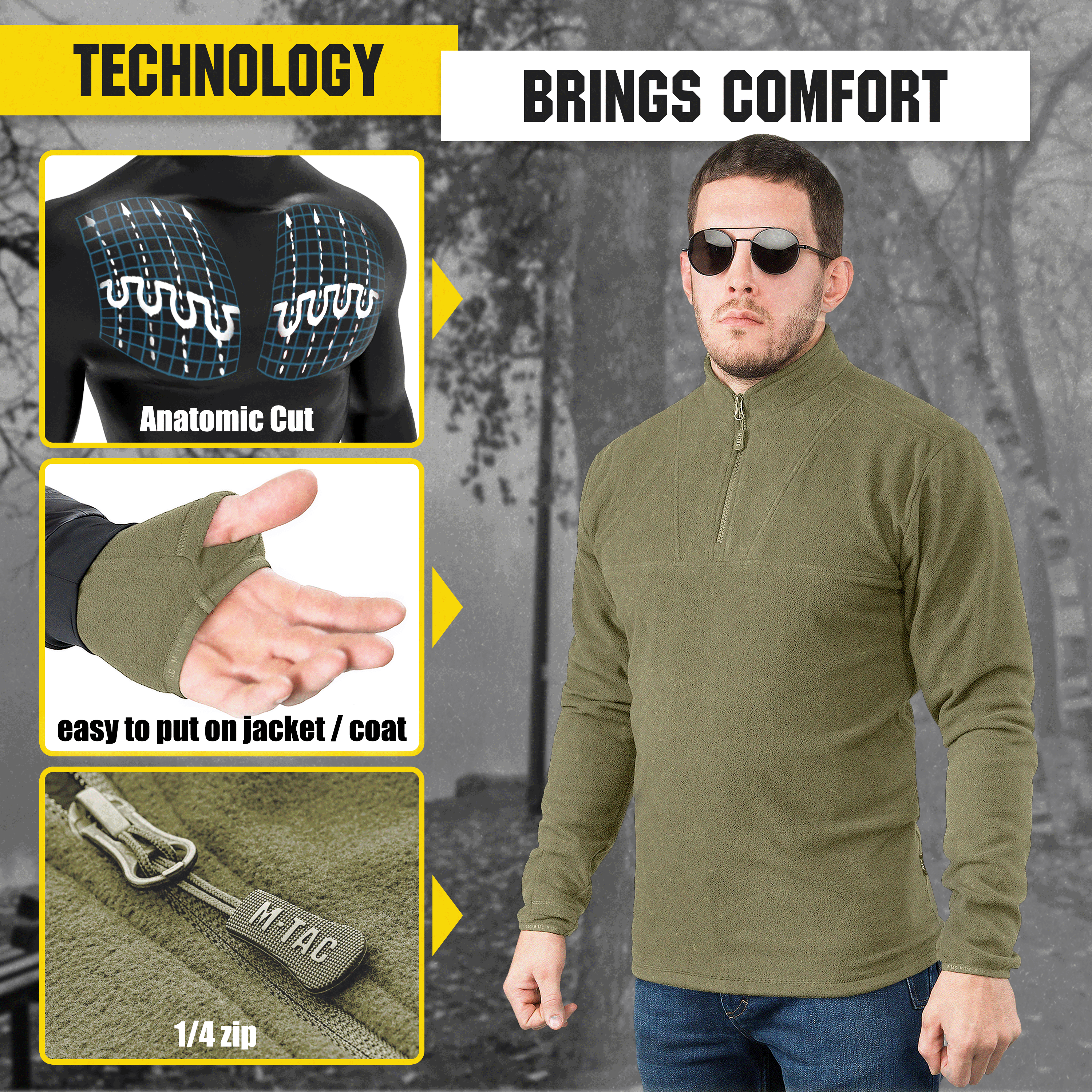The M-Tac Delta Fleece Jacket is a thermal pullover shirt for cool and cold weather. The model has warming and breathable properties and is designed for use in harsh climates. Made of high quality polyester, soft and pleasant to the touch, allowing you to save warmth and gives a pleasant feeling of comfort. The Delta Fleece provide effective insulation and simply combine with other layers.