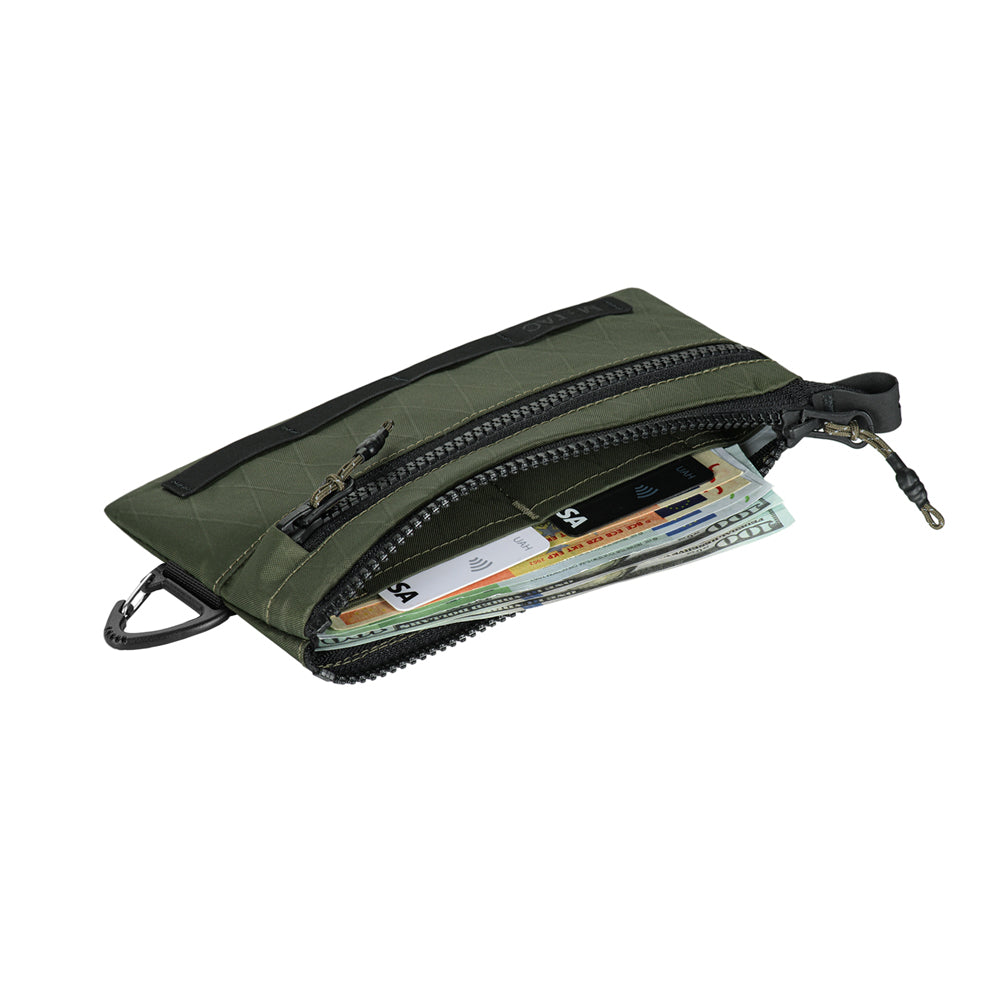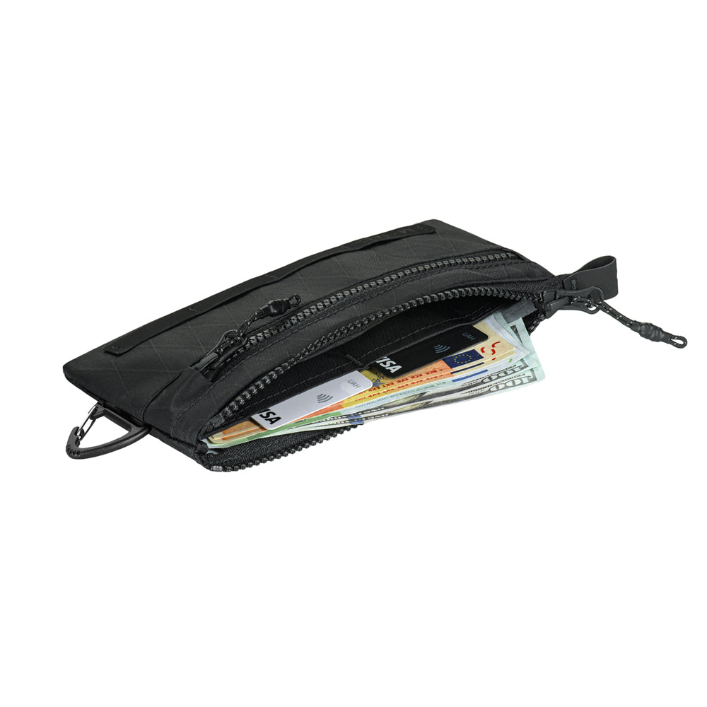 This wallet is made from the innovative X-PAC material. This material has become widely known among tactical gear manufacturers due to its successful combination of durability, light weight, and resistance to UV and water.