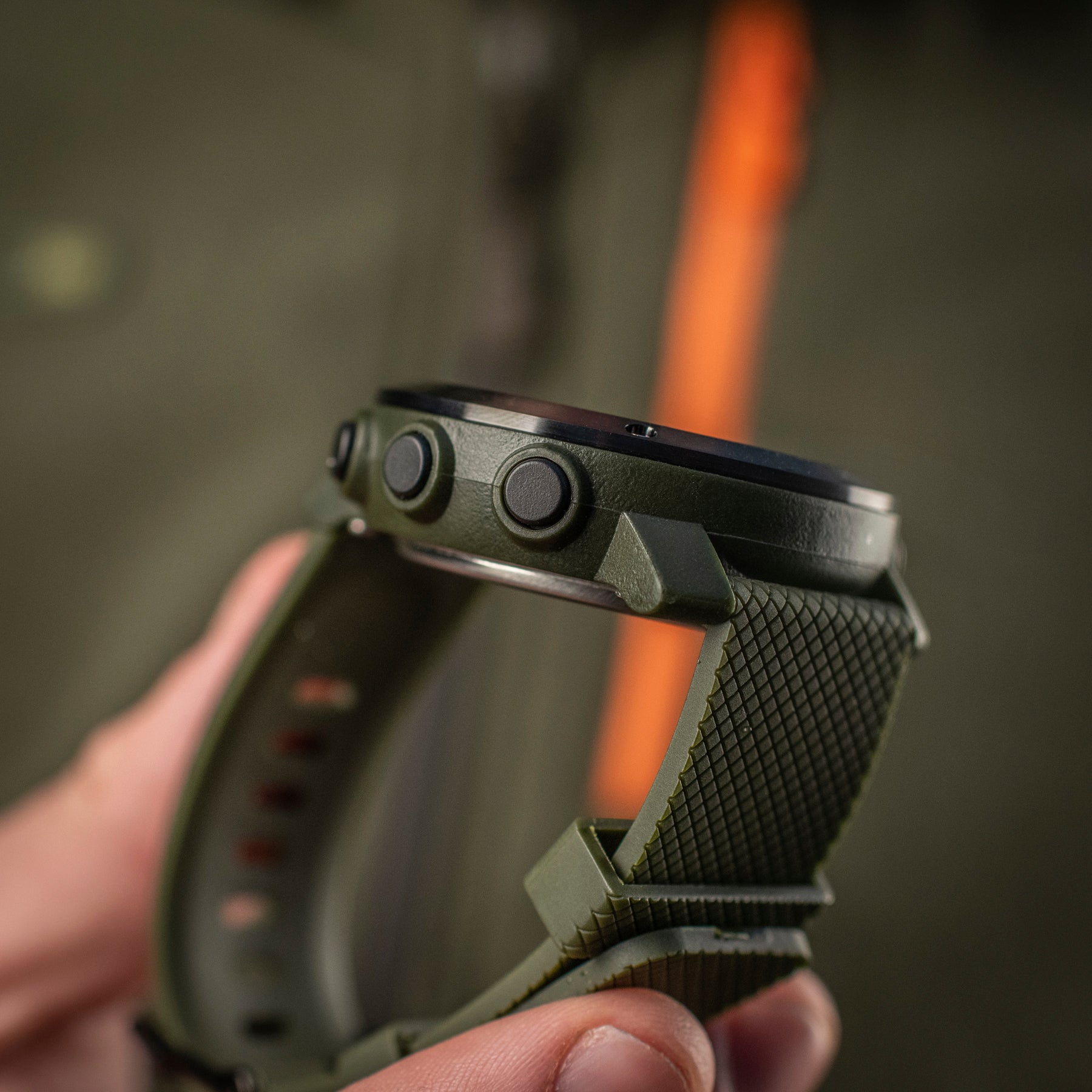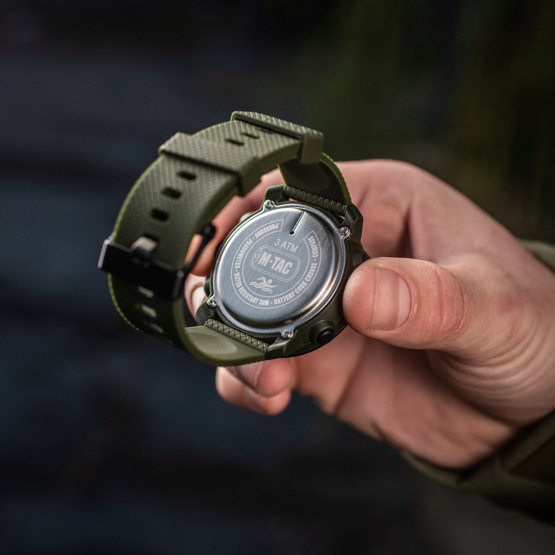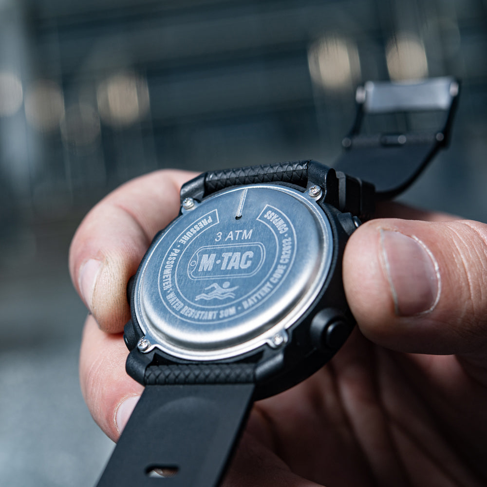 The watch with extensive functionality M-Tac. This model is an essential assistant to people who lead an active life, love to hike in the mountains, and are ideal for the military. The unique features possessed by the watch M-Tac will be useful not only for people involved in extreme sports such as skydiving but will be irreplaceable in everyday life. It can show you the atmospheric pressure and air temperature. By tracking the watch, you can predict in advance the deterioration of health and distribute your workload well at present. M-Tac multifunction tactical watch is equipped with a rugged, durable case made of polycarbonate + rugged stainless steel bezel. Glass is made of organic polycarbonate, which resists scratches and chips without any problem. Water-resistance 3 ATM. The watch features multifunctionality for versatile use, making it an ideal choice for tactical missions and everyday using.