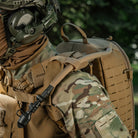 This second-generation model was designed based on feedback from military professionals. Two locking straps by Murdock Webbing prevent the zipper from opening completely, allowing quick top access and serving as compression straps to reduce volume. These straps fasten with Woojin® Fastex buckles on the front and attach to the MOLLE Laser Cut panels on the sides using carabiners, providing adjustable opening levels.