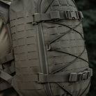 Inside, the main compartment includes a hydration bladder pocket with a top port for the hydration tube, while the flap features two mesh organizer pockets ideal for EDC essentials. On the front, an elastic cord lacing system lets you secure outerwear or additional gear. A Velcro panel provides space for patches or ID tags, and the MOLLE Laser Cut panels (made from Cordura Squadron) on the front and sides allow for modular gear expansion.
