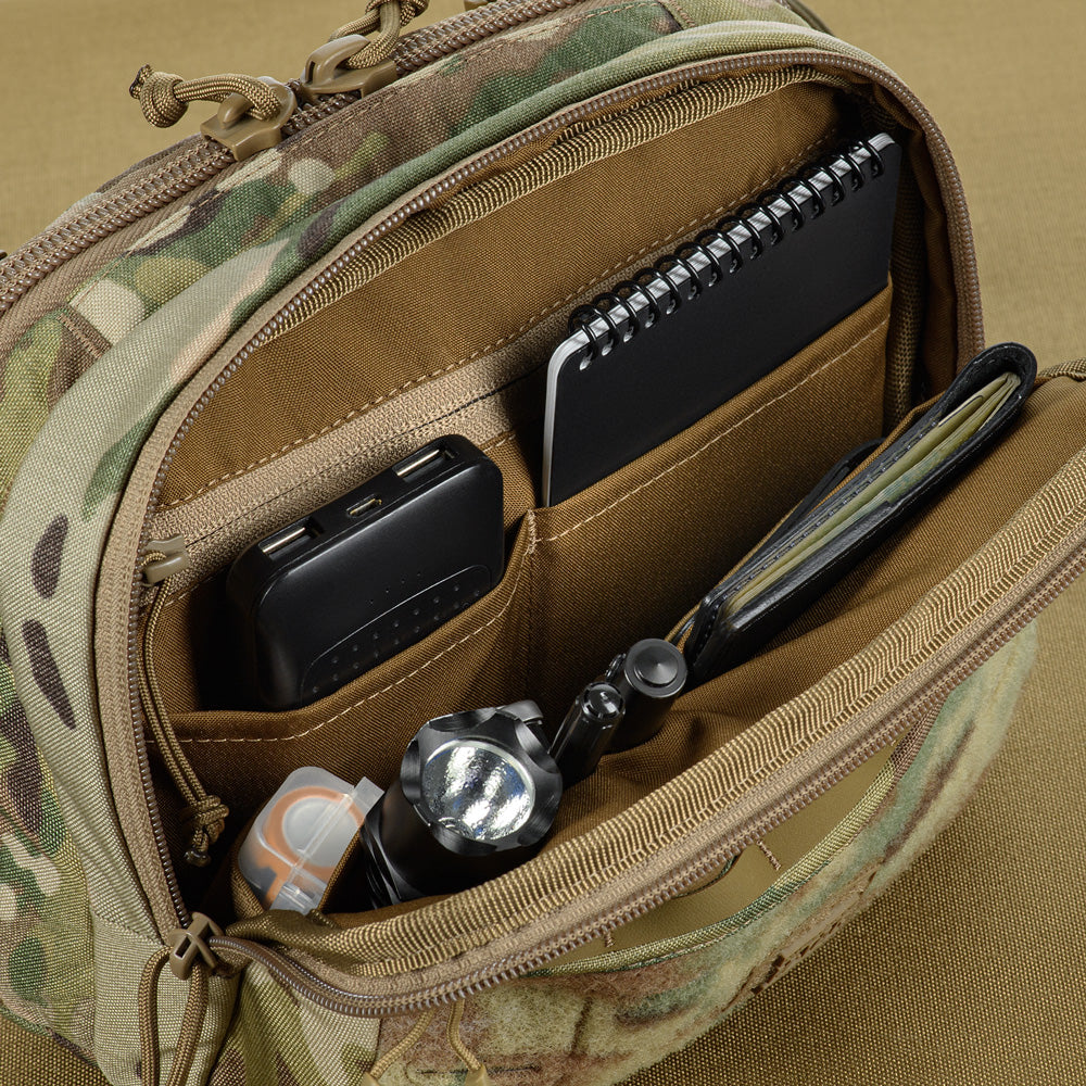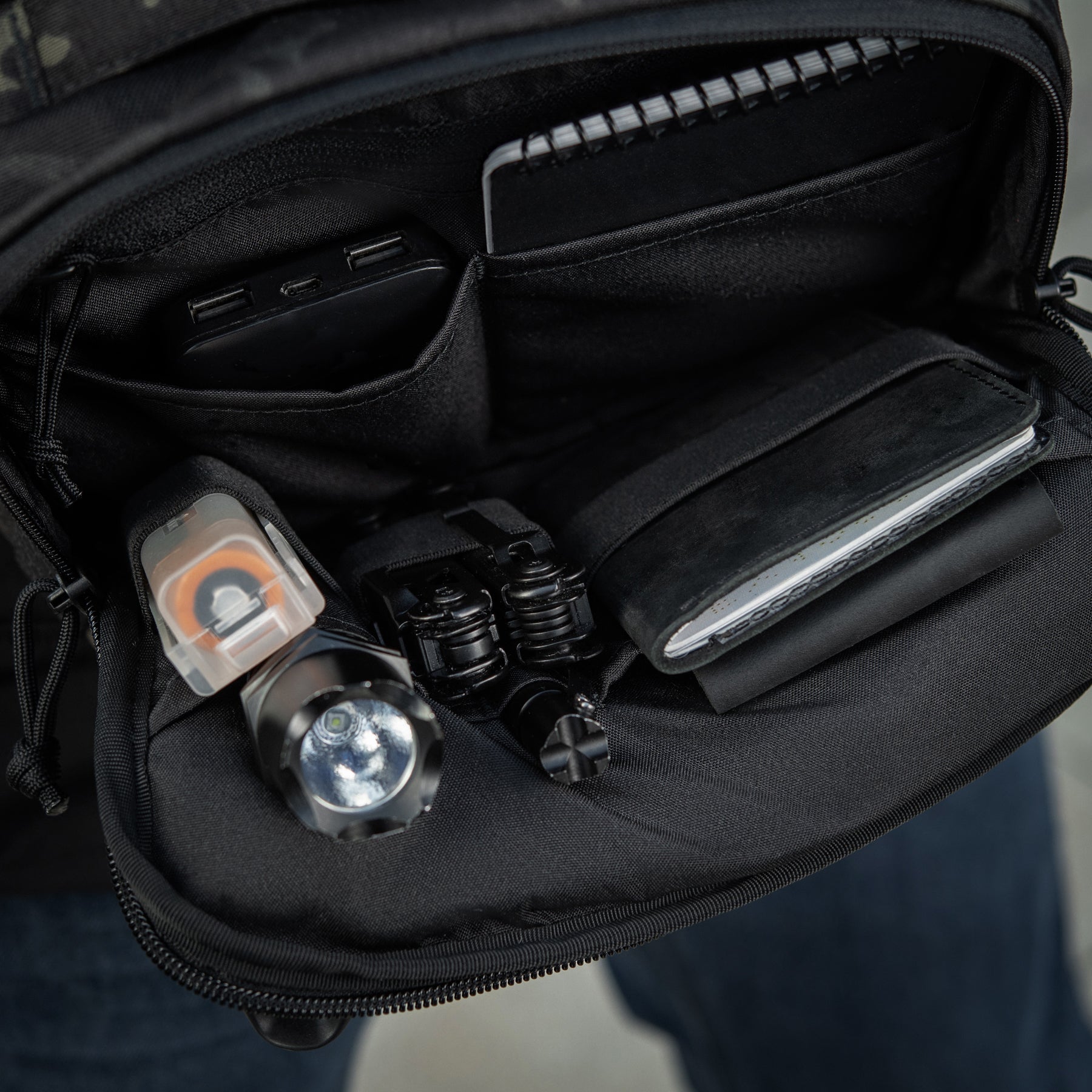 The M-Tac EDC Bag Elite is a practical and versatile everyday-carry solution designed to keep your essential items organized and within quick reach. Its ergonomic design includes separate compartments for everyday accessories and a concealed-carry section for self-defense equipment.