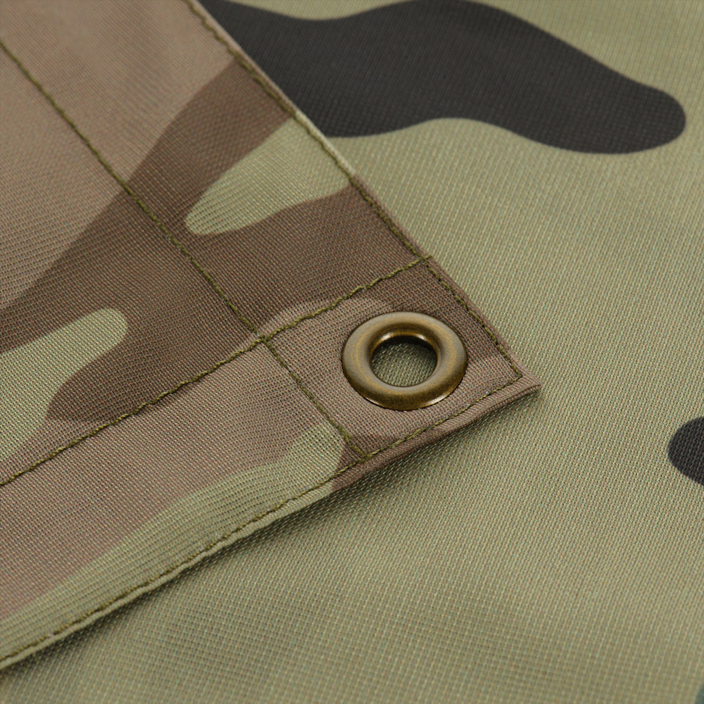It is made from durable, compactible flag mesh (100% Polyester, 130 g/m²), making it easy to carry in a backpack for missions. For secure mounting, it includes four reinforced grommets along the perimeter.